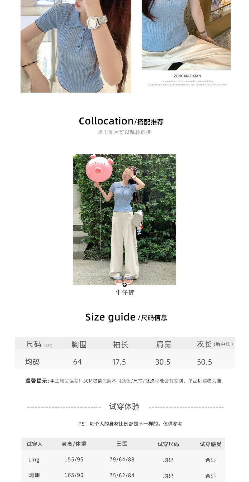 <曾小咸推荐>4.9现货秒杀 !微信超特价!韩系娃娃领短袖针织t恤 日常129.99 立减70 秒杀59.99!!