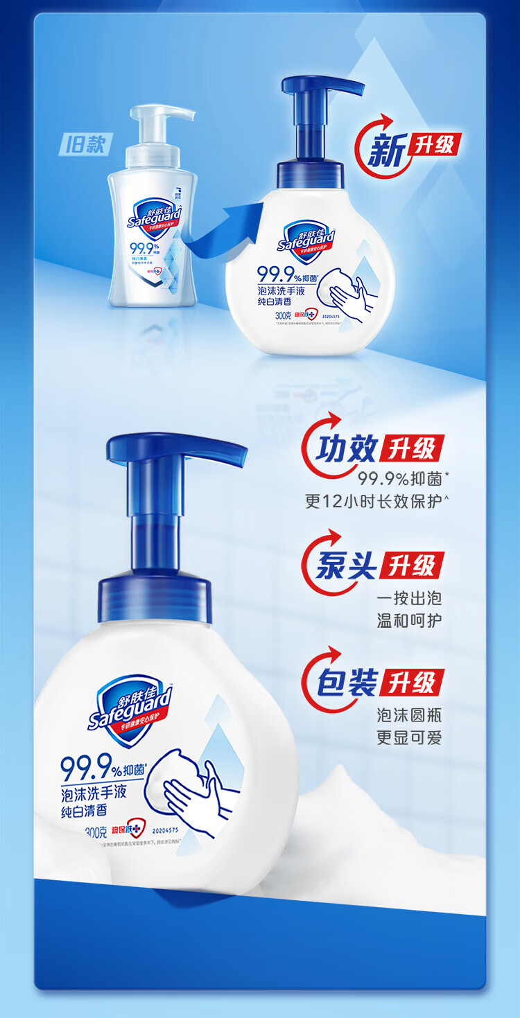 舒肤佳健康泡沫抑菌洗手液纯白清香300克/瓶