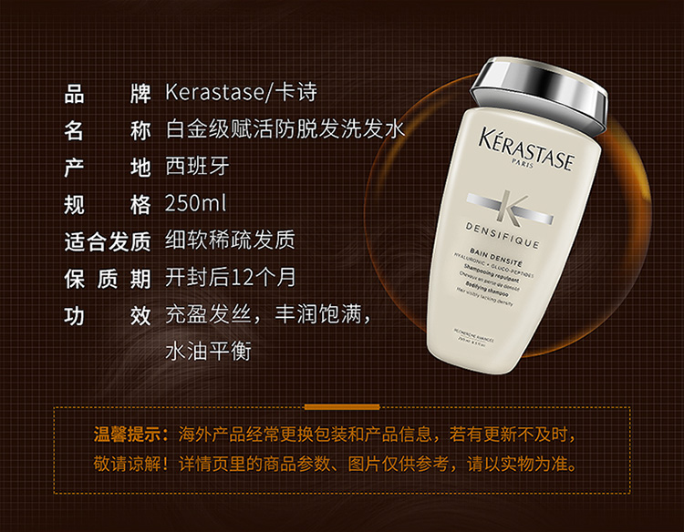 西班牙 Kérastase卡诗 白金级赋活防脱洗发水250ML