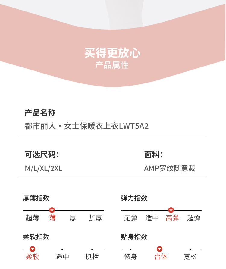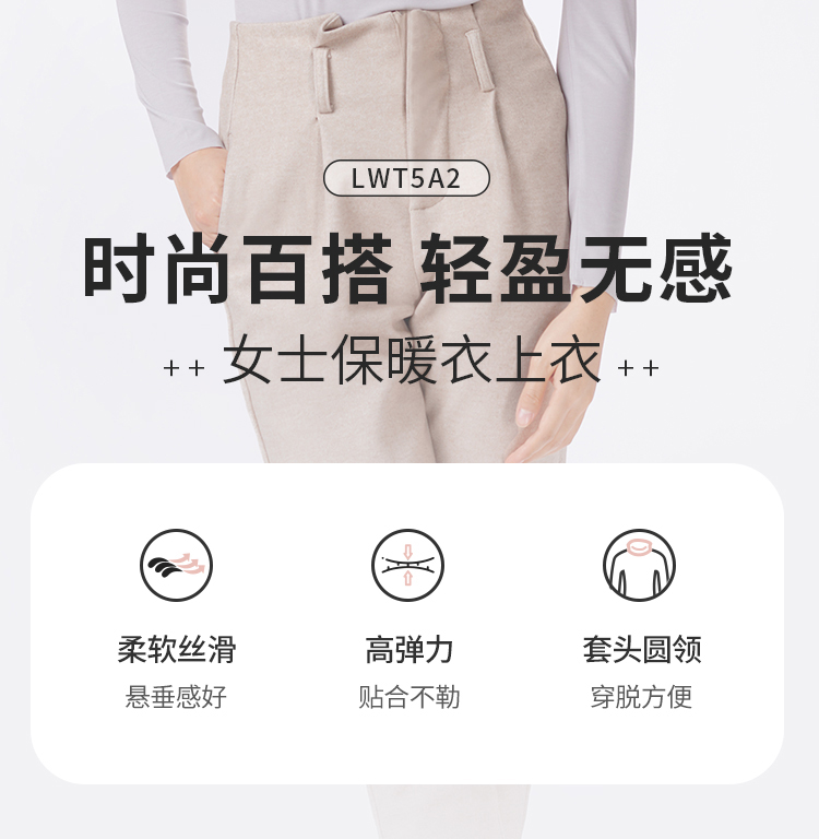 都市丽人保暖衣轻暖单件上衣AMP罗纹随意裁薄女士保暖衣单件上衣LWT5A2
