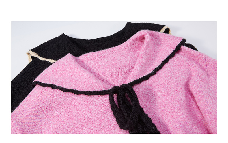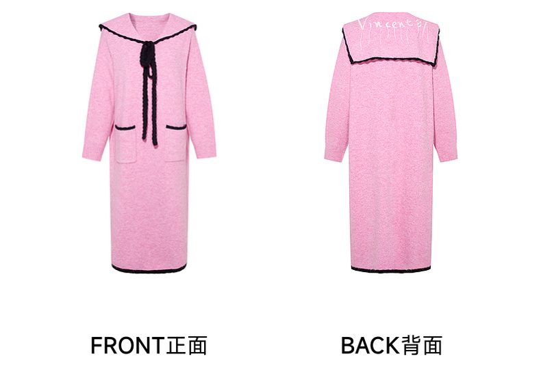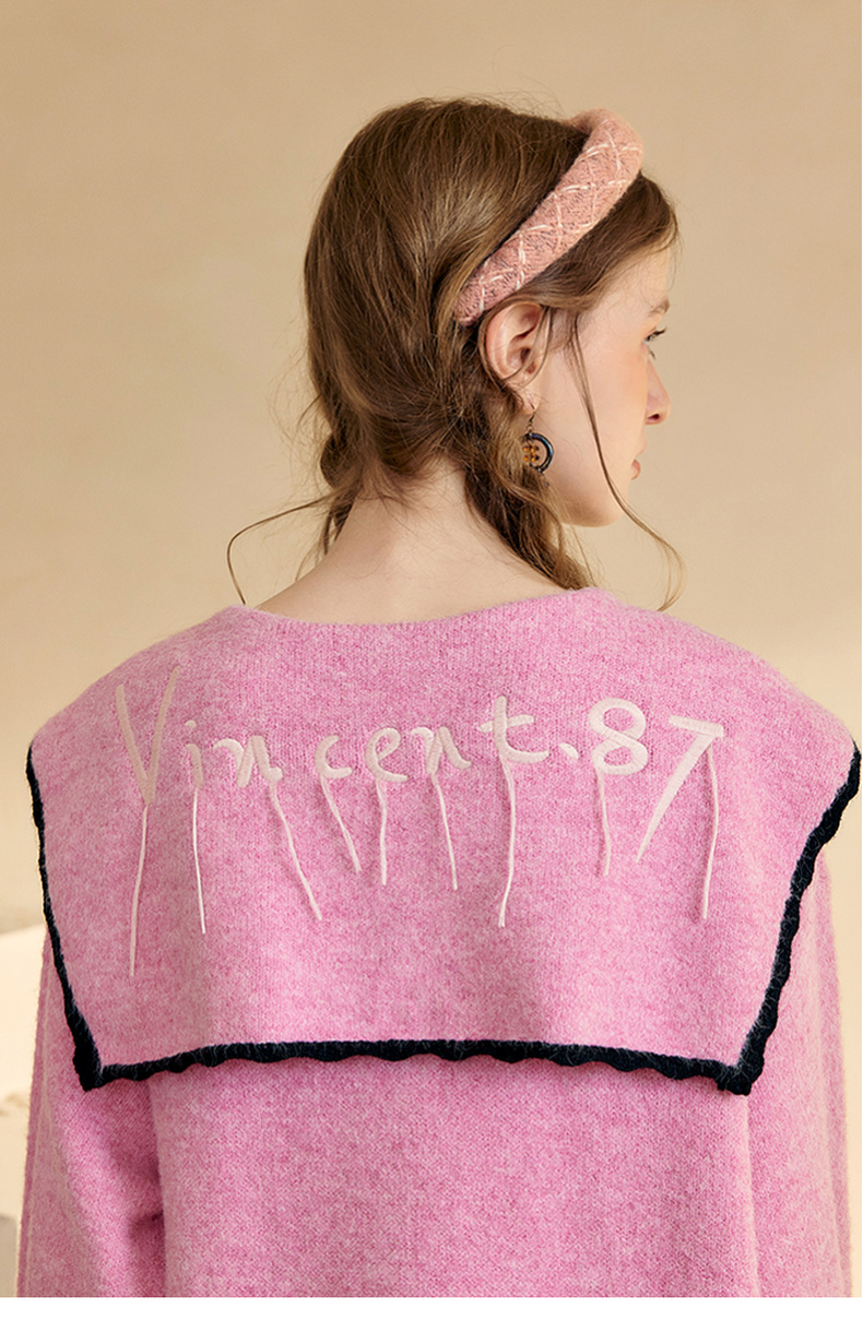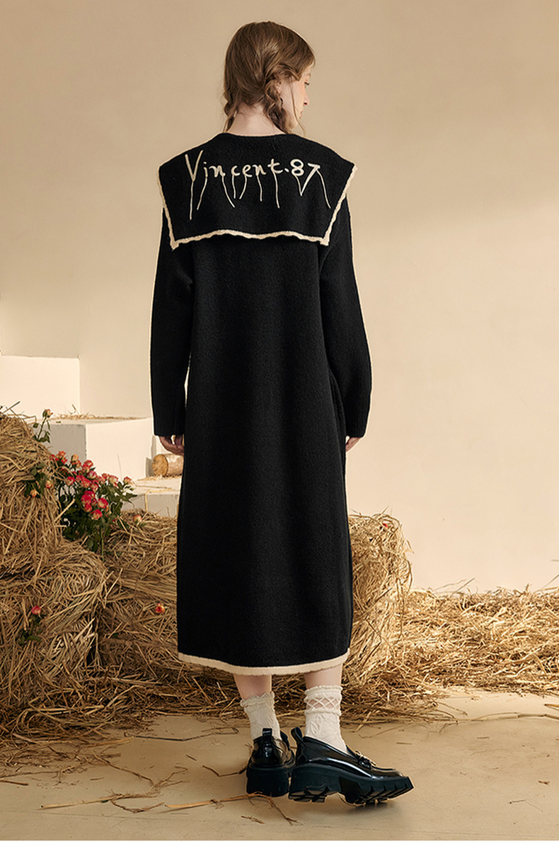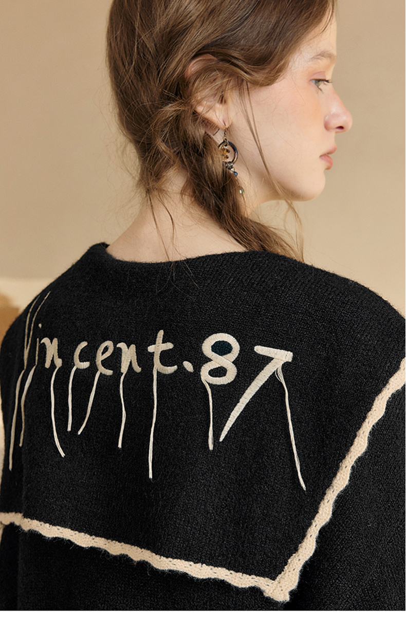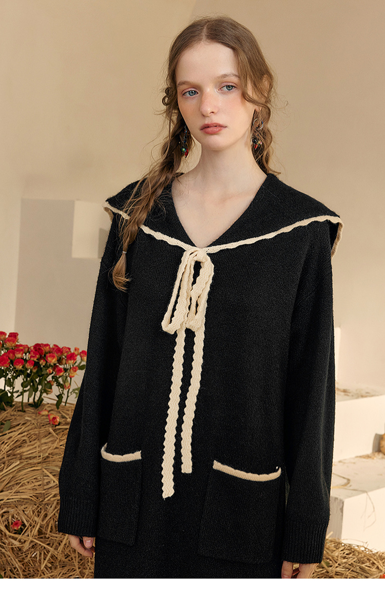 两三事 粉墨登场 2024秋季新款字母刺绣绑带海军领毛衣裙连衣裙