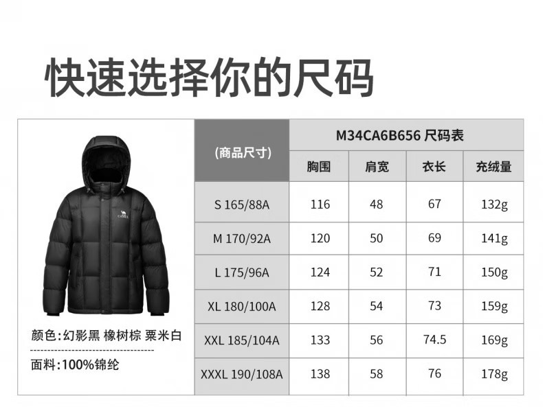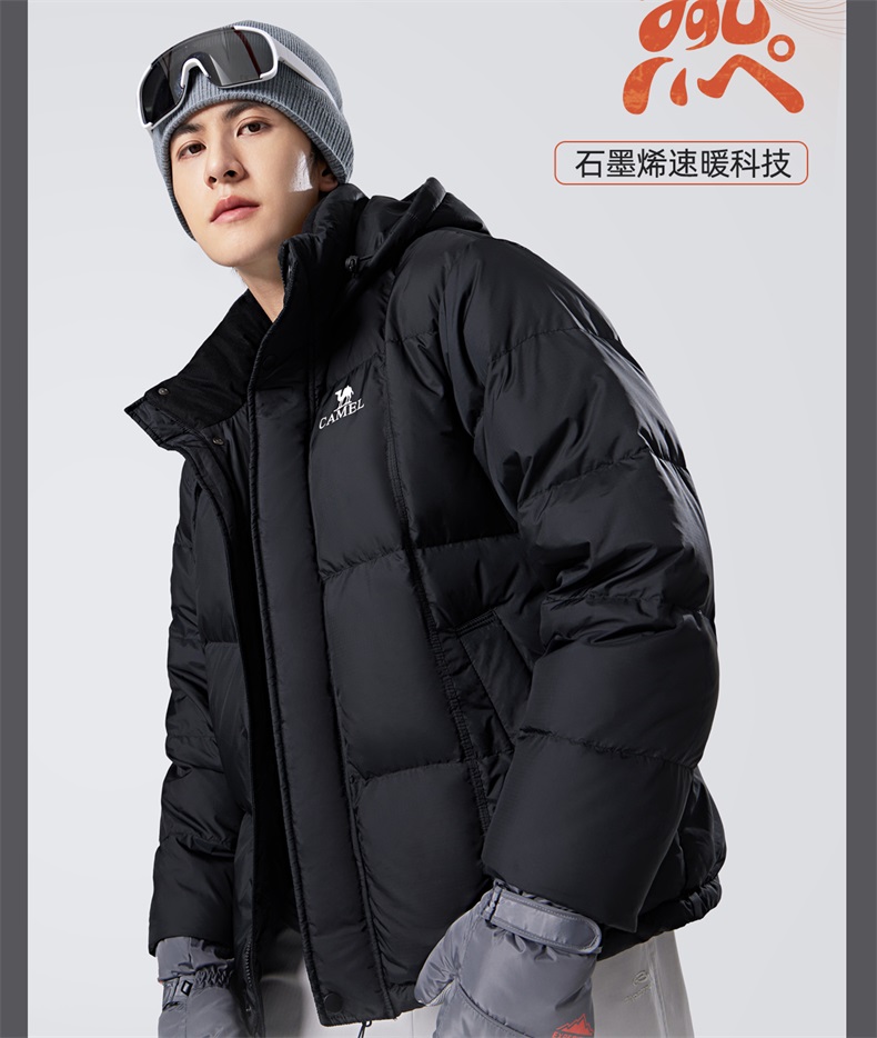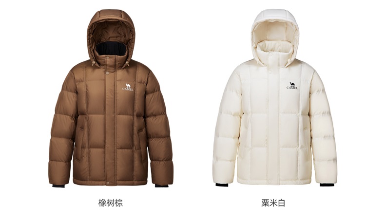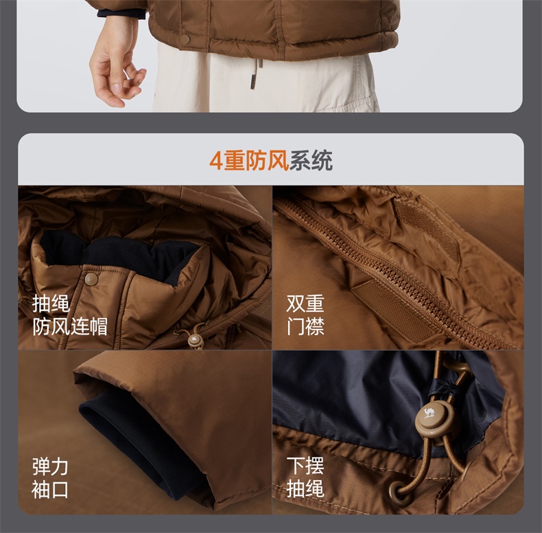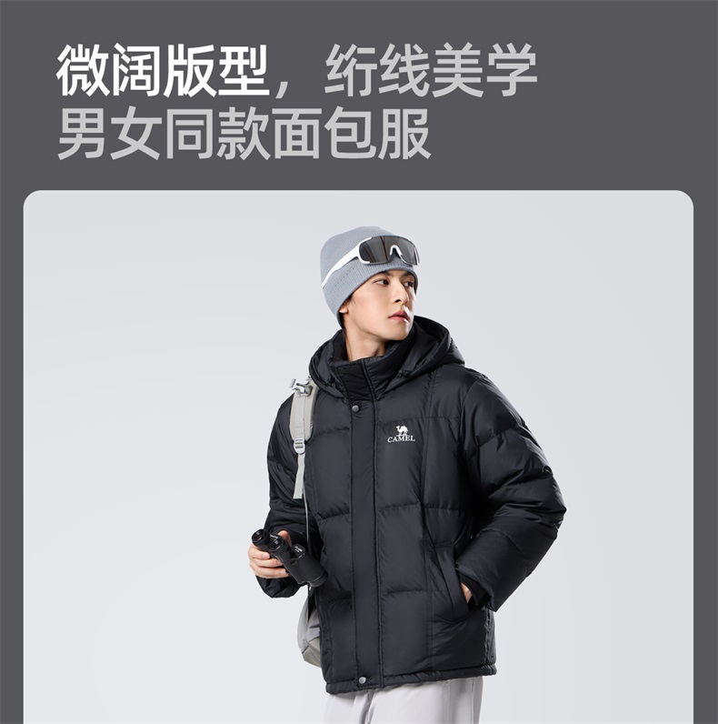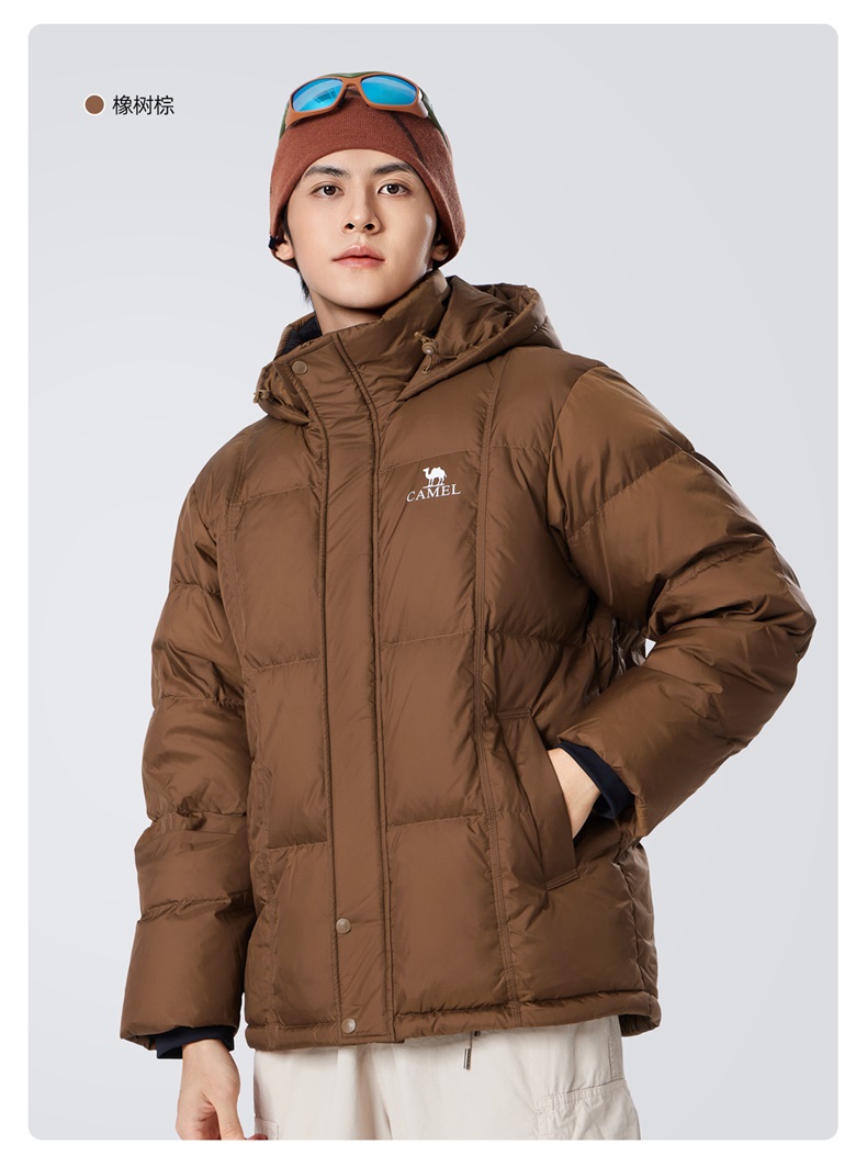 送运费险~原价2328元骆驼连帽加厚保暖情侣同款面包连帽鸭绒填充羽绒服