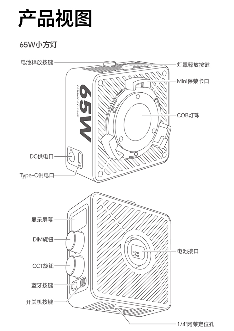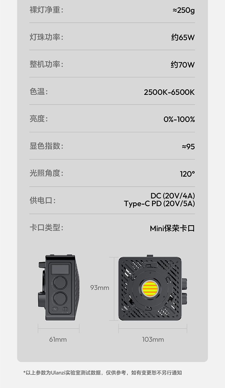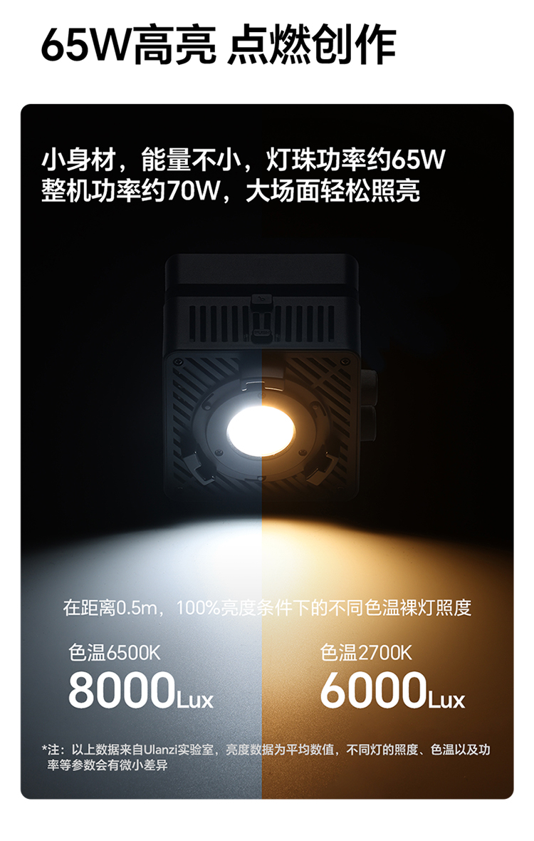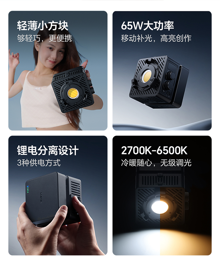 Ulanzi优篮子EC65 65W双色温COB补光灯套装专业补光灯便携摄影灯