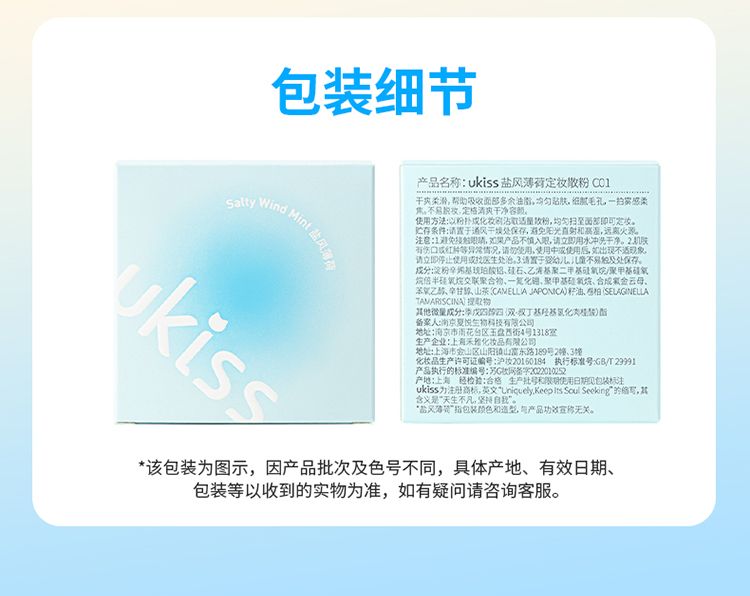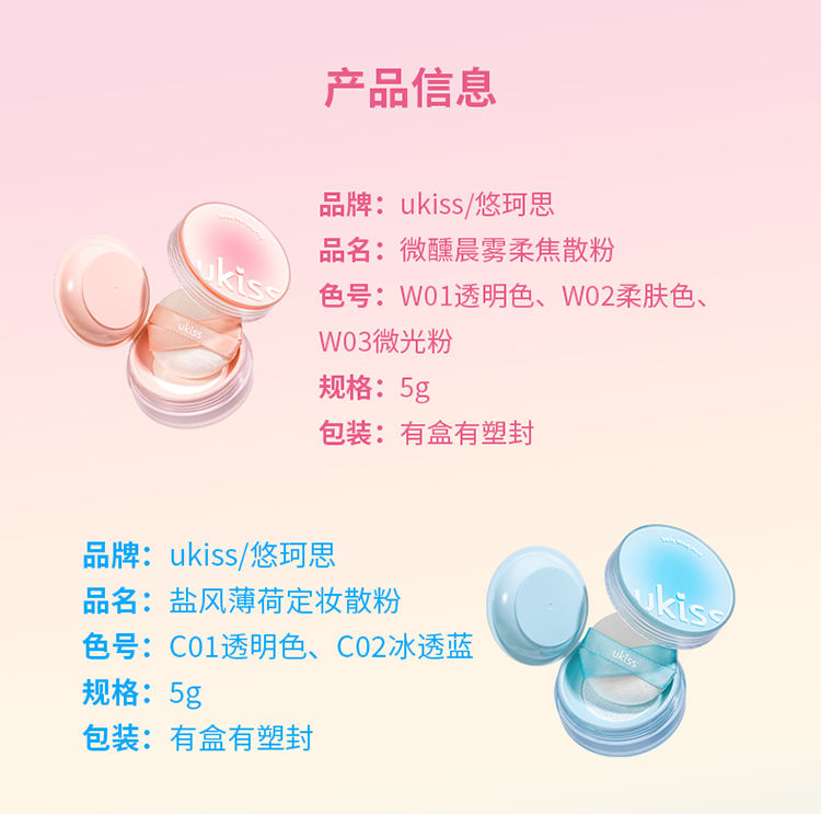 【轻薄柔雾 吸油定妆】ukiss悠珂思盐风薄荷&微醺晨雾柔焦散粉小果冻散粉