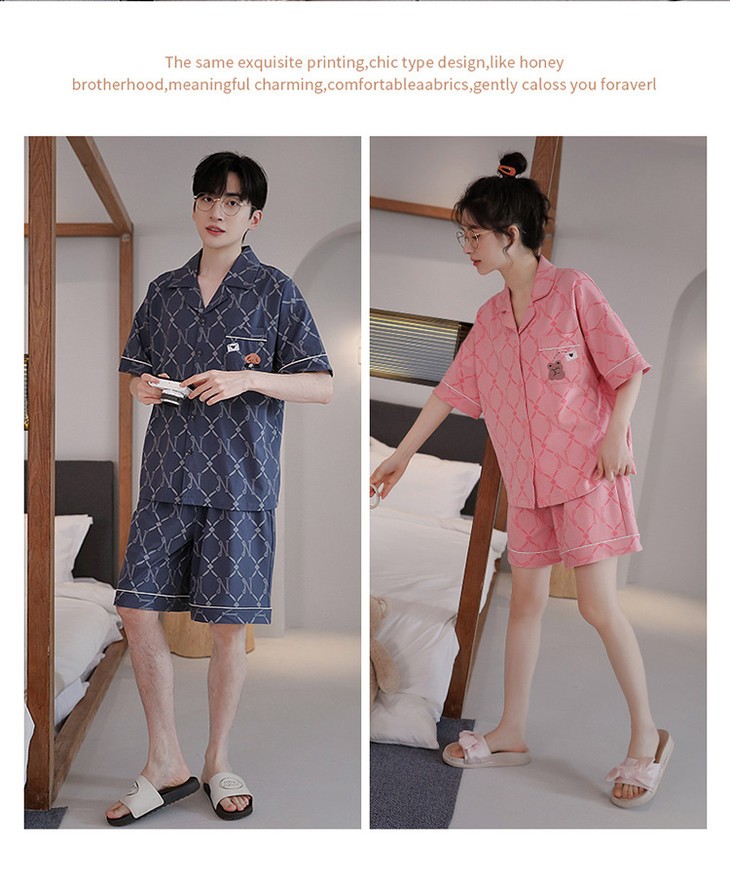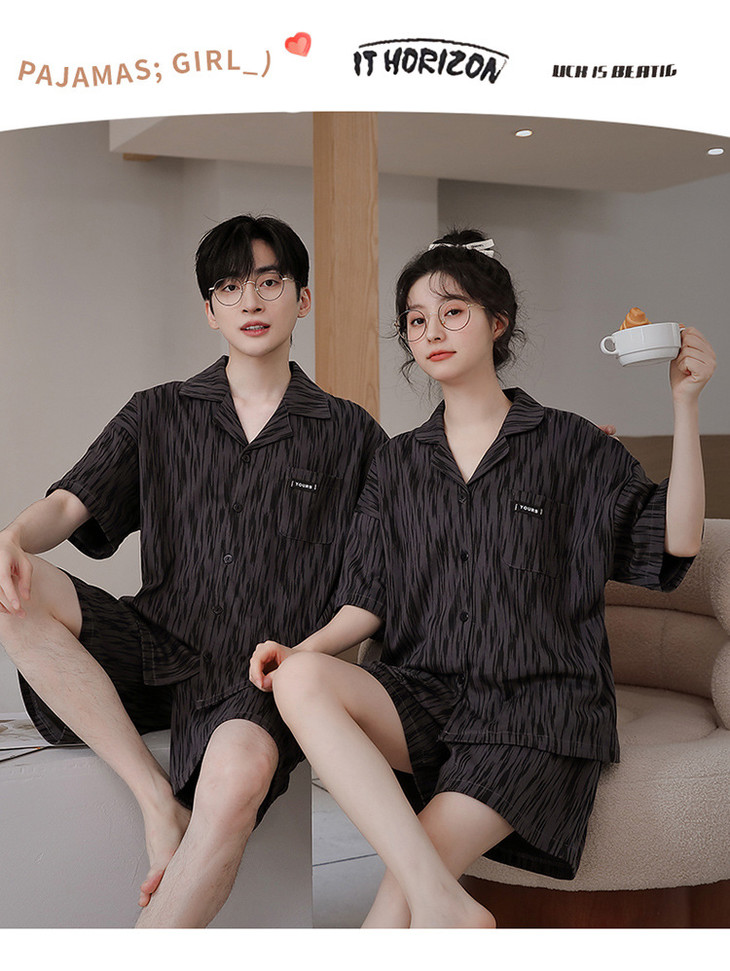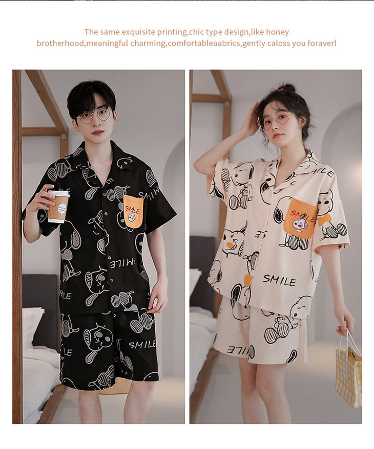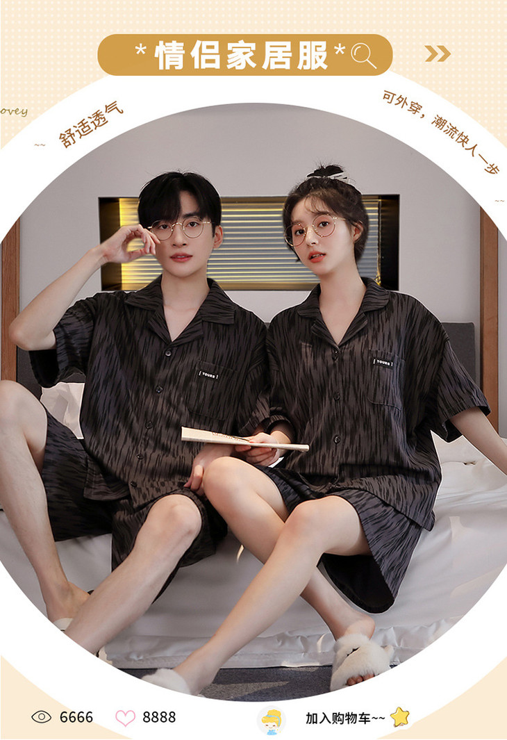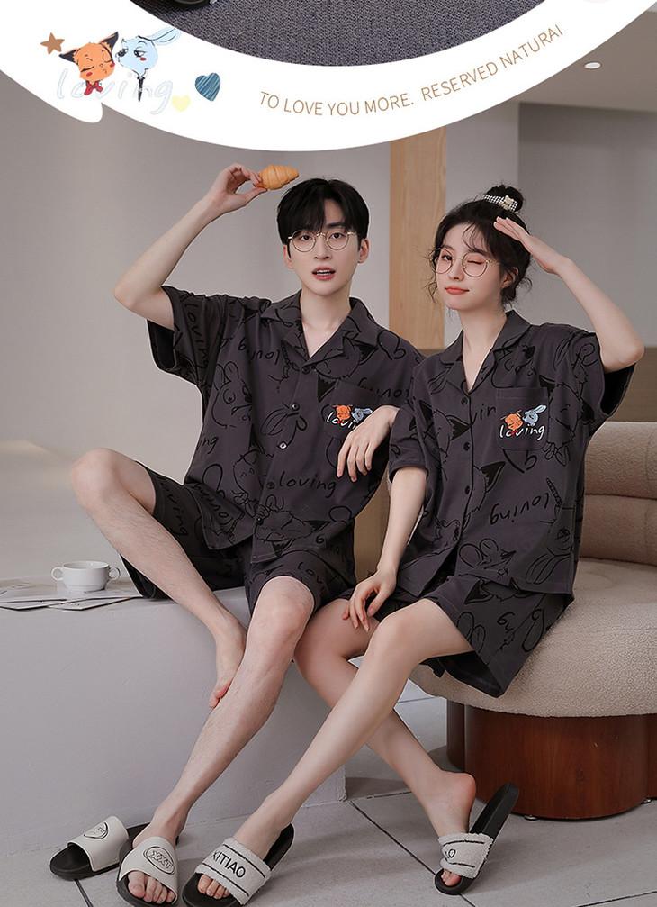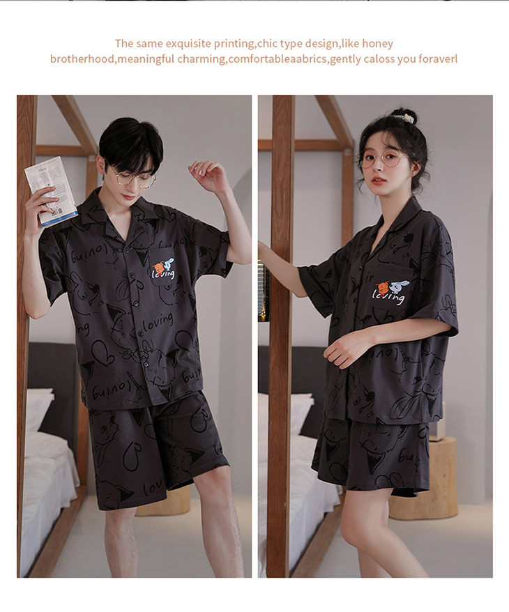 夏季开衫短袖短裤两件套女生卡通休闲可外穿家居服男士情侣睡衣