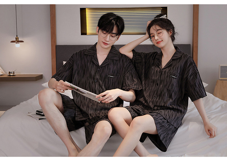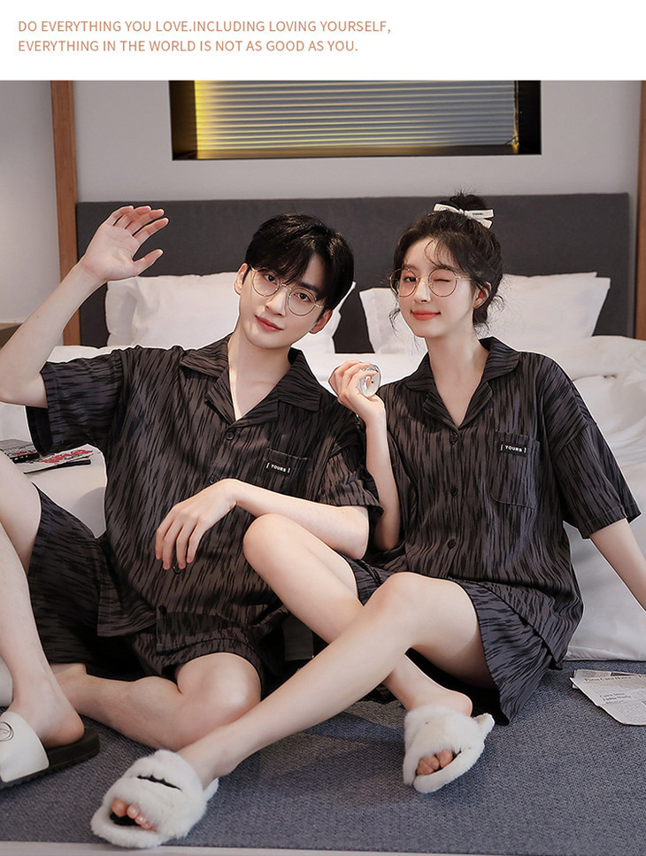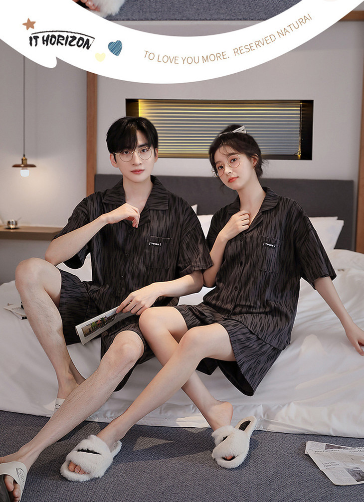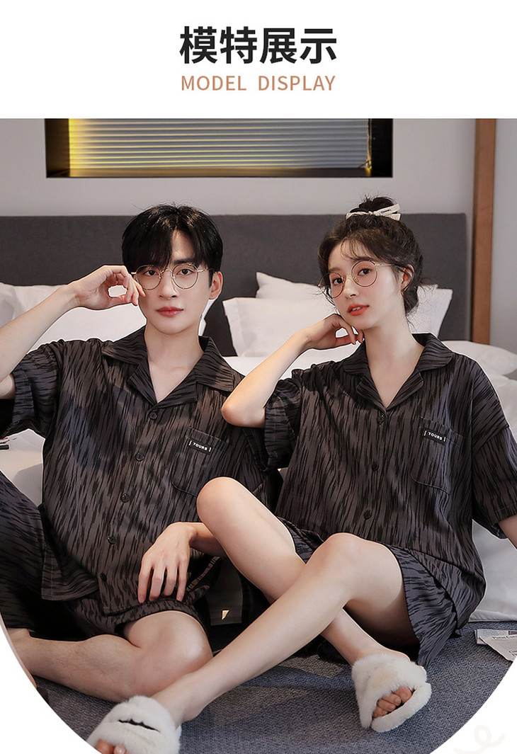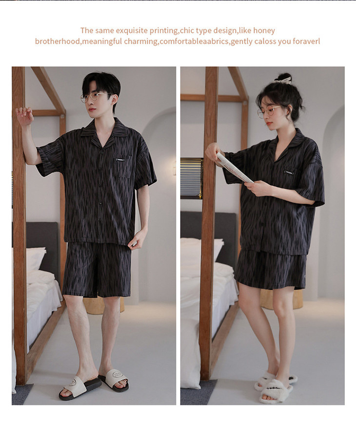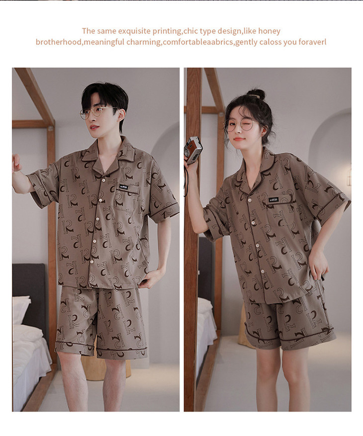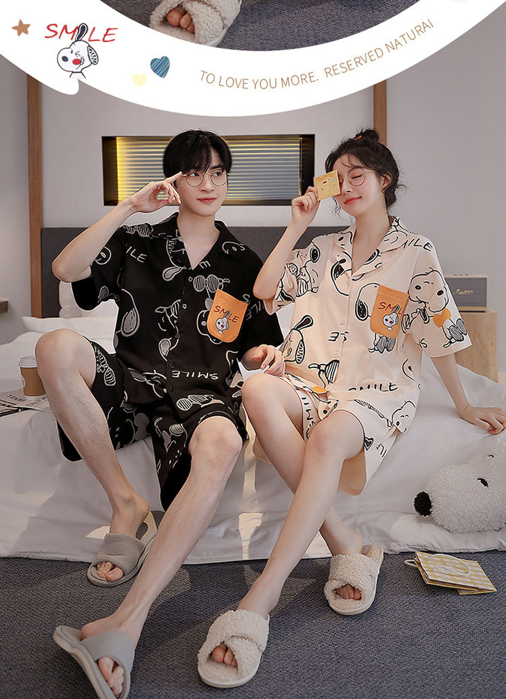 夏季开衫短袖短裤两件套女生卡通休闲可外穿家居服男士情侣睡衣