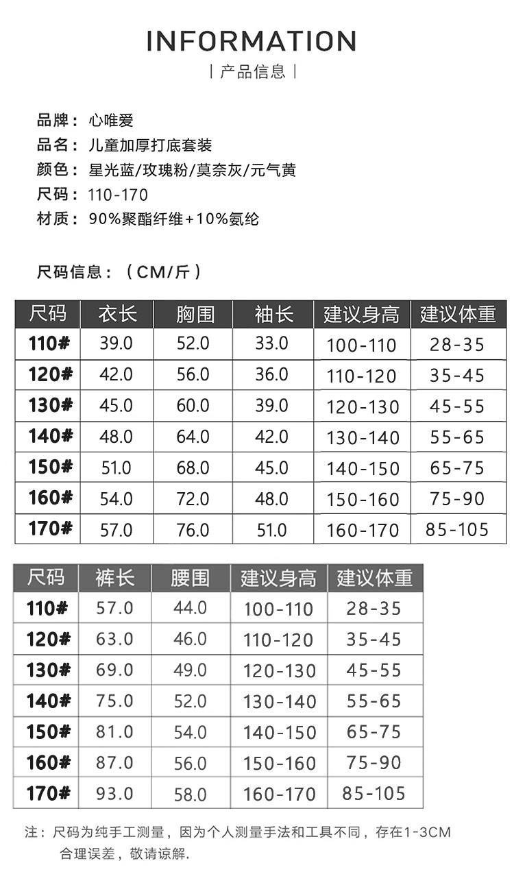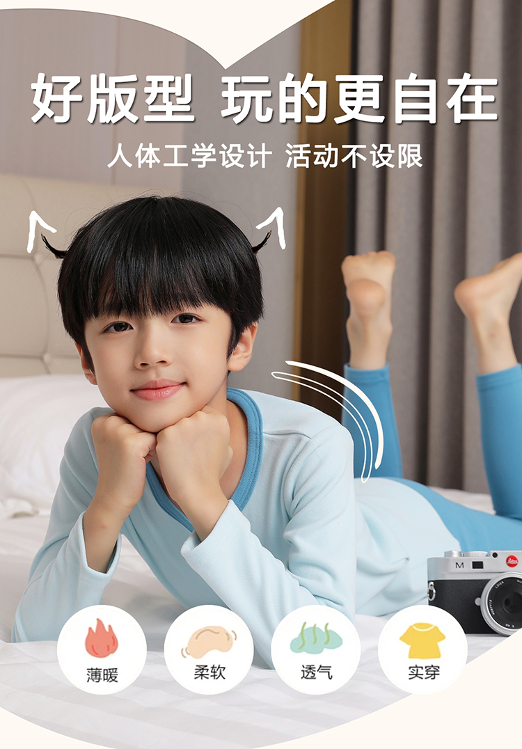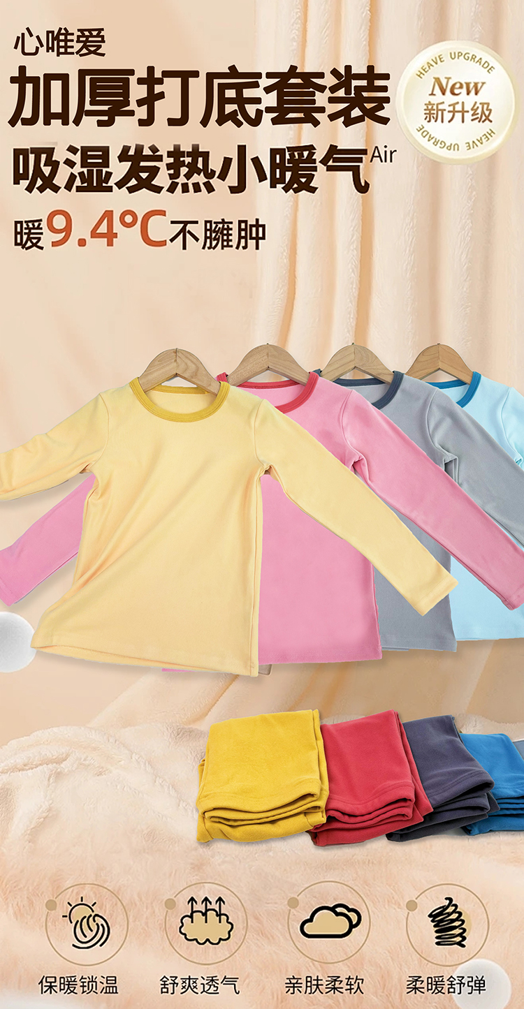 【69/2套】110-170码儿童加厚打底套装黑科技发热阳离子双面磨毛男女童秋衣裤套装