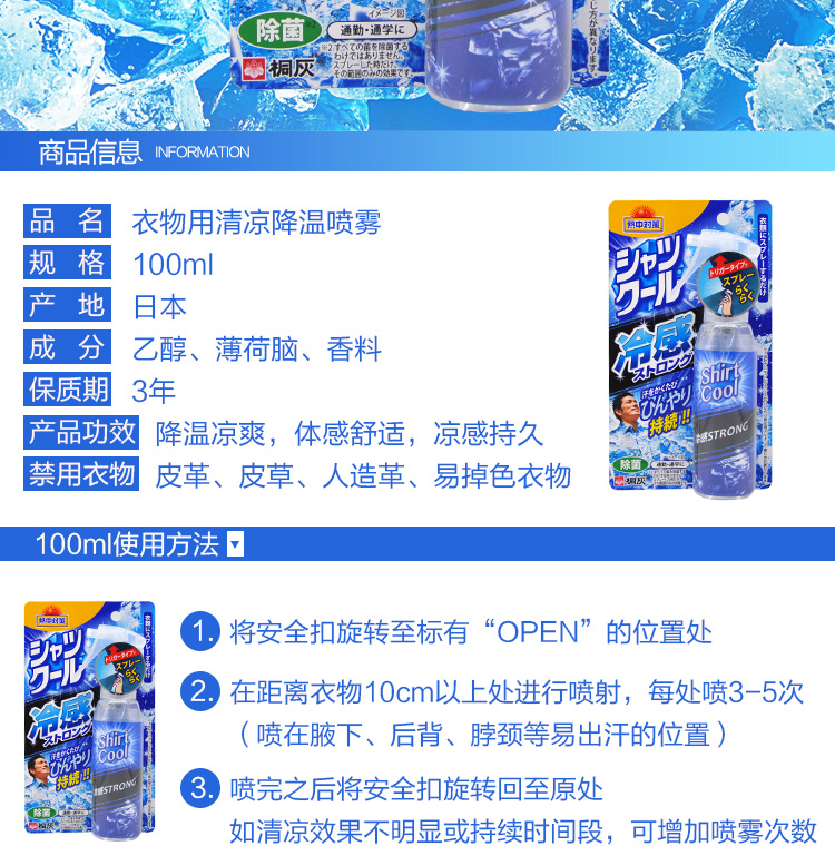 日本进口小林制药桐灰衣物去热身体快速降温消暑清凉喷雾