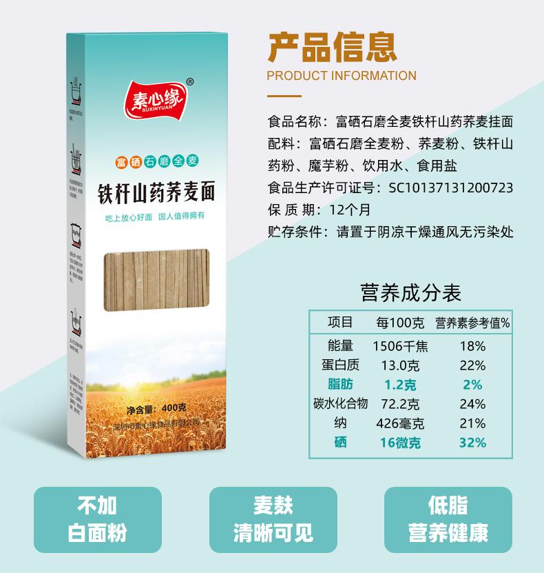 素心缘 富硒石磨全麦山药荞麦挂面低脂肪高饱腹营养代餐早餐面条