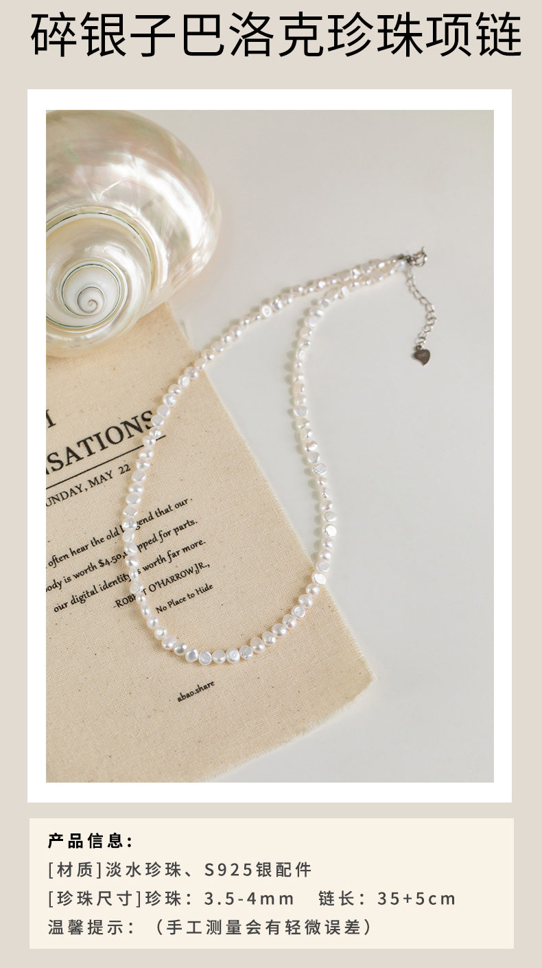 【经典】碎银子天然巴洛克珍珠项链 天然淡水珍珠项链女锁骨链简约百搭颈链925银配件可做手链一物两用带证书