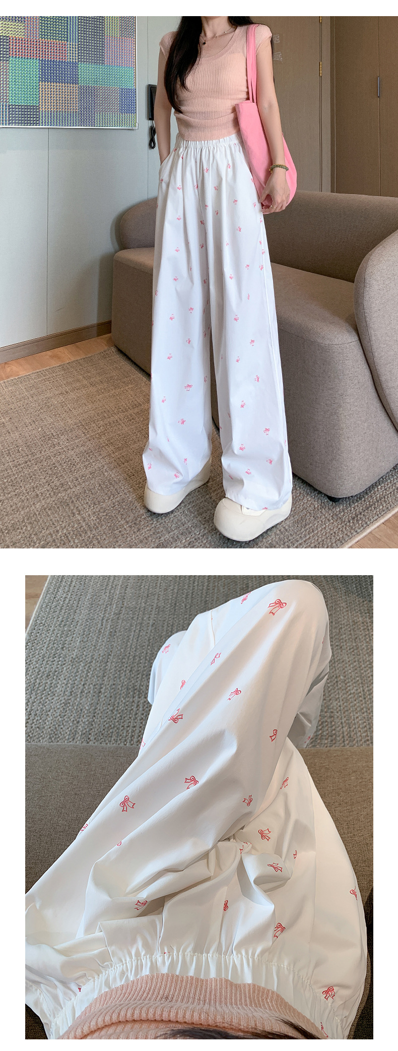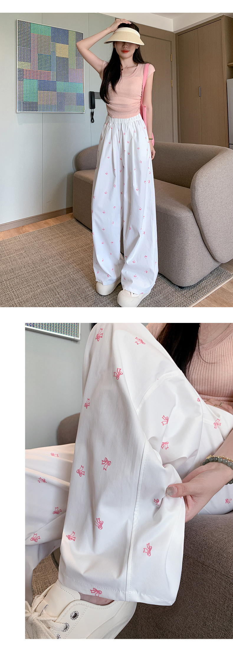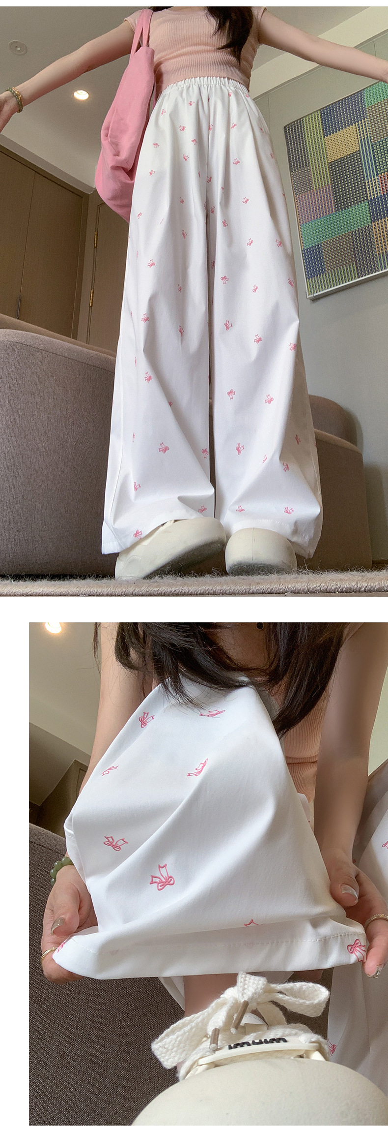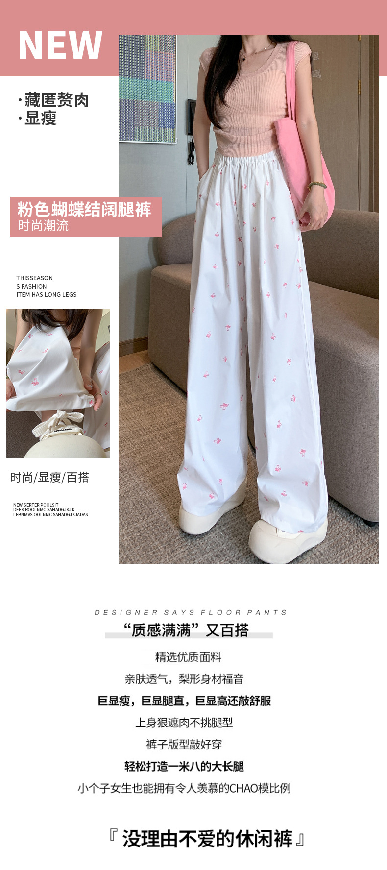 【夏季新款,百搭随心搭】蝴蝶结与碎花,拼接奇幻梦境;高腰直筒,显瘦气场无敌;白色阔腿,透气亲肤,仙女必备!