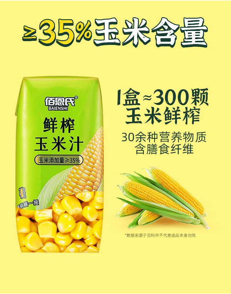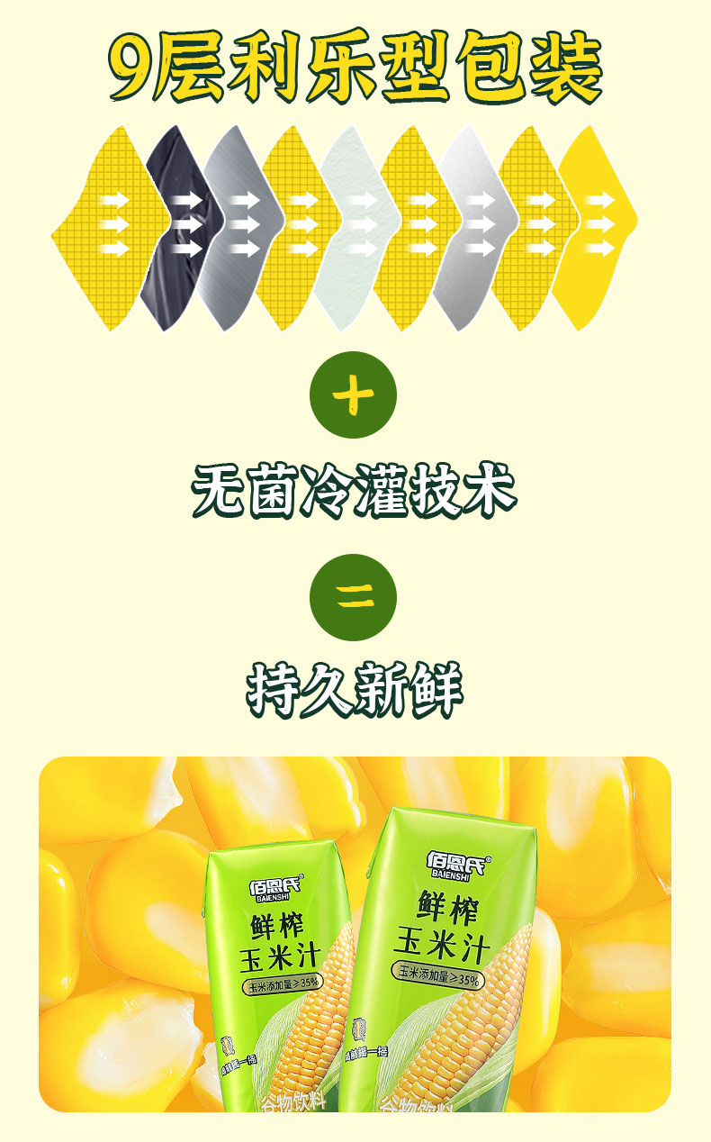 【 自然“汁”道,喝前摇一摇,到手24瓶】佰恩氏NFC非浓缩鲜榨玉米汁谷物饮料200ml,非转基因玉米添加量≥35%,干净配料表,原汁原味,0色素,0香精~分2个包裹