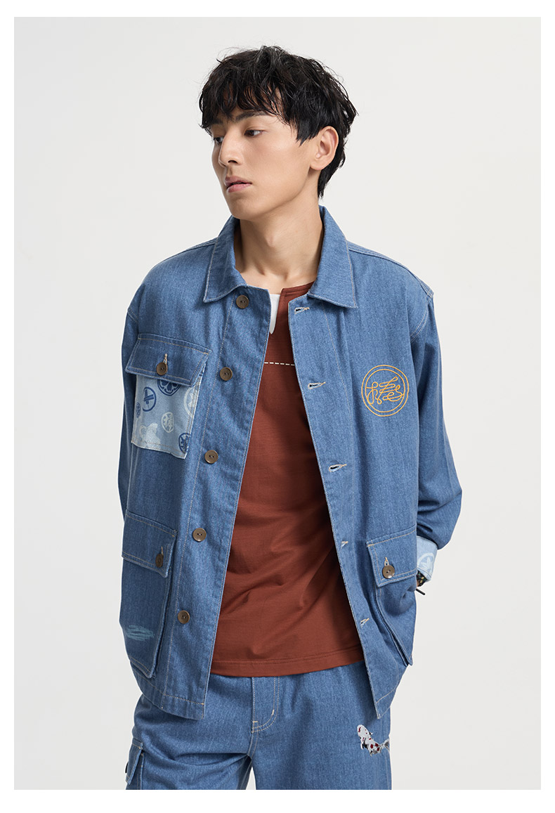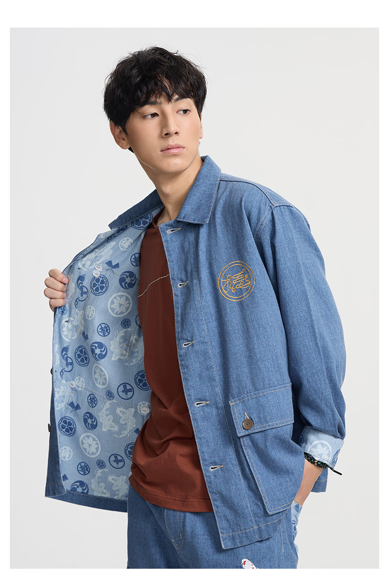 ONIARAI/鬼洗25春夏棒系列双面小达摩牛仔衬衫式外套男式 N340213