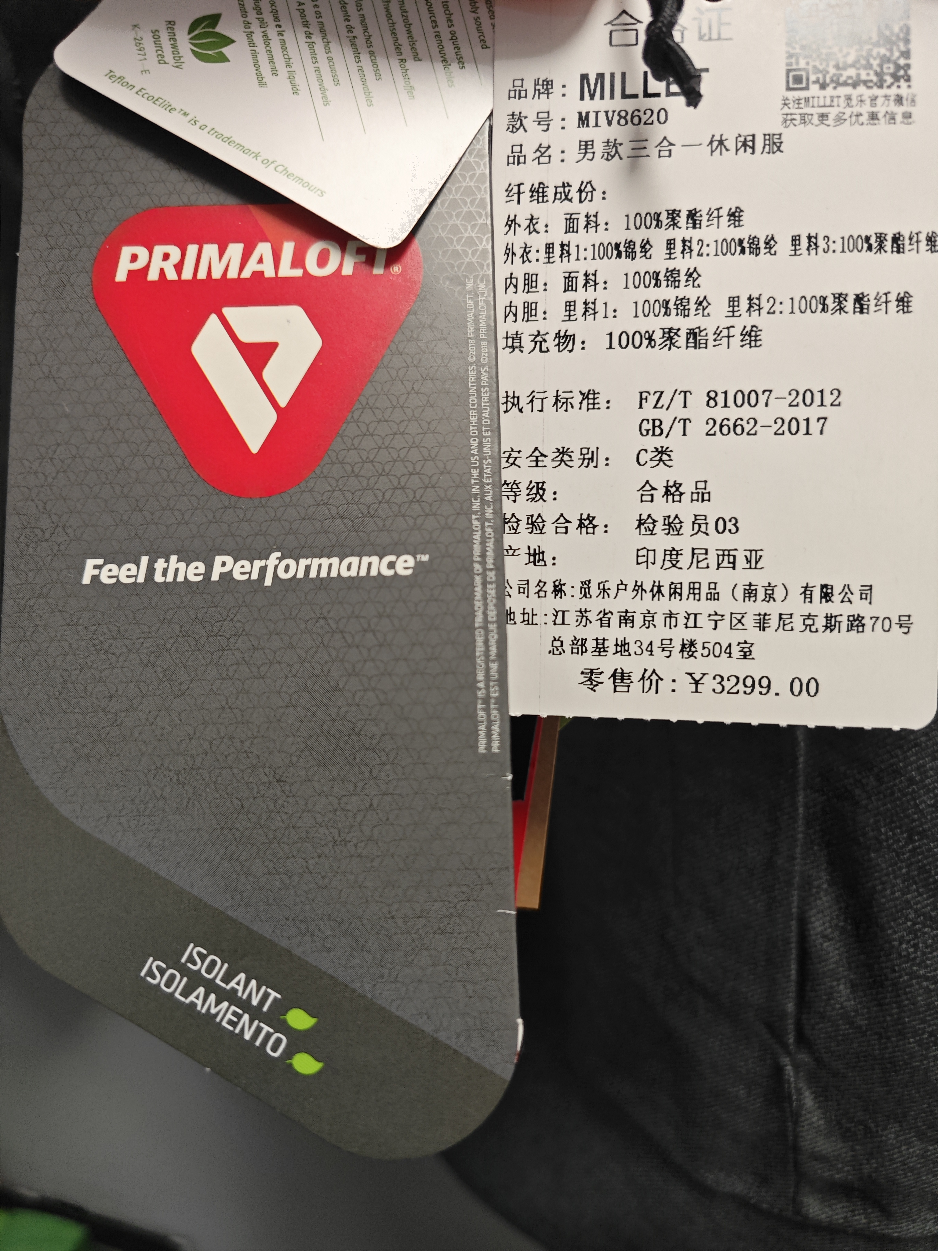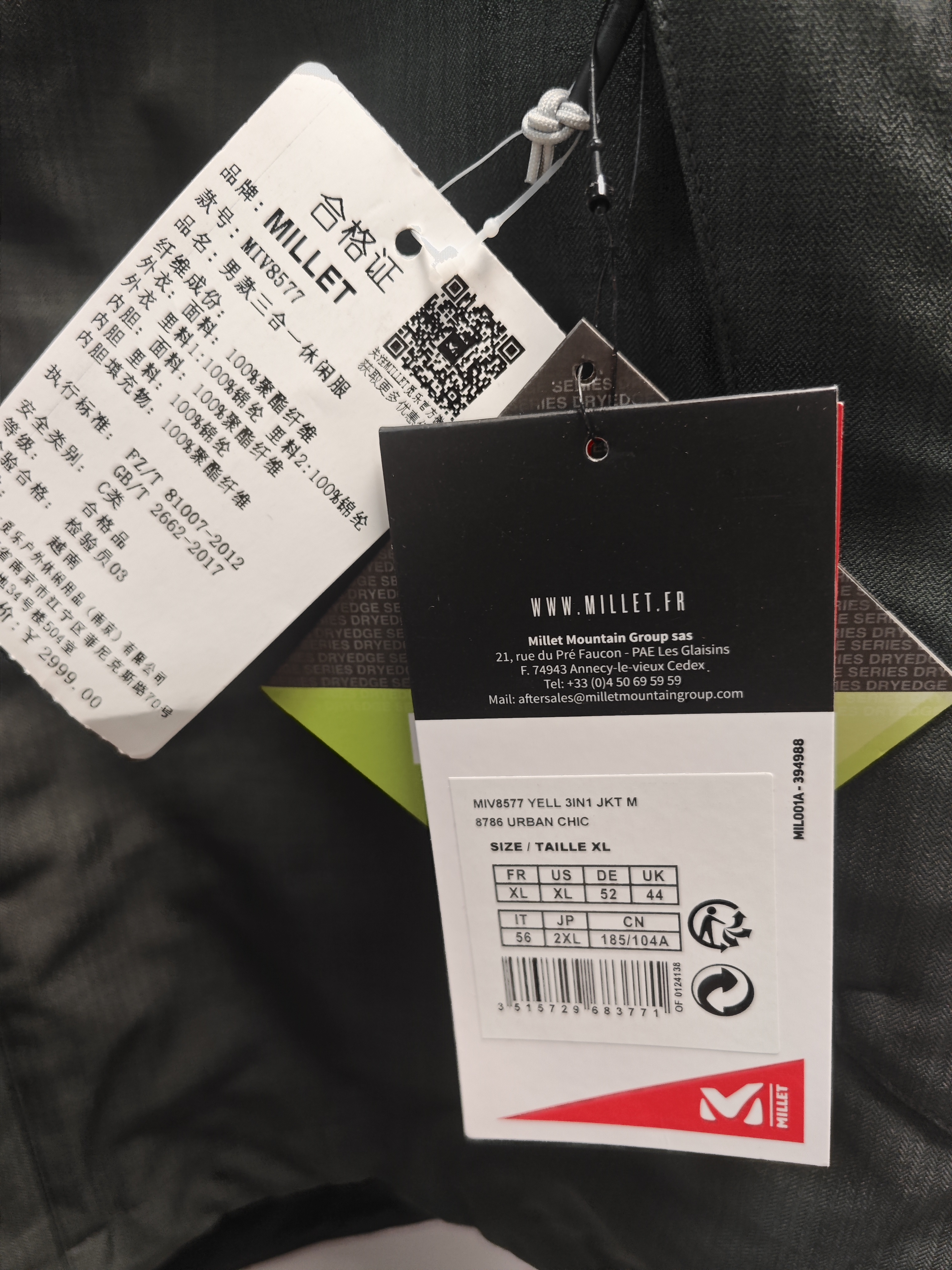 法国觅乐MILLET 男女款秋冬三合一棉服冲锋衣