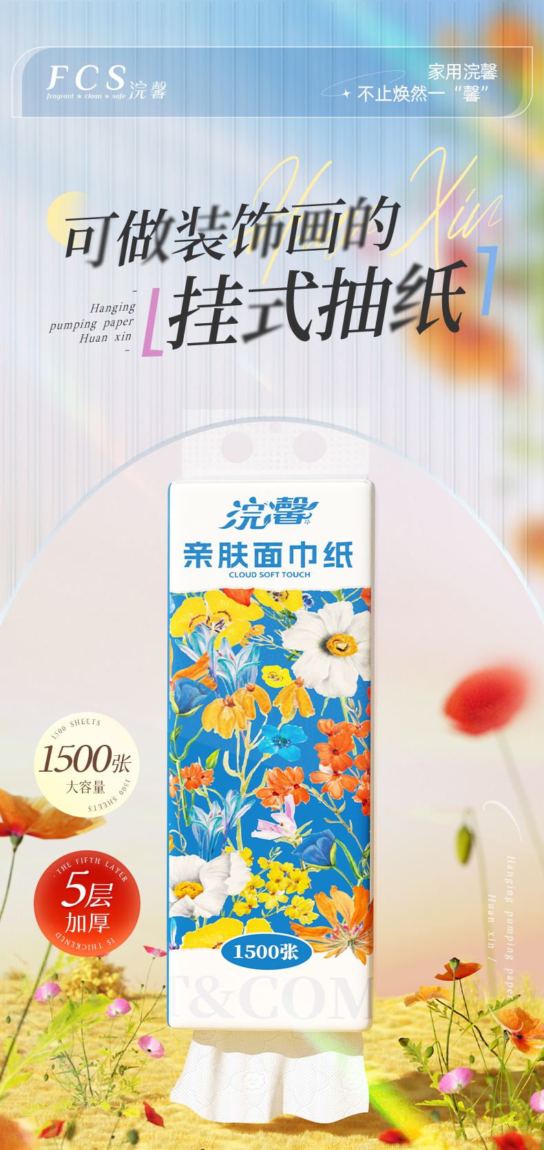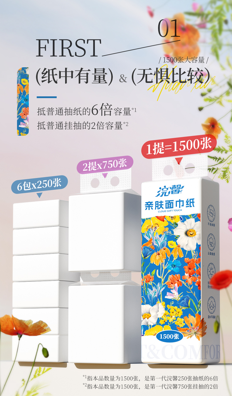 【自营】蓝漂浣馨系列悬挂式纸巾抽纸底部挂抽纸餐巾纸卫生纸擦手纸2提 FCS-52432