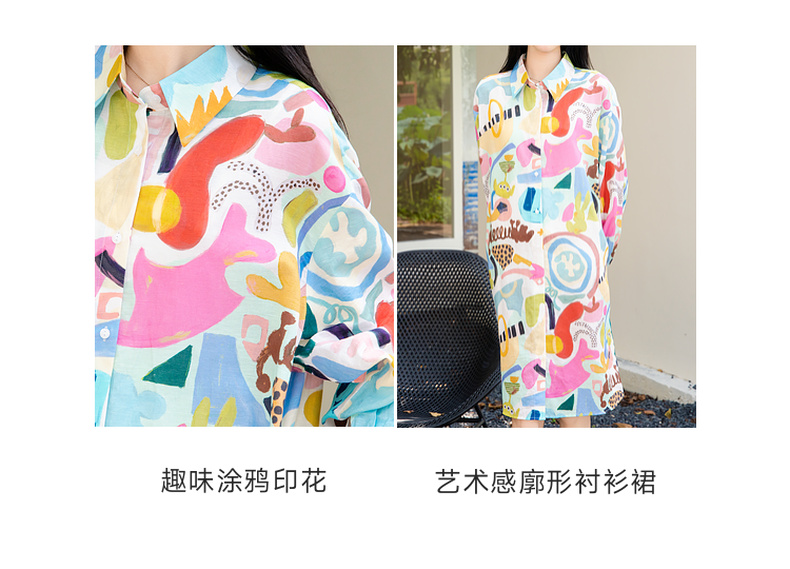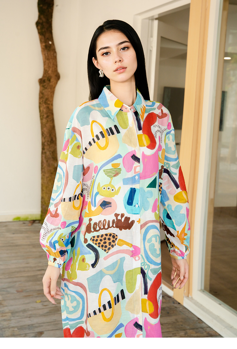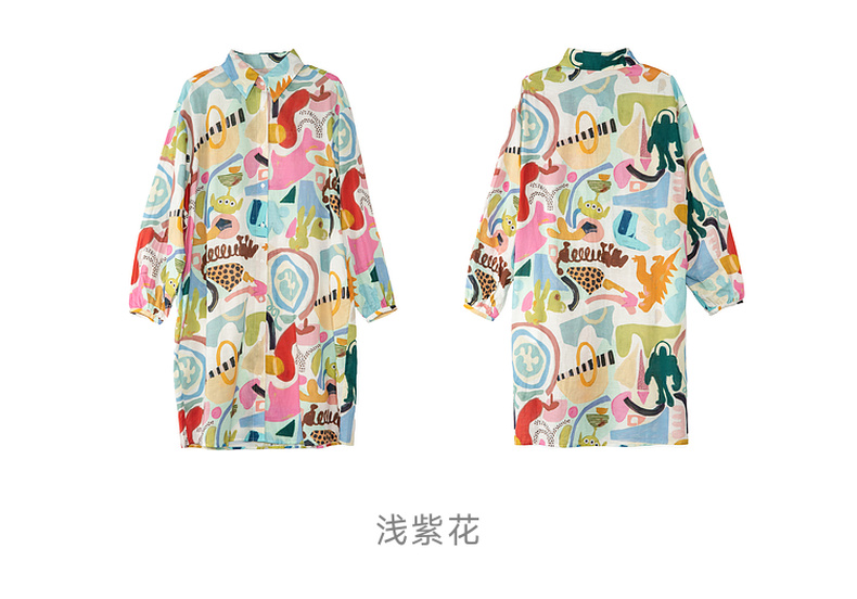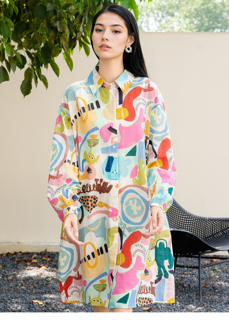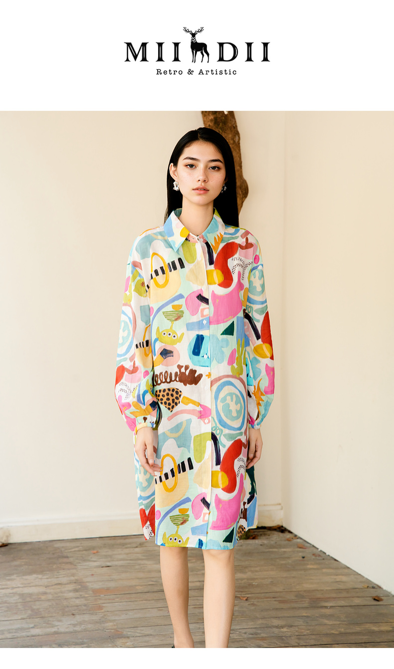谜底花色连衣裙长袖2025秋季新款复古风印花宽松衬衫裙257ML7818