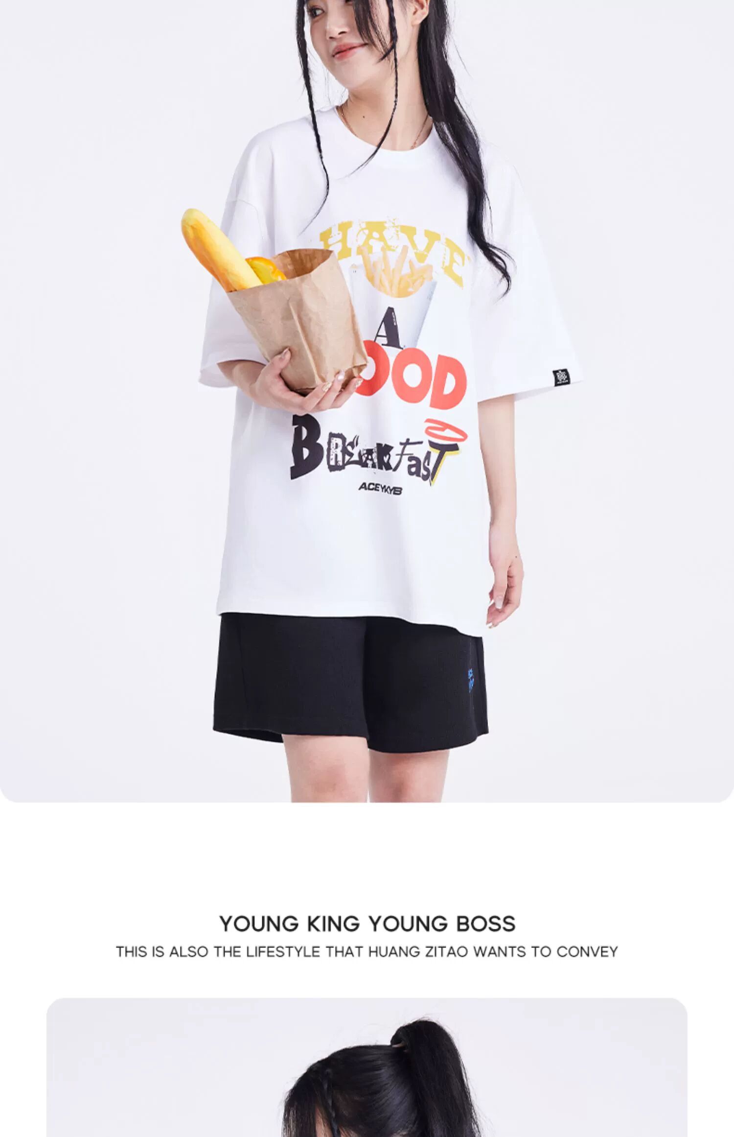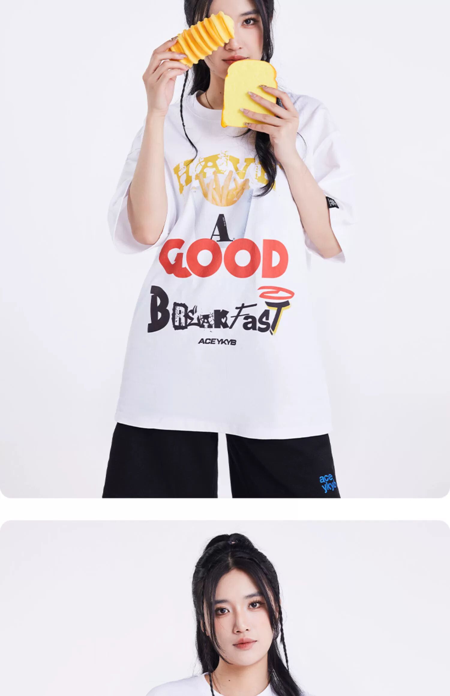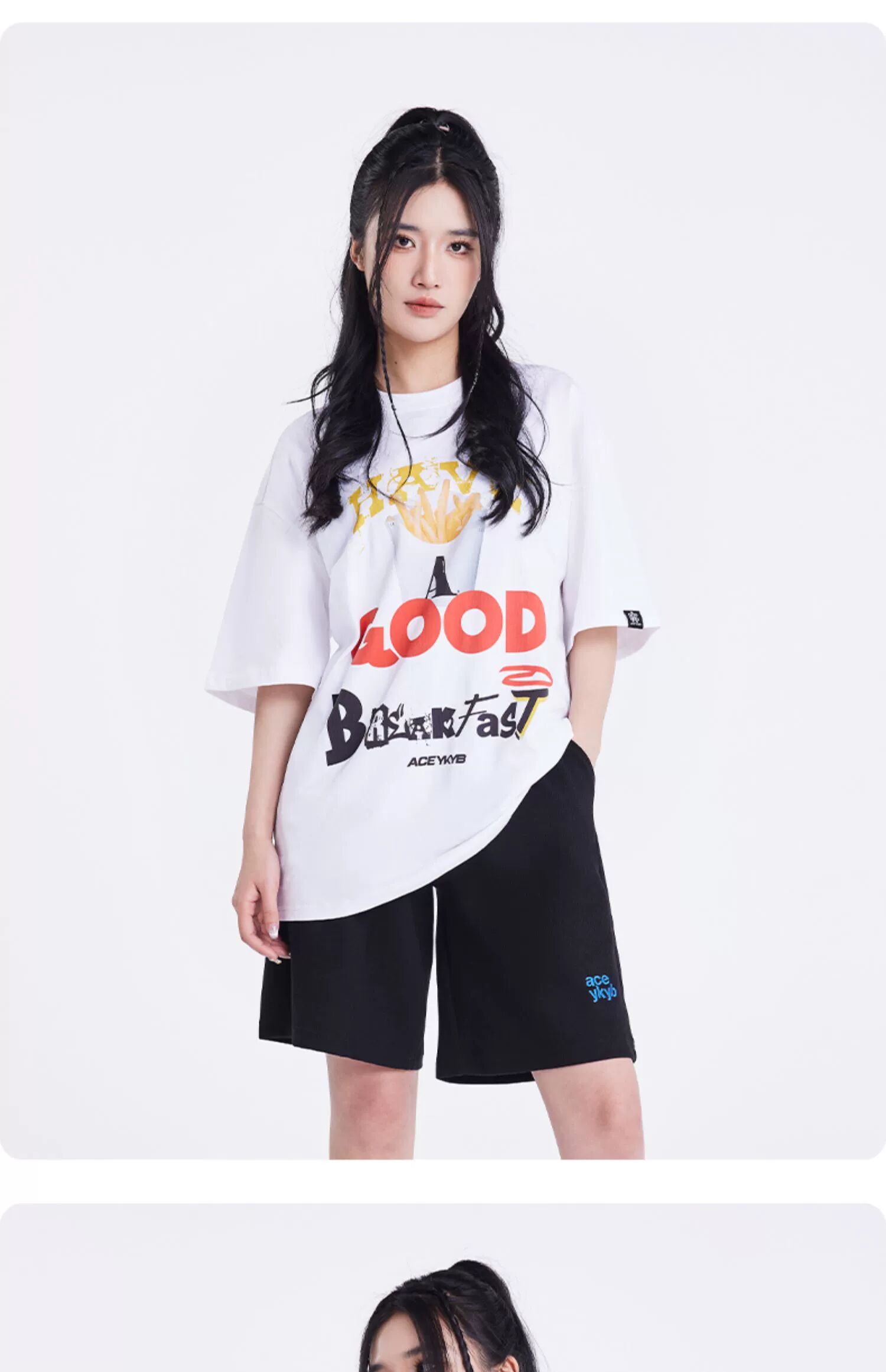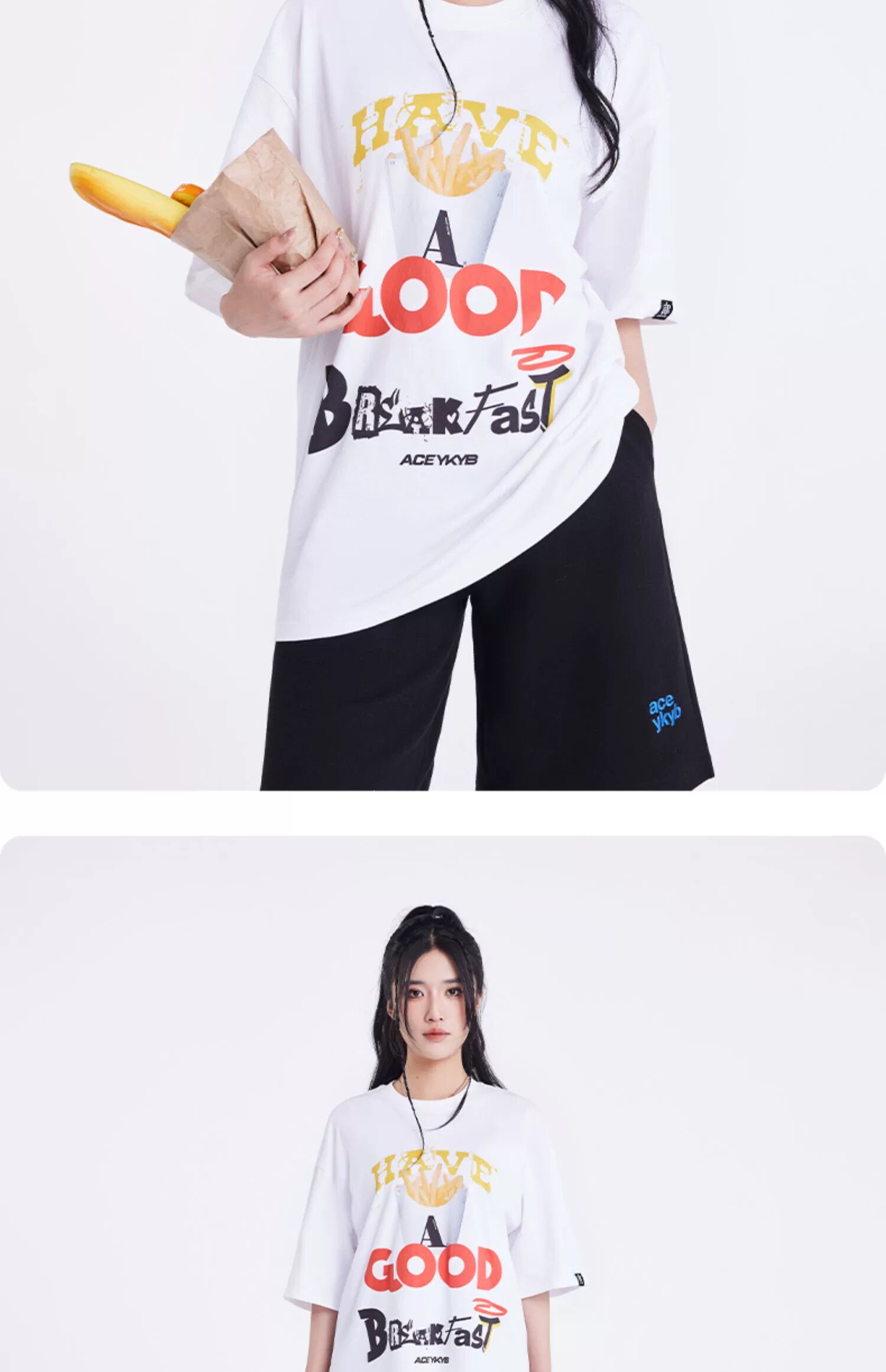 ACEYKYB黄子韬薯条印花T恤男女2025夏季新款美式宽松休闲短袖中性