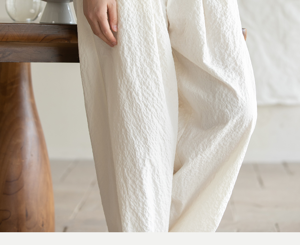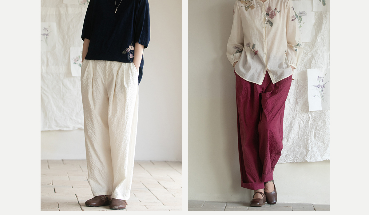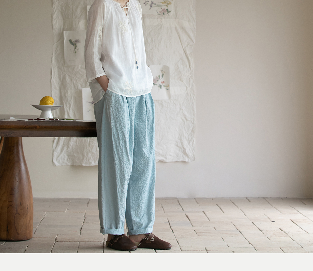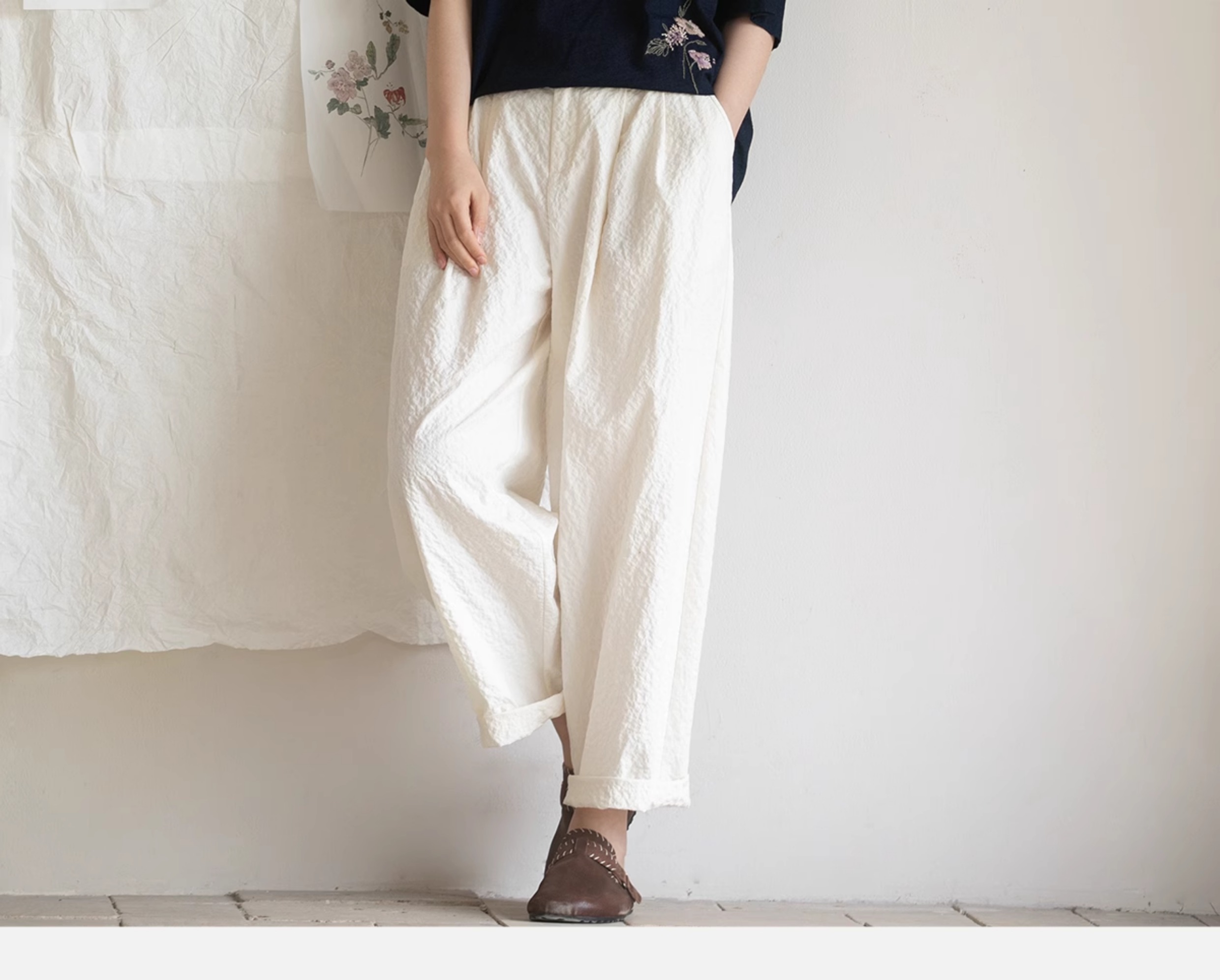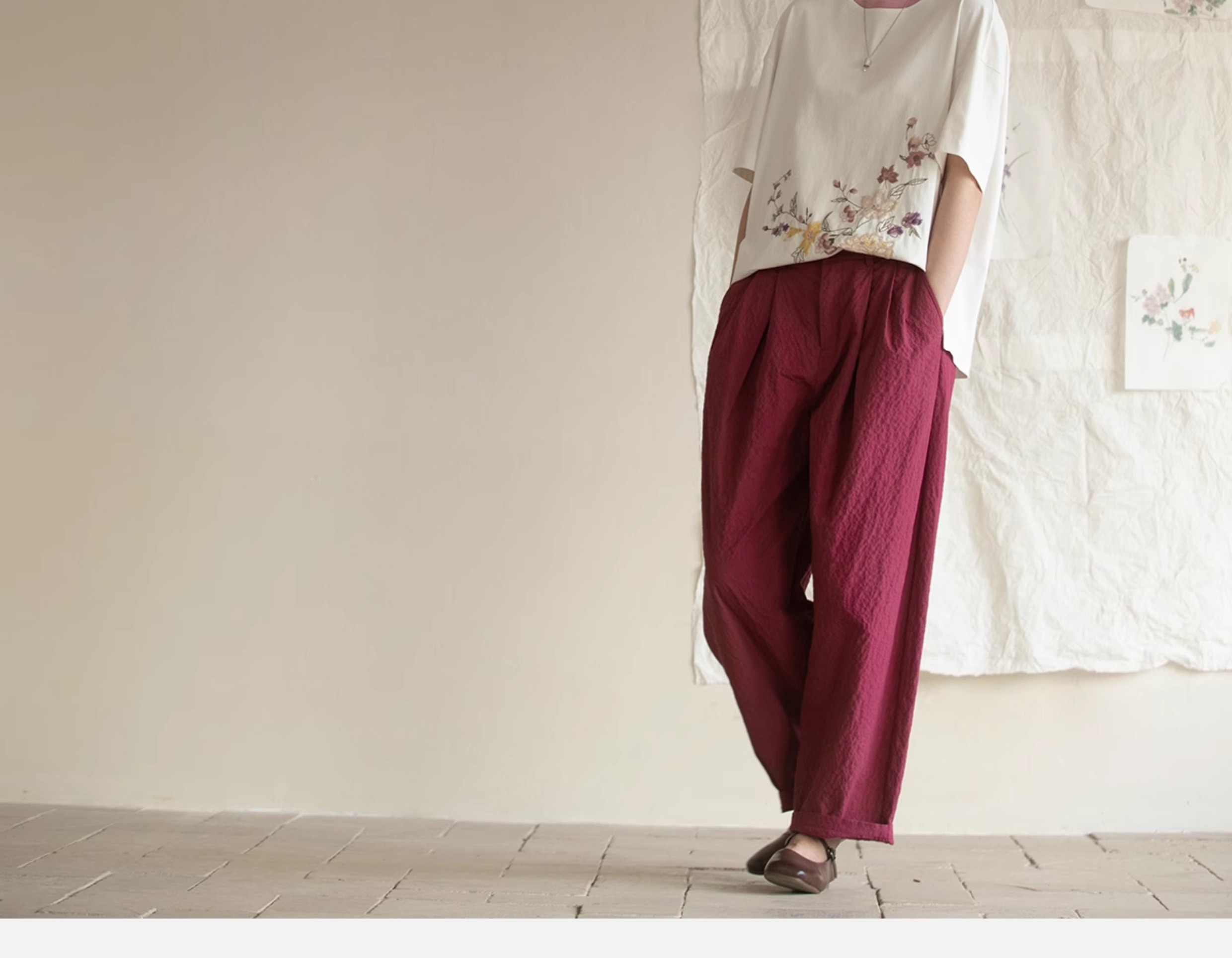 牧衣游原创 棉净色宽松长裤夏季宽松显瘦纯色文艺百搭休闲裤 余花