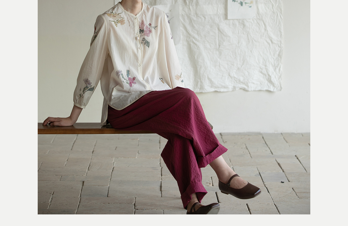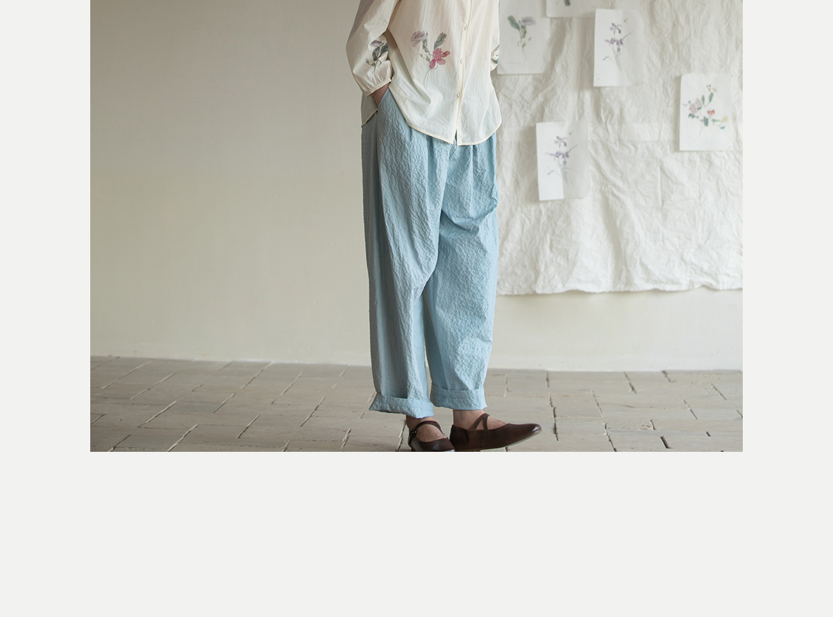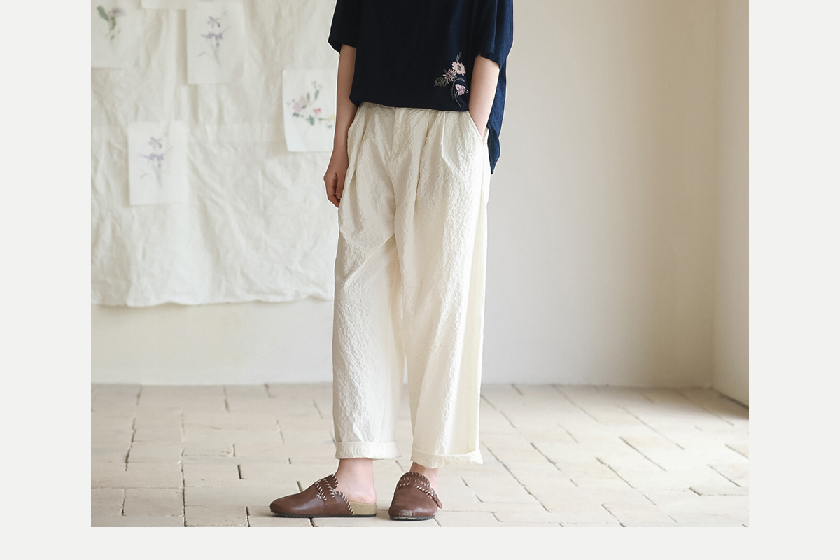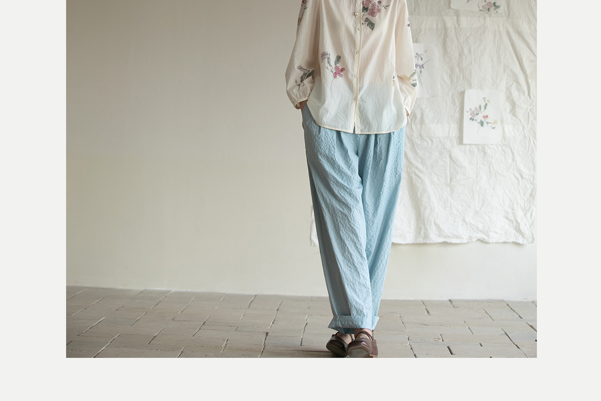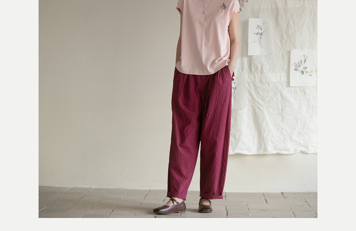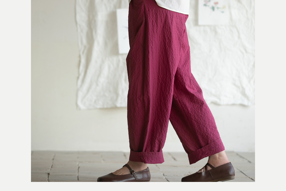 牧衣游原创 棉净色宽松长裤夏季宽松显瘦纯色文艺百搭休闲裤 余花
