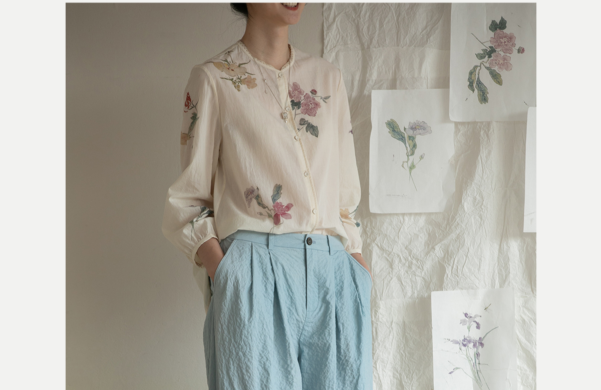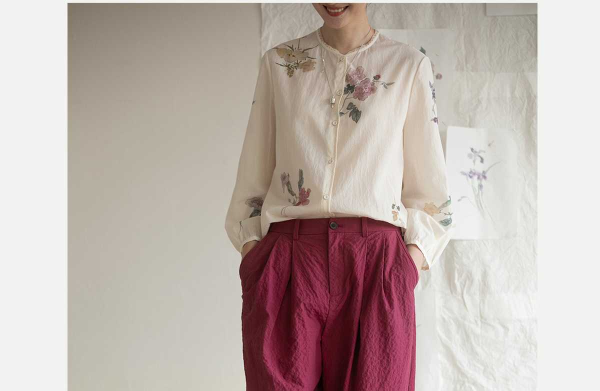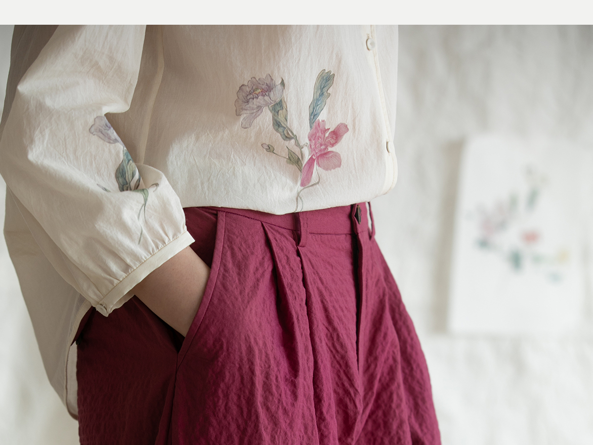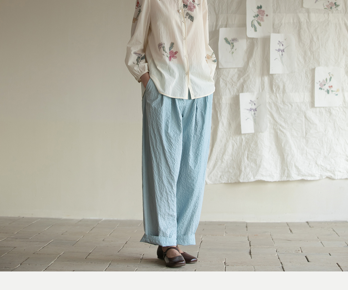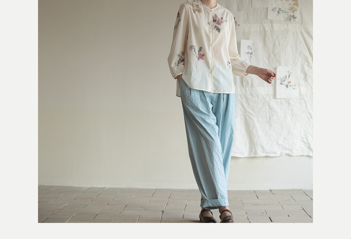 牧衣游原创 棉净色宽松长裤夏季宽松显瘦纯色文艺百搭休闲裤 余花