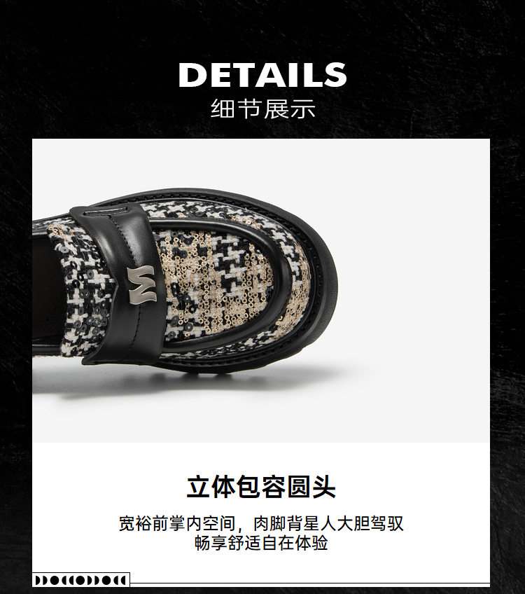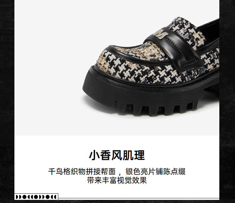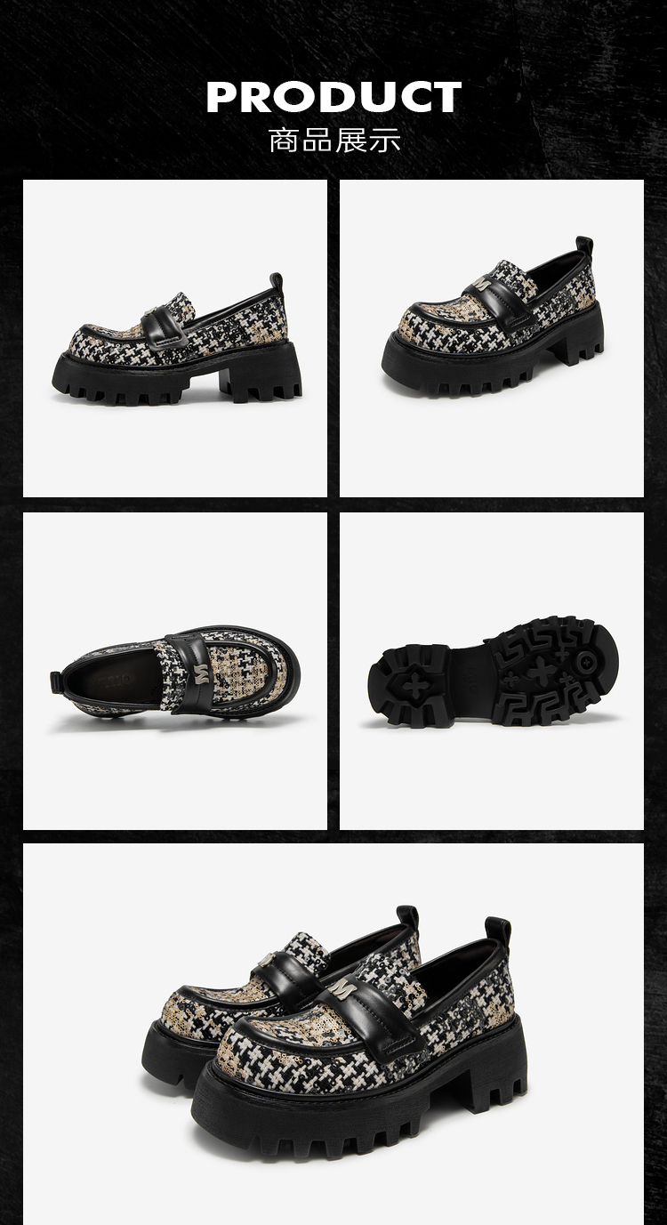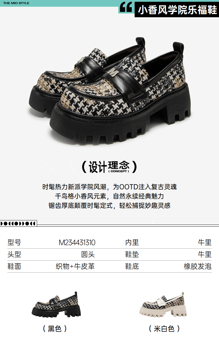 MIO米奥圆头厚底千鸟格松糕单鞋小香风时髦学院风高跟乐福鞋女鞋M234431310