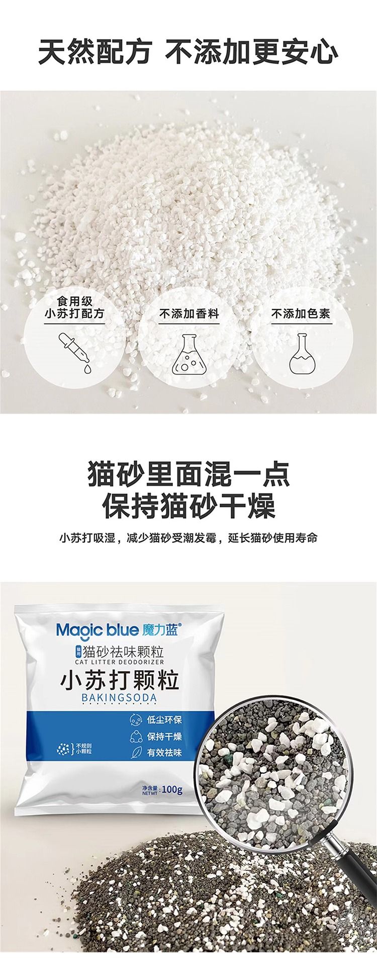 【祛味除湿】魔力蓝小苏打颗粒100g猫砂除臭珠祛味猫砂伴侣