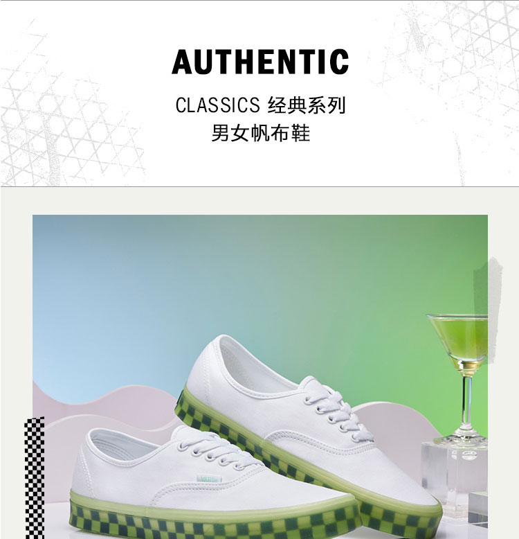 VANS Authentic荧光绿果冻底棋盘格男鞋女鞋帆布鞋VN0A5KRDAVD