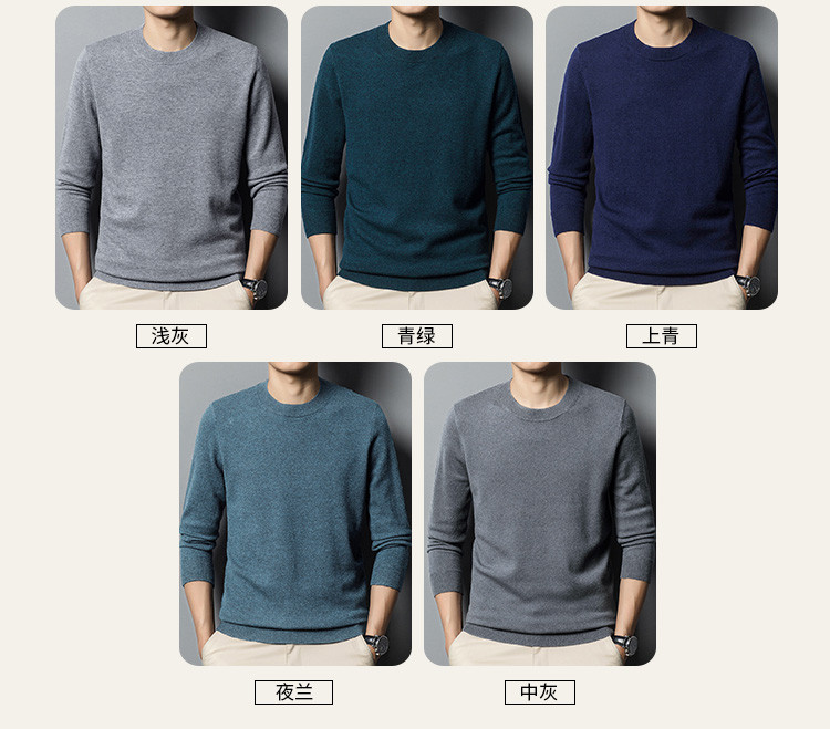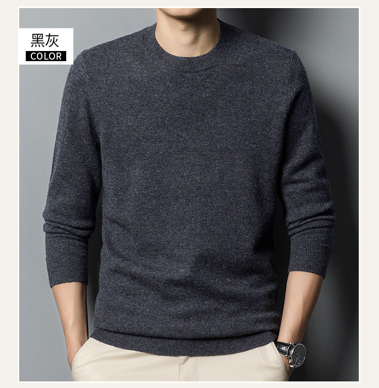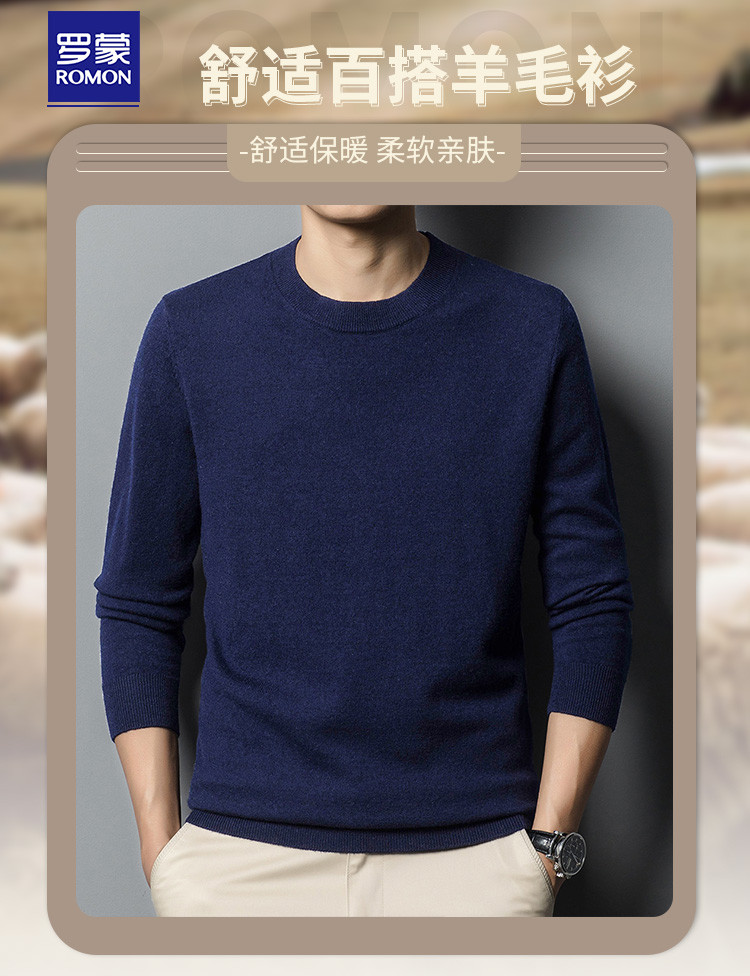 【100绵羊毛】罗蒙男士经典纯色羊毛衫男圆领男士羊毛衫舒适保暖毛衣男