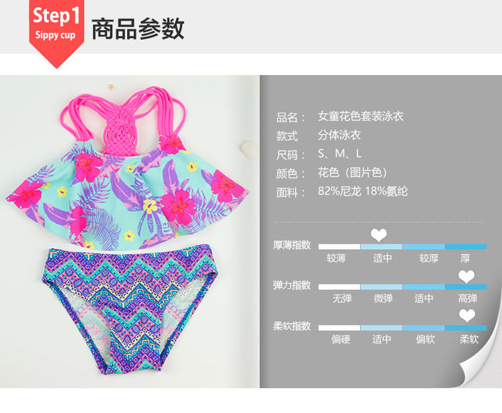 女童泳衣时尚可爱分体式花色泳衣【MW1832】