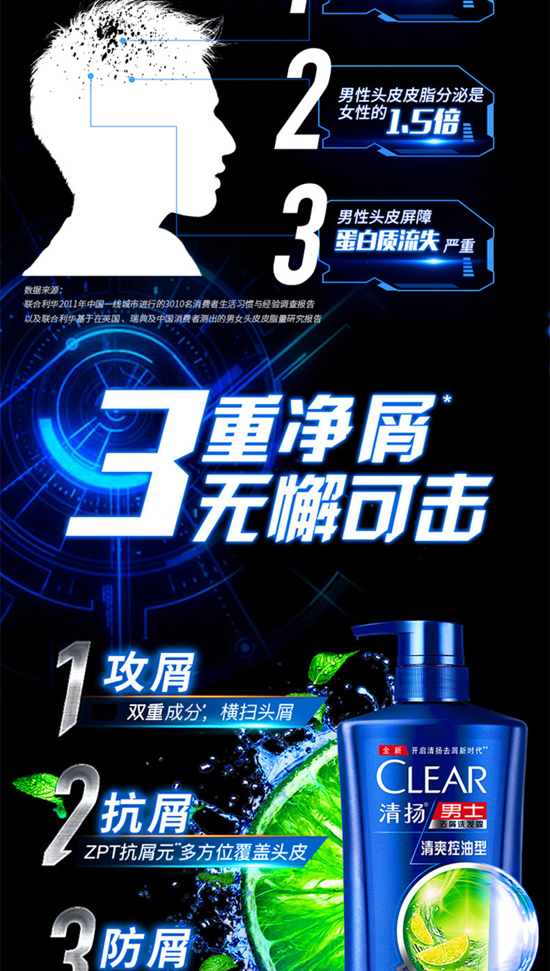 清扬男士去屑洗发露 清爽控油型650ml