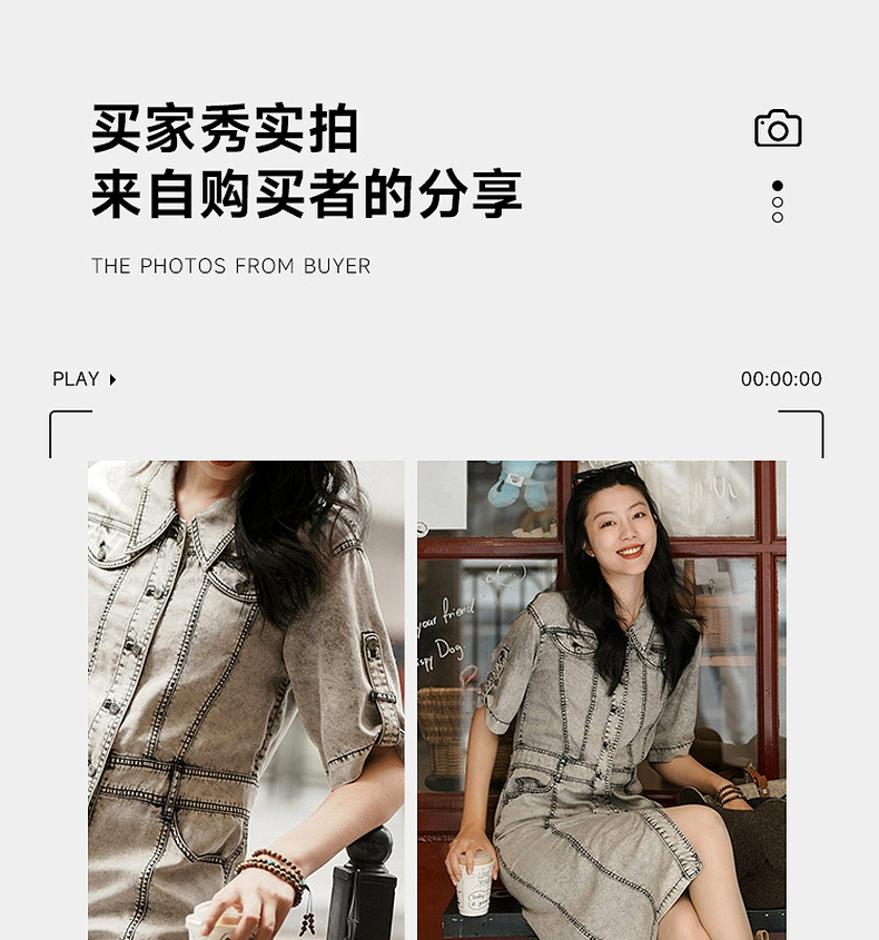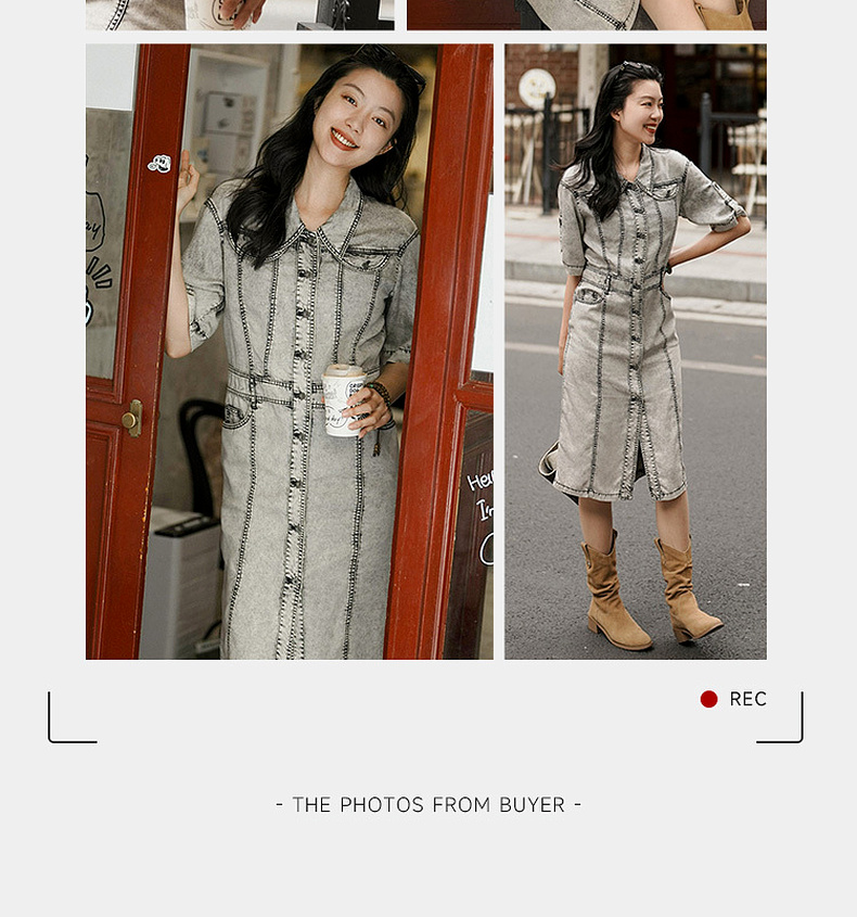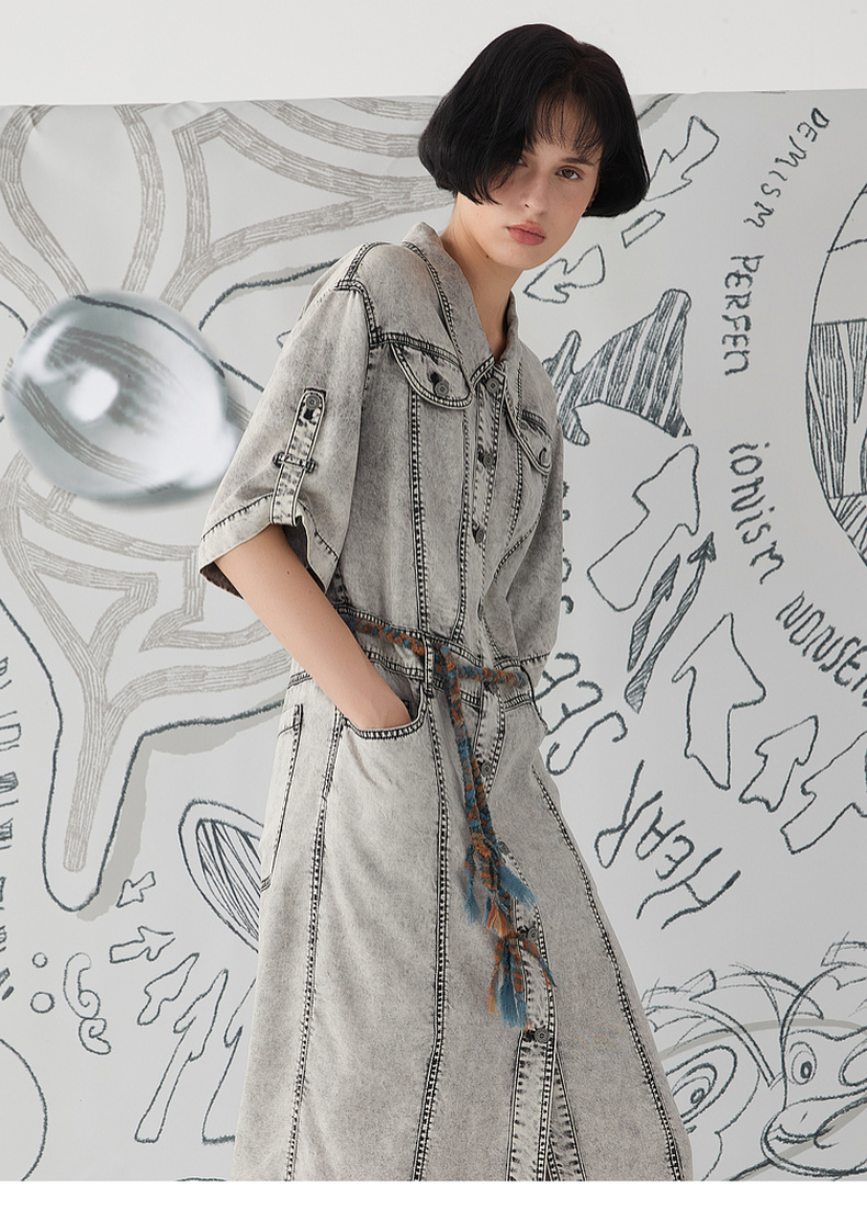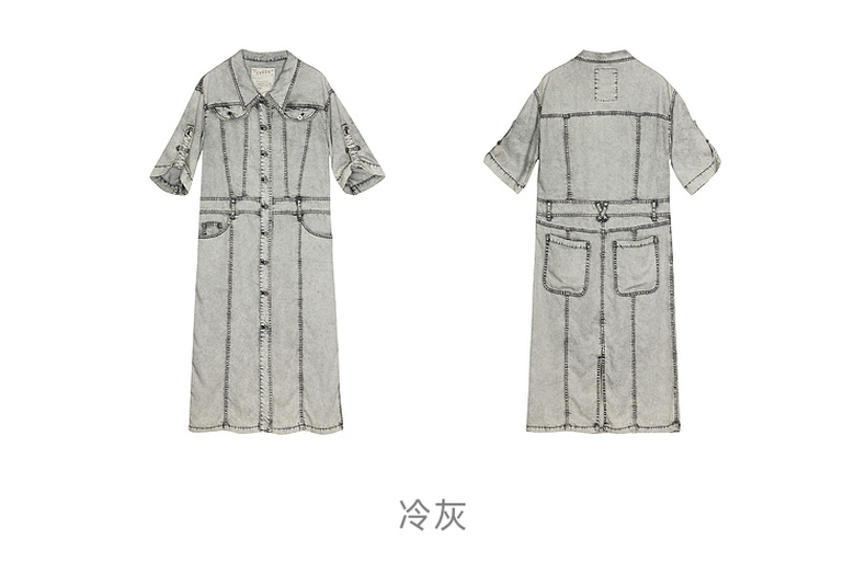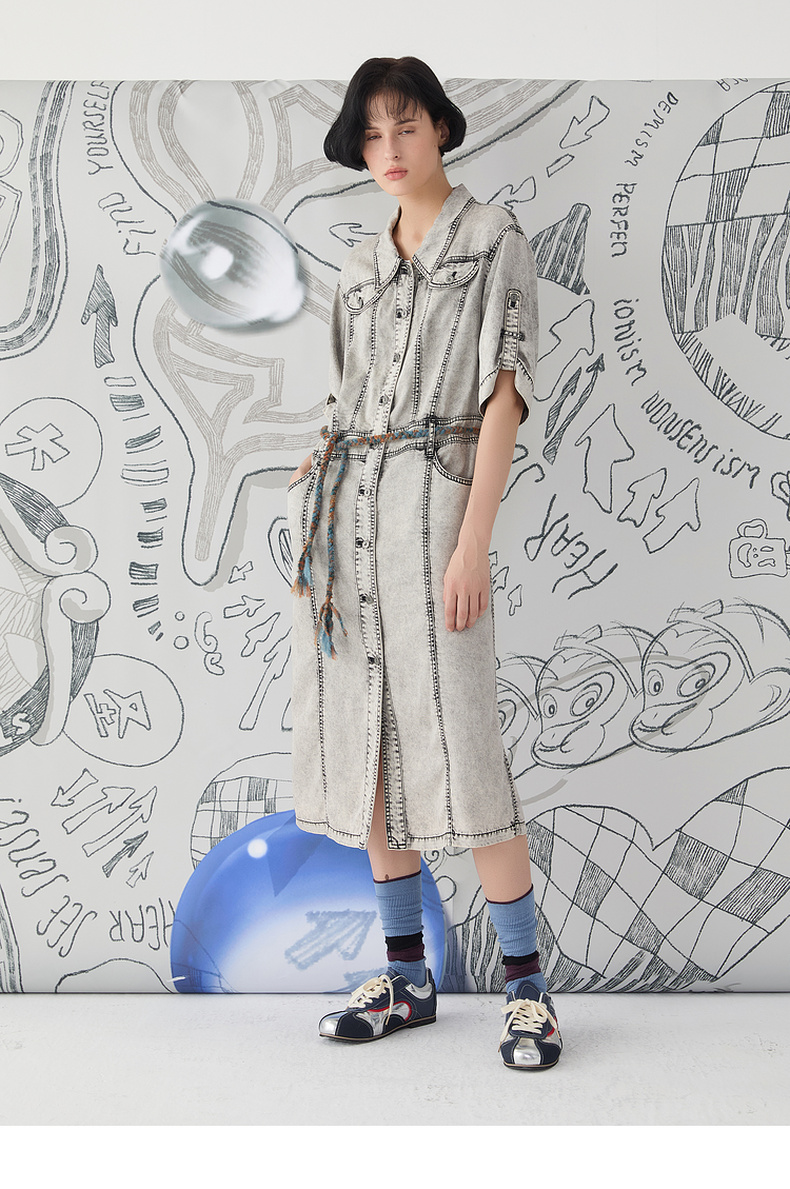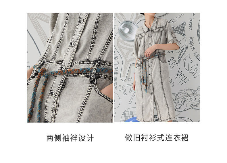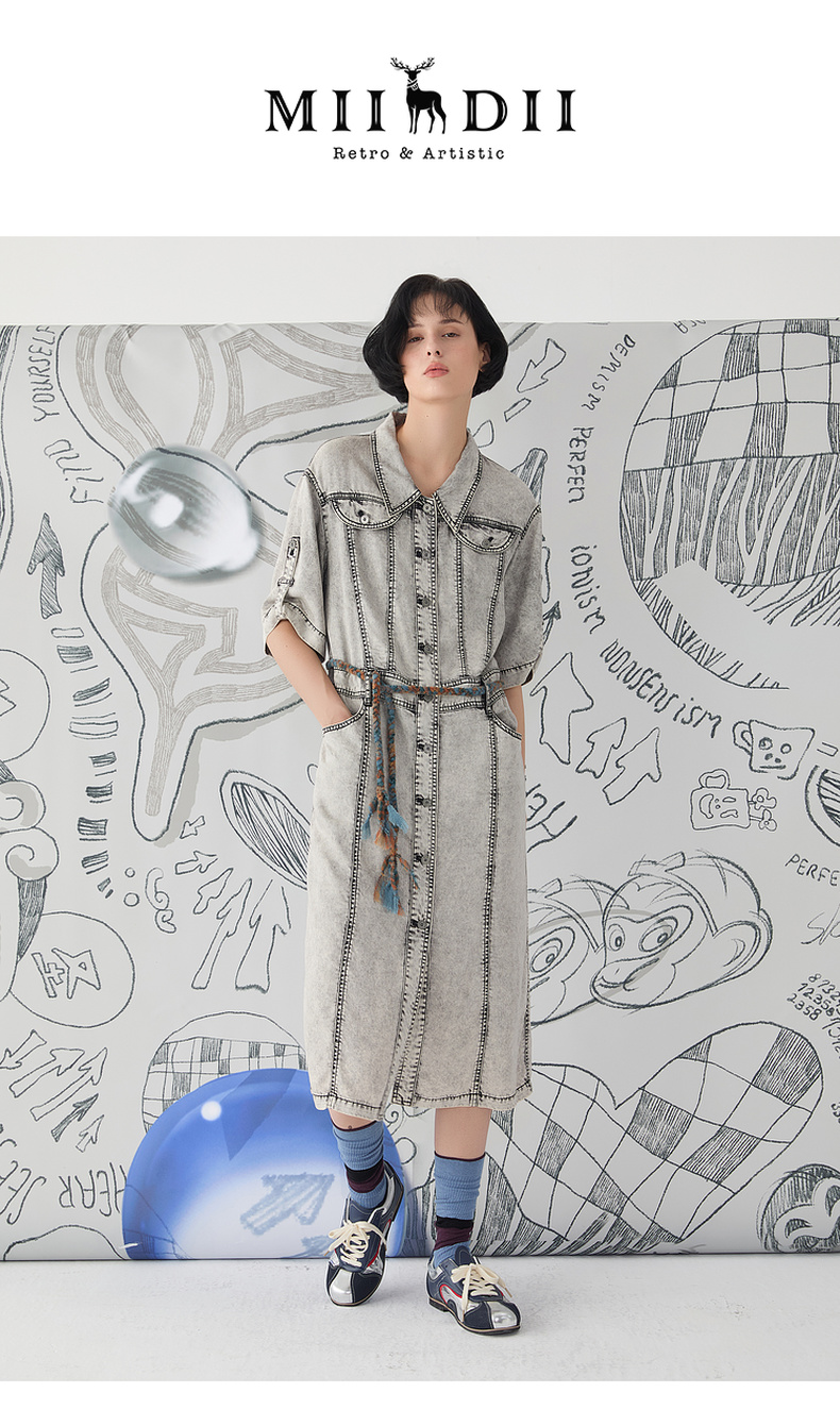 谜底牛仔连衣裙短袖2025春新品复古风H型衬衫式中长裙子251ML0148