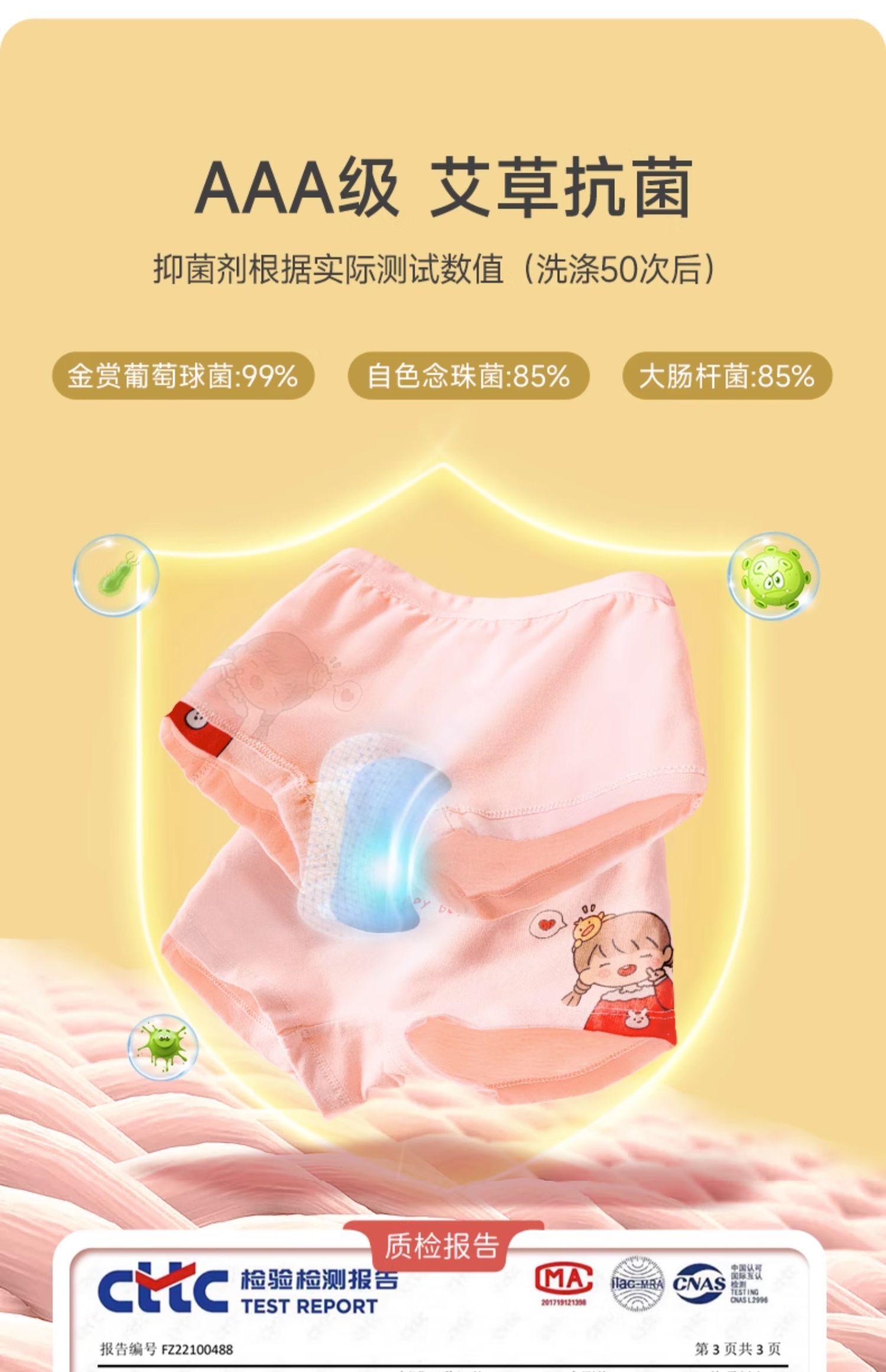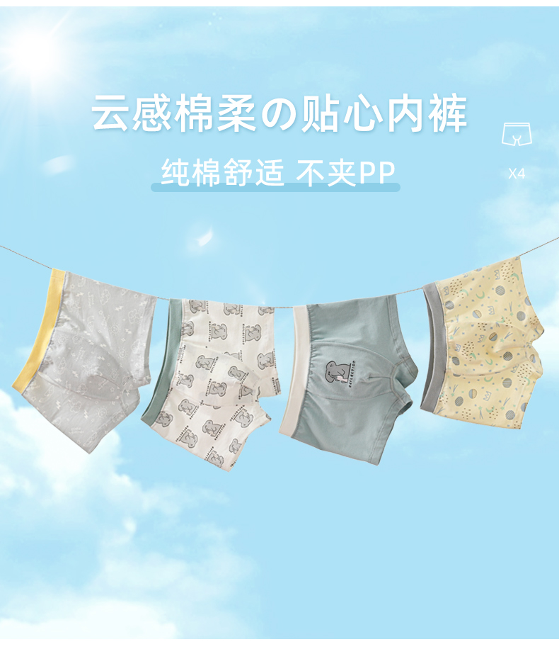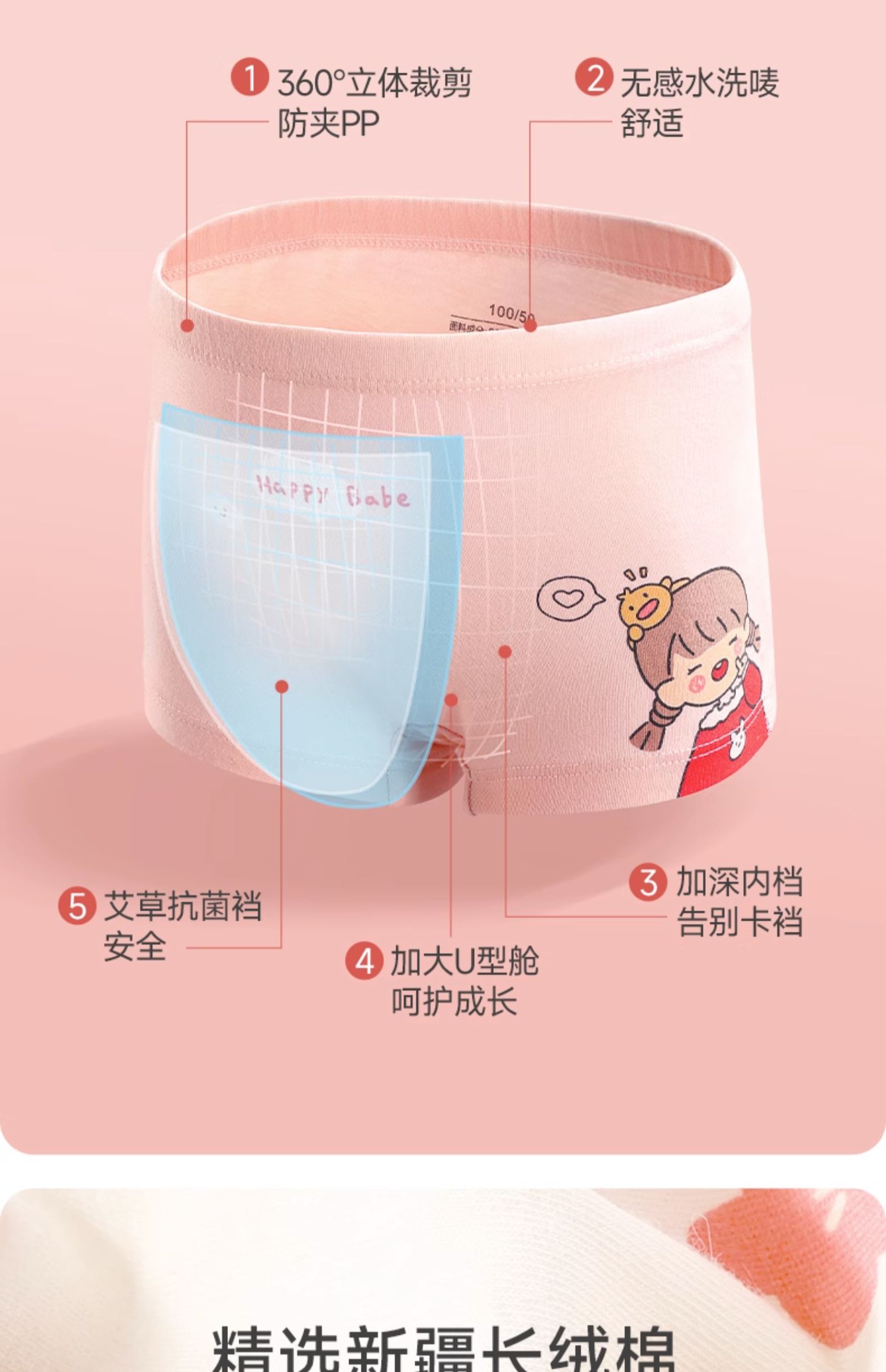 贝肽斯儿童内裤男童女童四角短裤抗菌纯棉亲肤中小童女宝宝不夹PP
