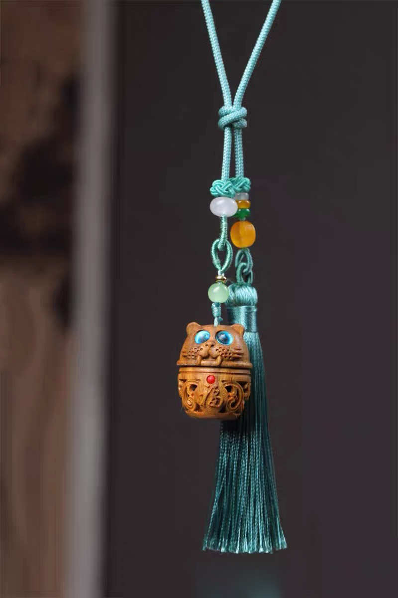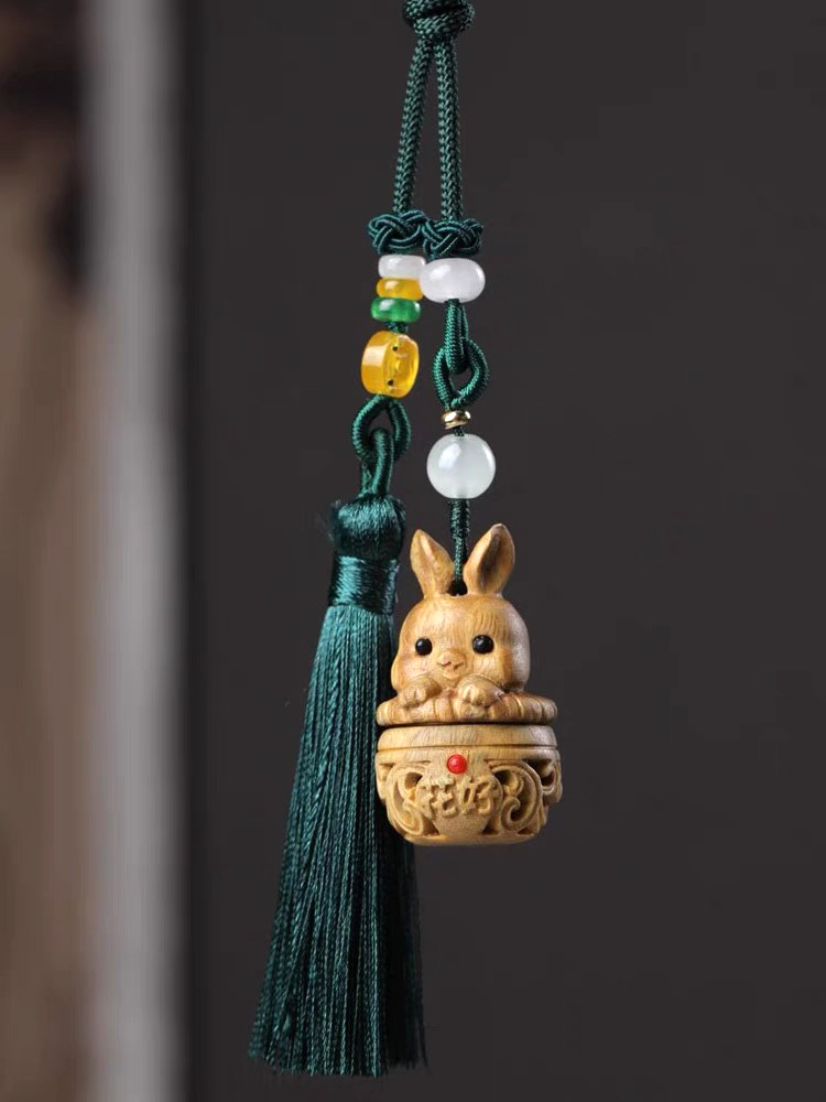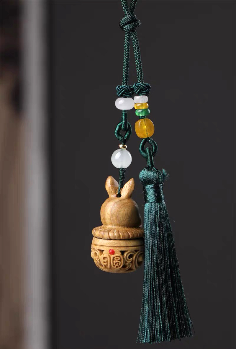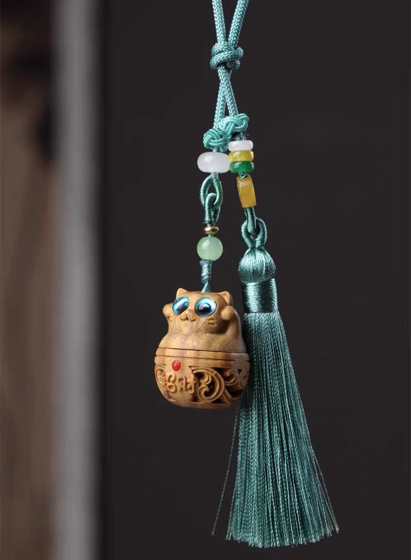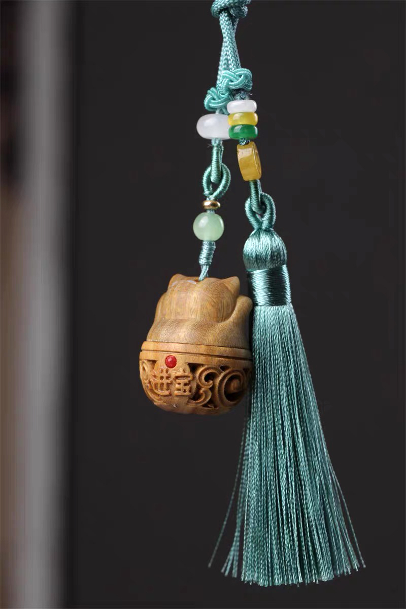 招财猫/幸运兔/福虎/许愿兔°绿檀香囊长绳挂件