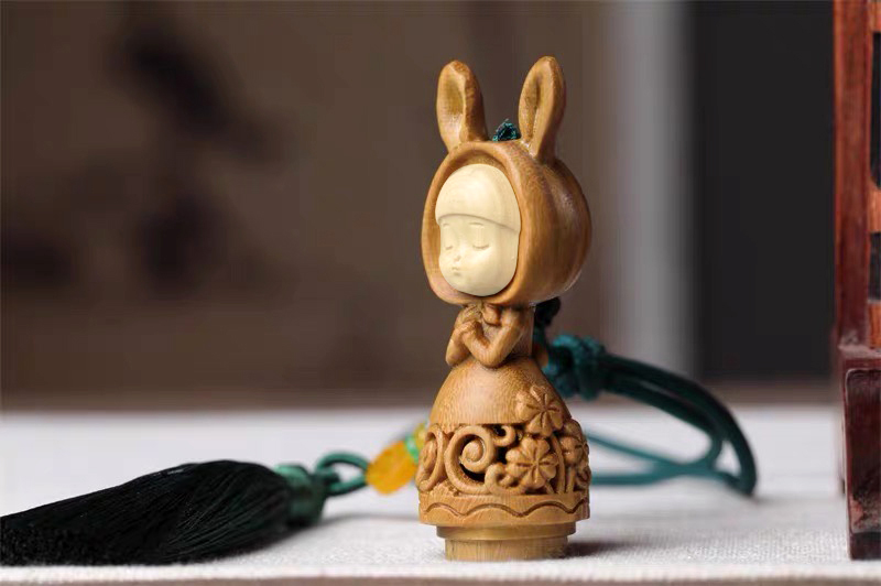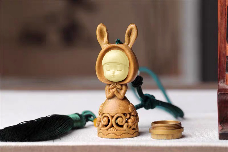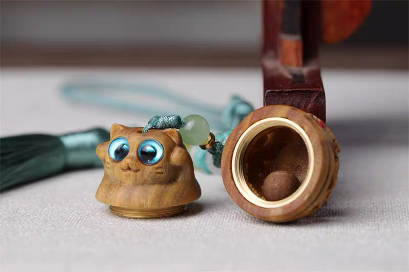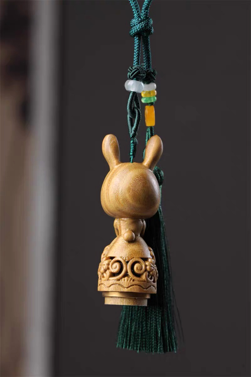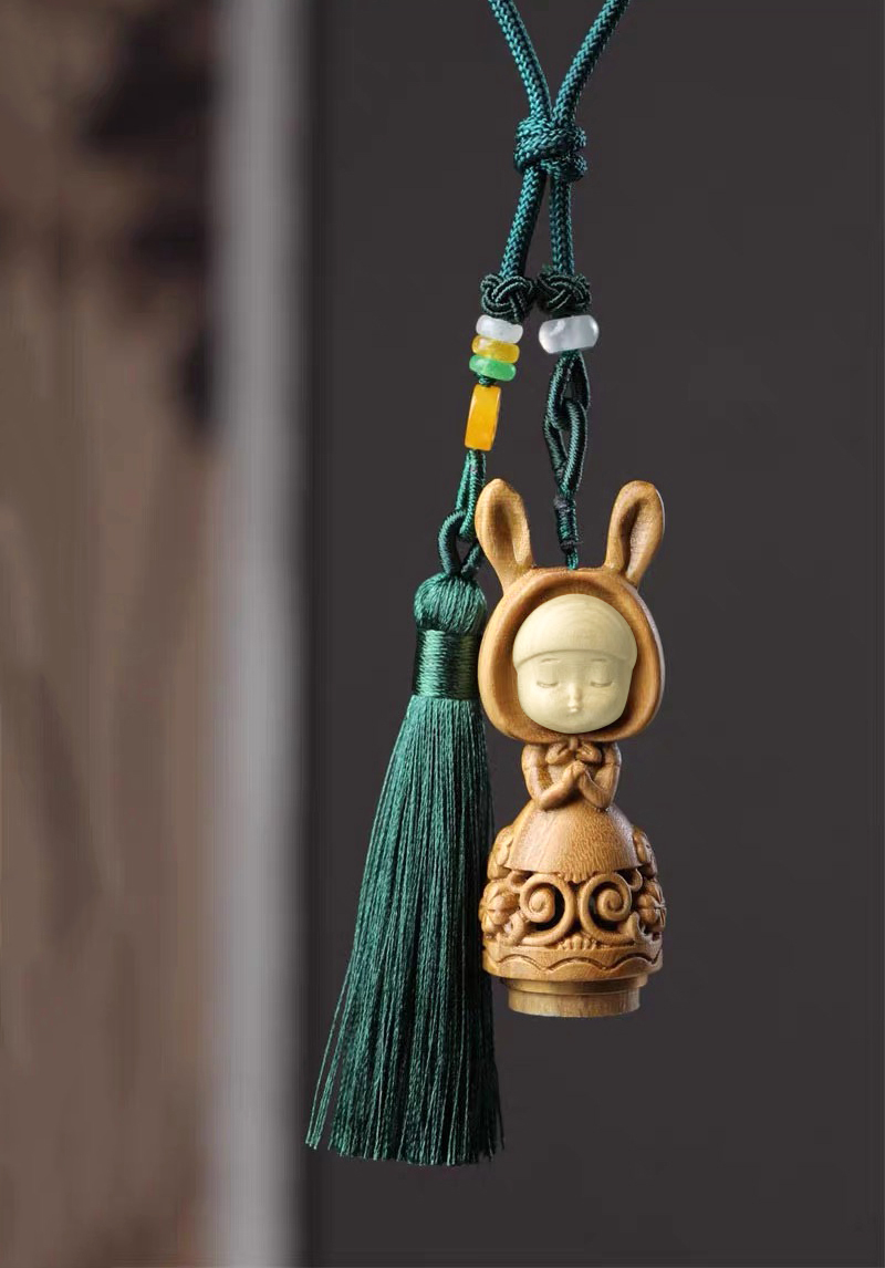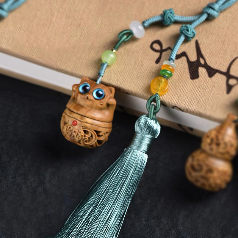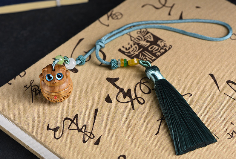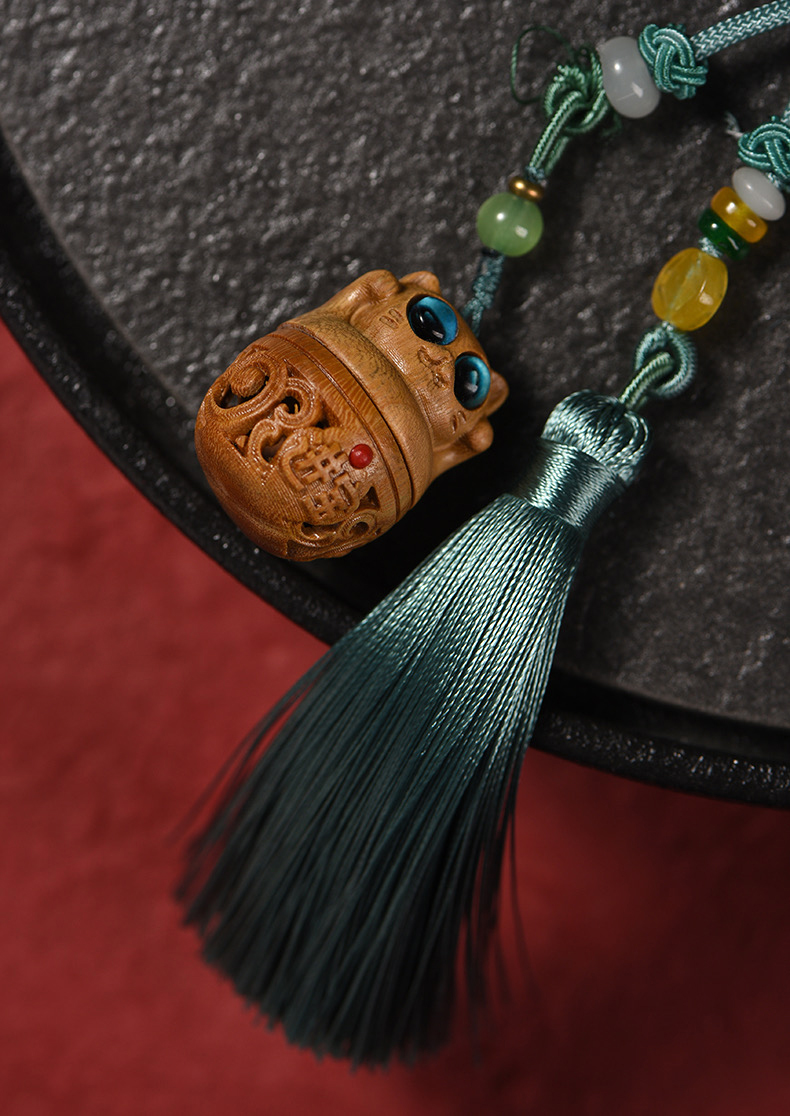 招财猫/幸运兔/福虎/许愿兔°绿檀香囊长绳挂件