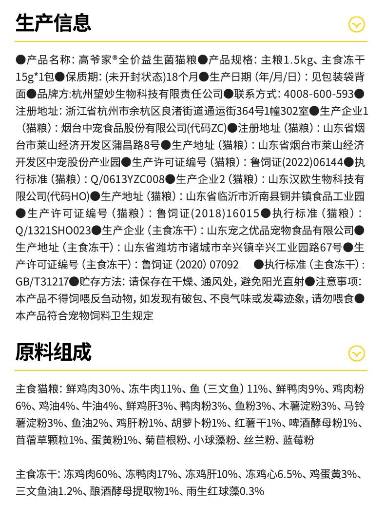 【2.0升级版】高爷家猫粮益生菌全价冻干猫粮调节肠道5kg