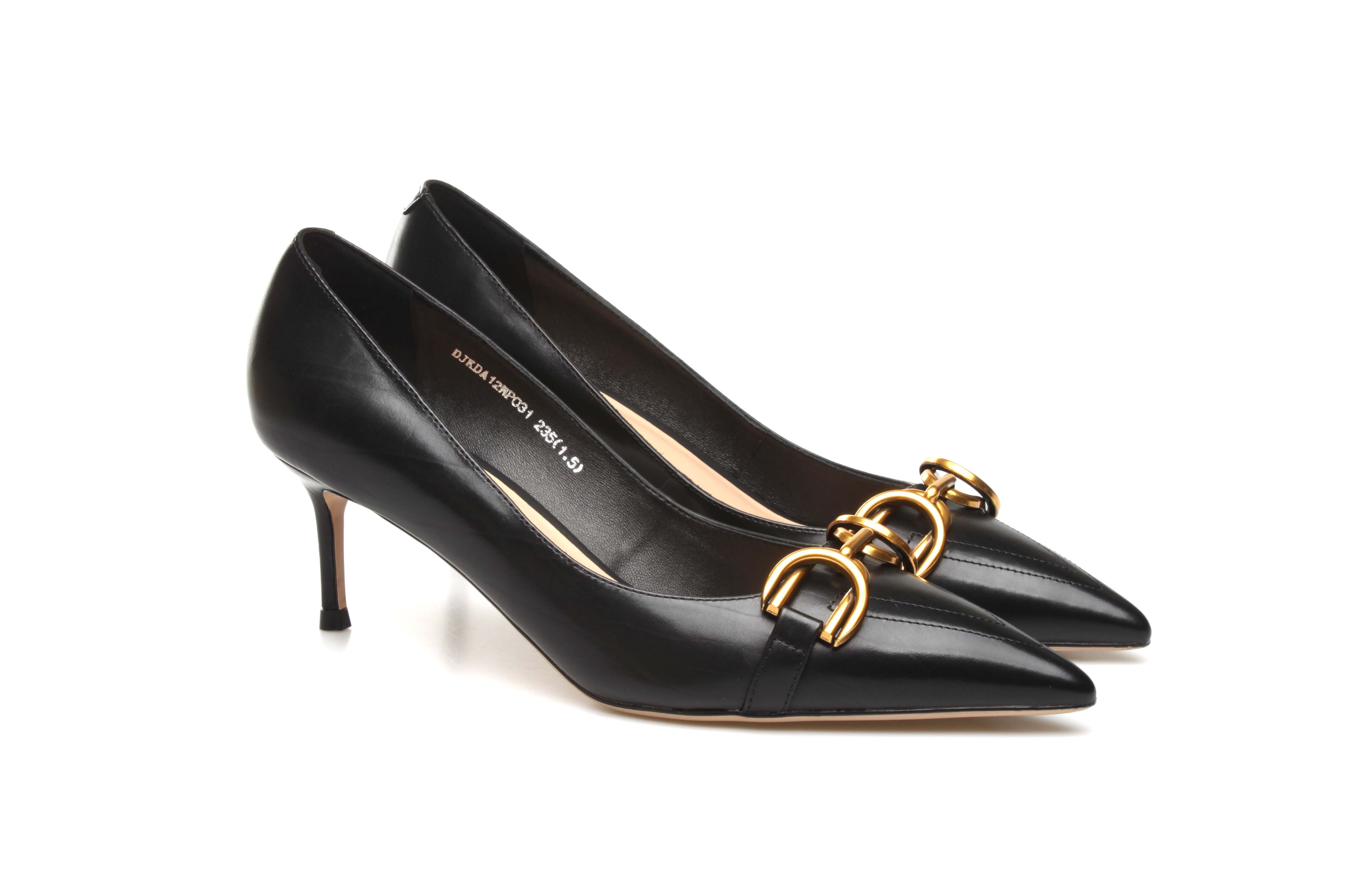豪麟名鞋奥莱迪嘉女装胎牛皮革时尚气质皮鞋DJKDA12WP031黑色 原价1960元