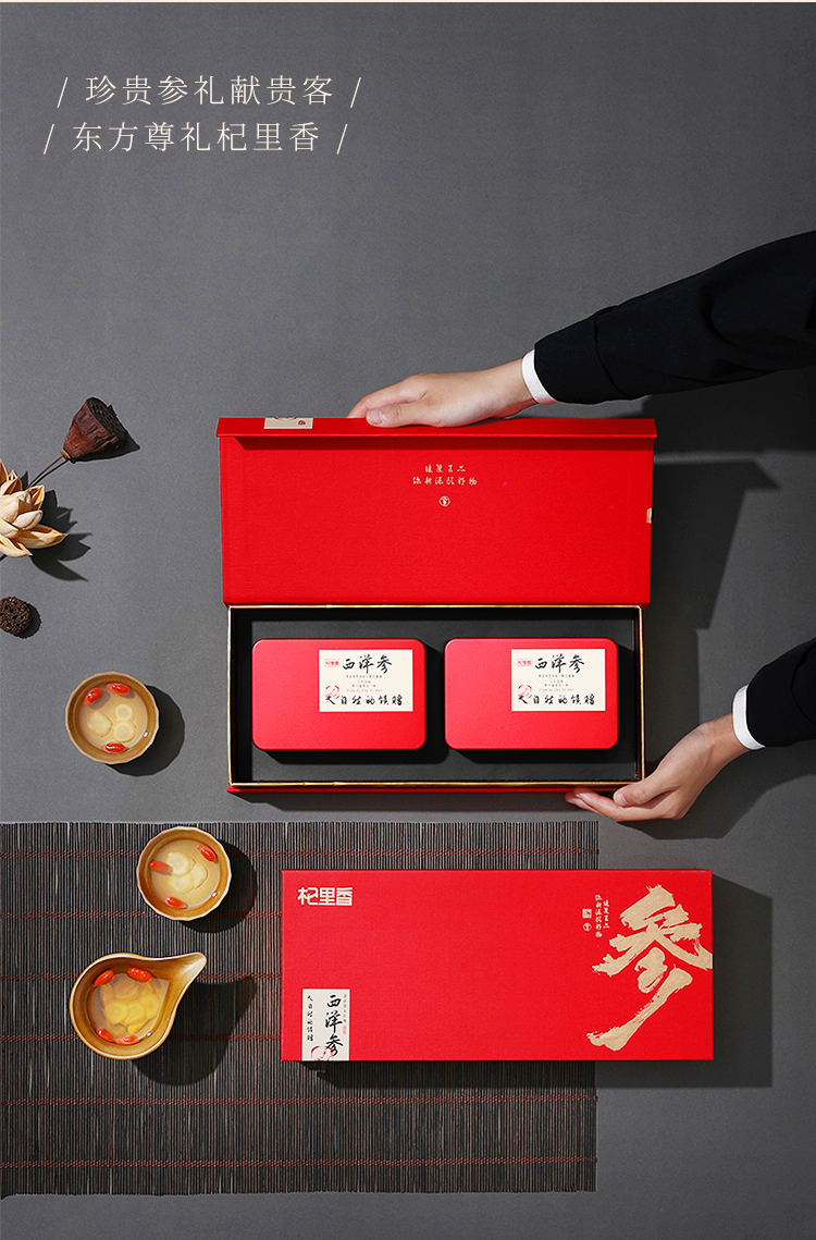 【杞里香长白山西洋参切片120g礼盒】12-14mm含片非人参泡水花旗参用心好礼 参得人心 匠心设计 送亲朋好友佳品