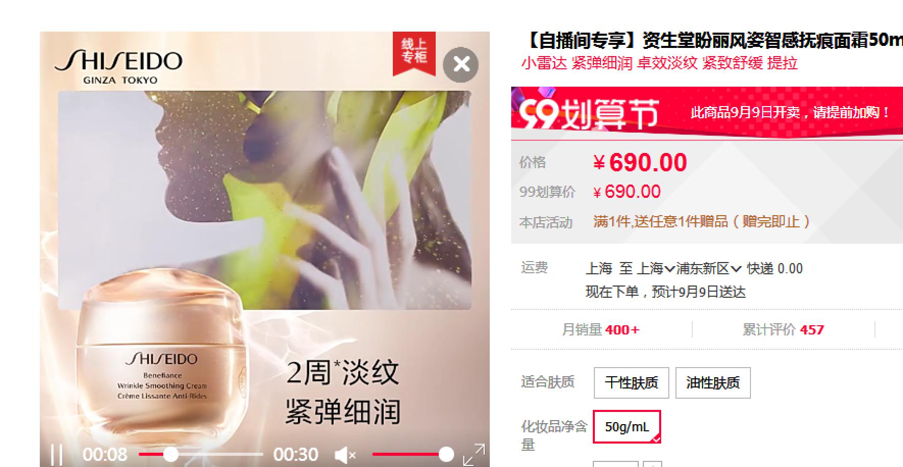【9.22王炸割肉价】资生堂盼丽风姿智感抚痕乳霜50ml(限25年1月)