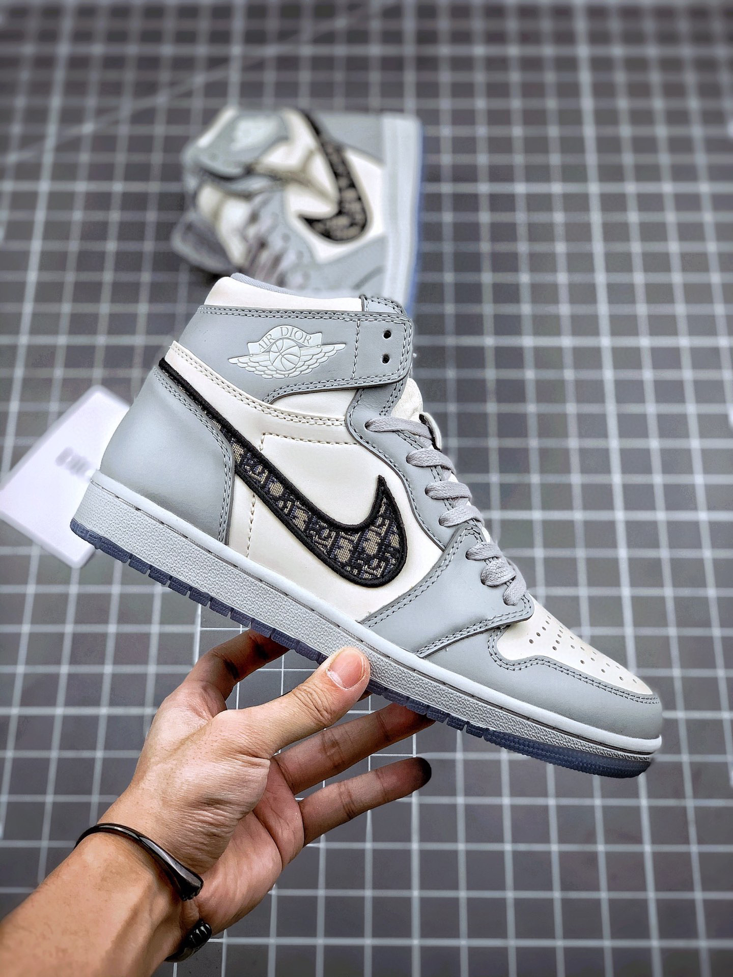 35周年限量联名鞋款选择了Air Jordan 1 High为基底打造,选择白色与深灰色拼接呈现鞋身。鞋侧的Nike Swoosh则以黑色刺绣镶边,并满幅点缀有Dior字母印花。鞋舌整体也压印有Dior字母印花,凸显细节。而最为显眼的设计则出现在外底,醒目的蓝色水晶大底内可以透视出黑色的DIOR与飞翼LOGO,联名的身份得以凸显‼️ 货号:CN8607-002