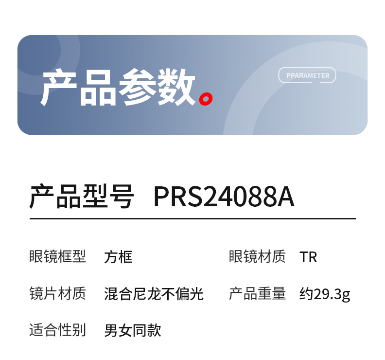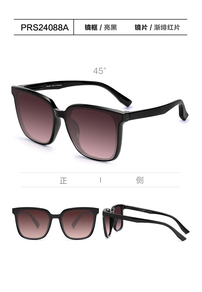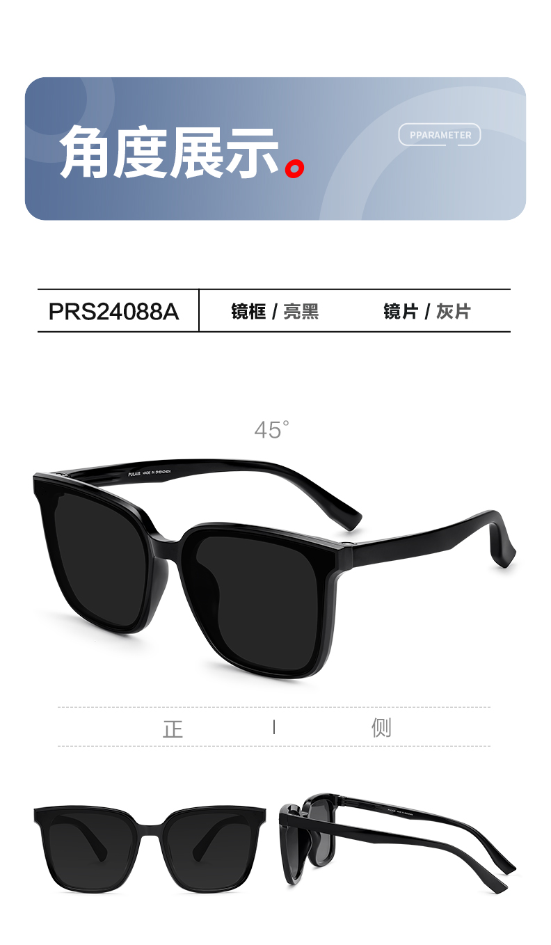 普莱斯新款太阳镜PRS24088A 素颜百搭潮流墨镜 TR材质镜框 尼龙不偏光镜片 男女同款 双色可选
