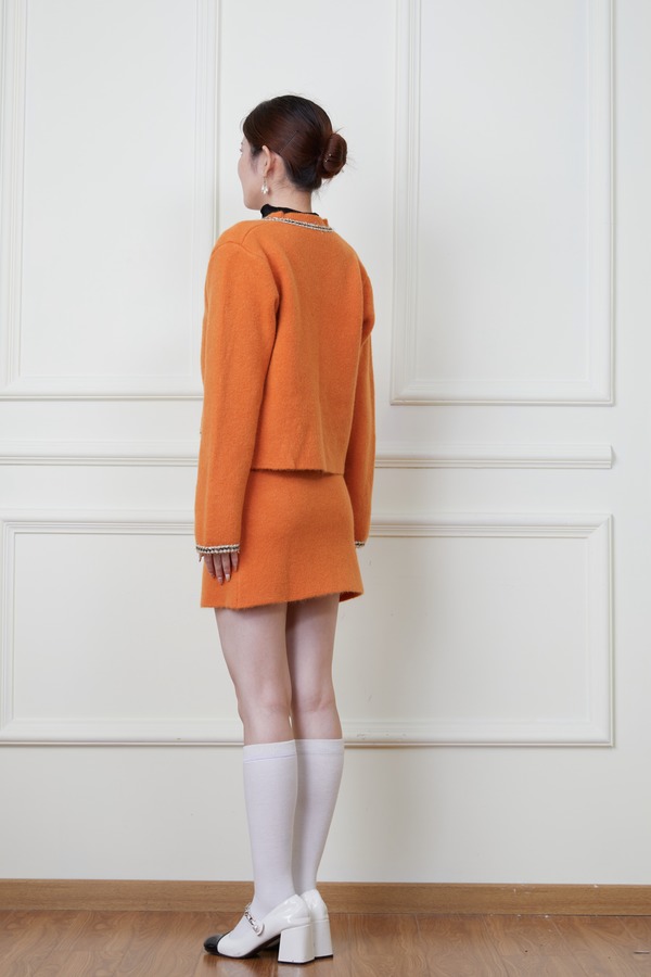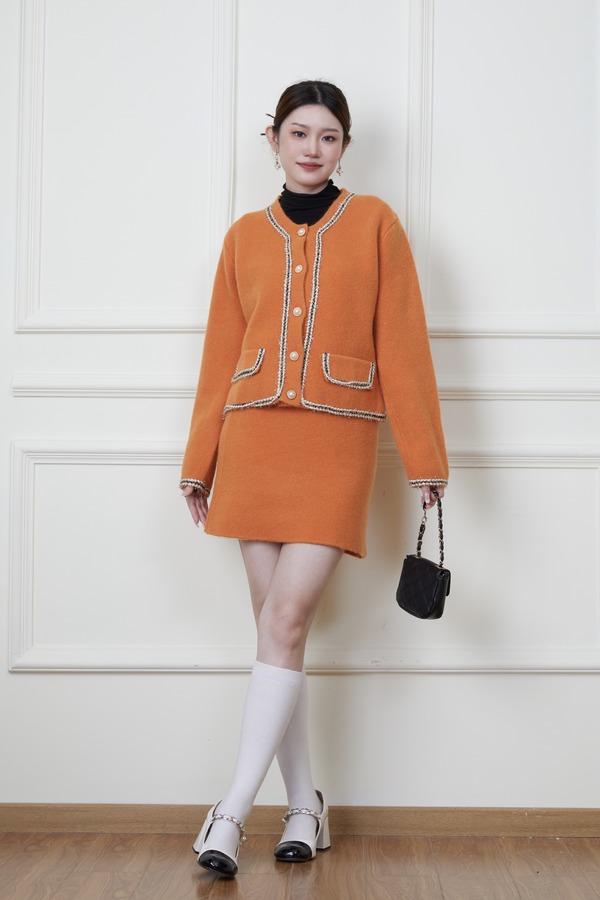 SIA SAYLOR 活力橙色小香风针织外套半裙套装 19796