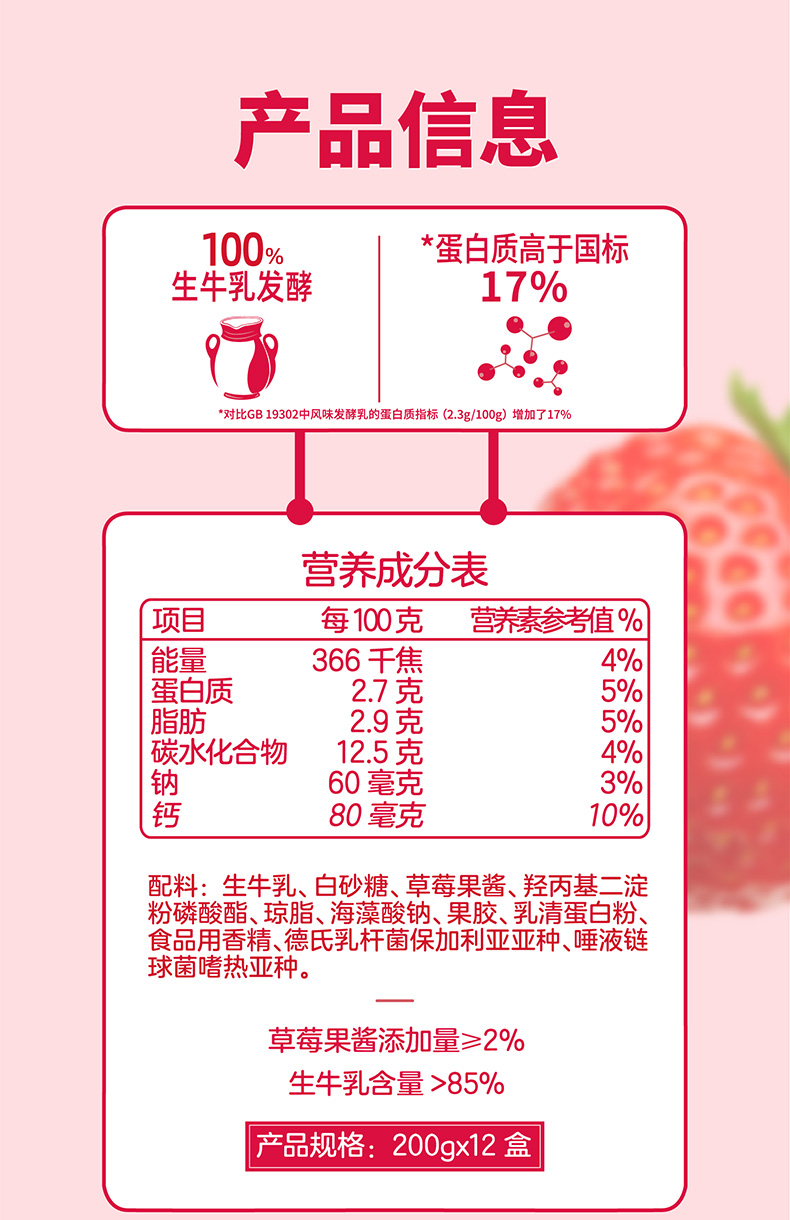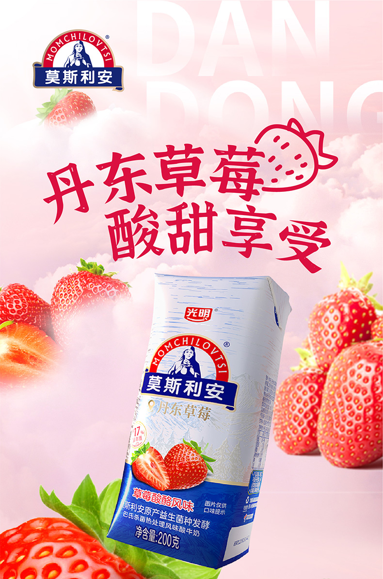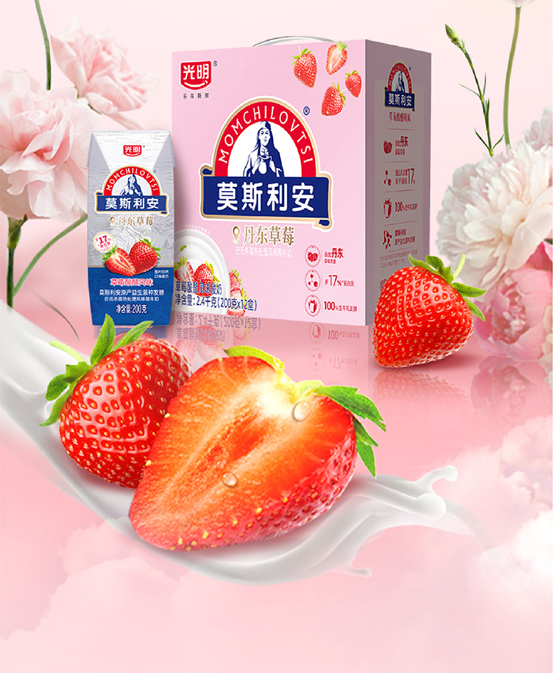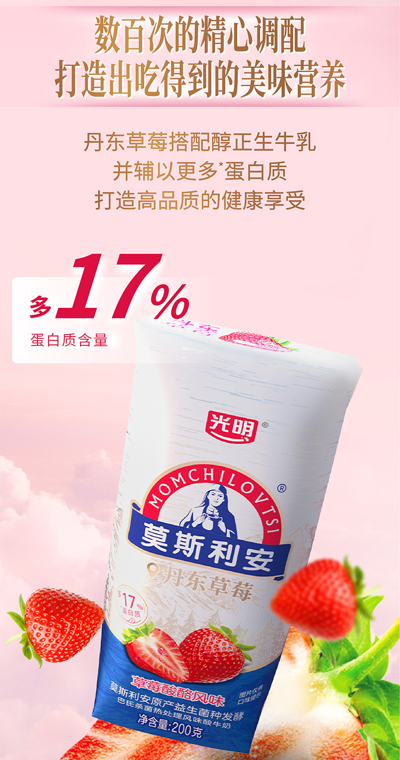 【自营】光明莫斯利安草莓酸酪200g*12瓶整箱