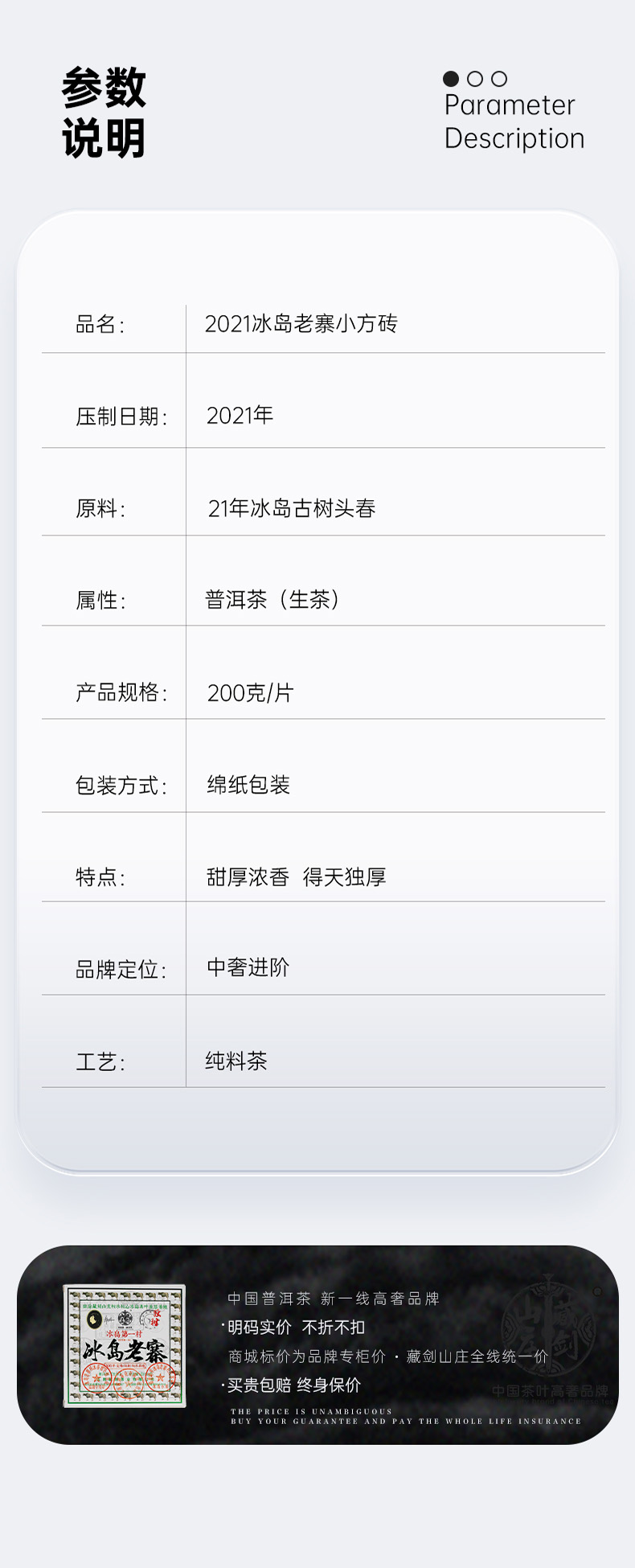 【藏剑山庄】2021年头春 郭少华独树冰岛老寨小方砖 200克 购买10砖赠1砖