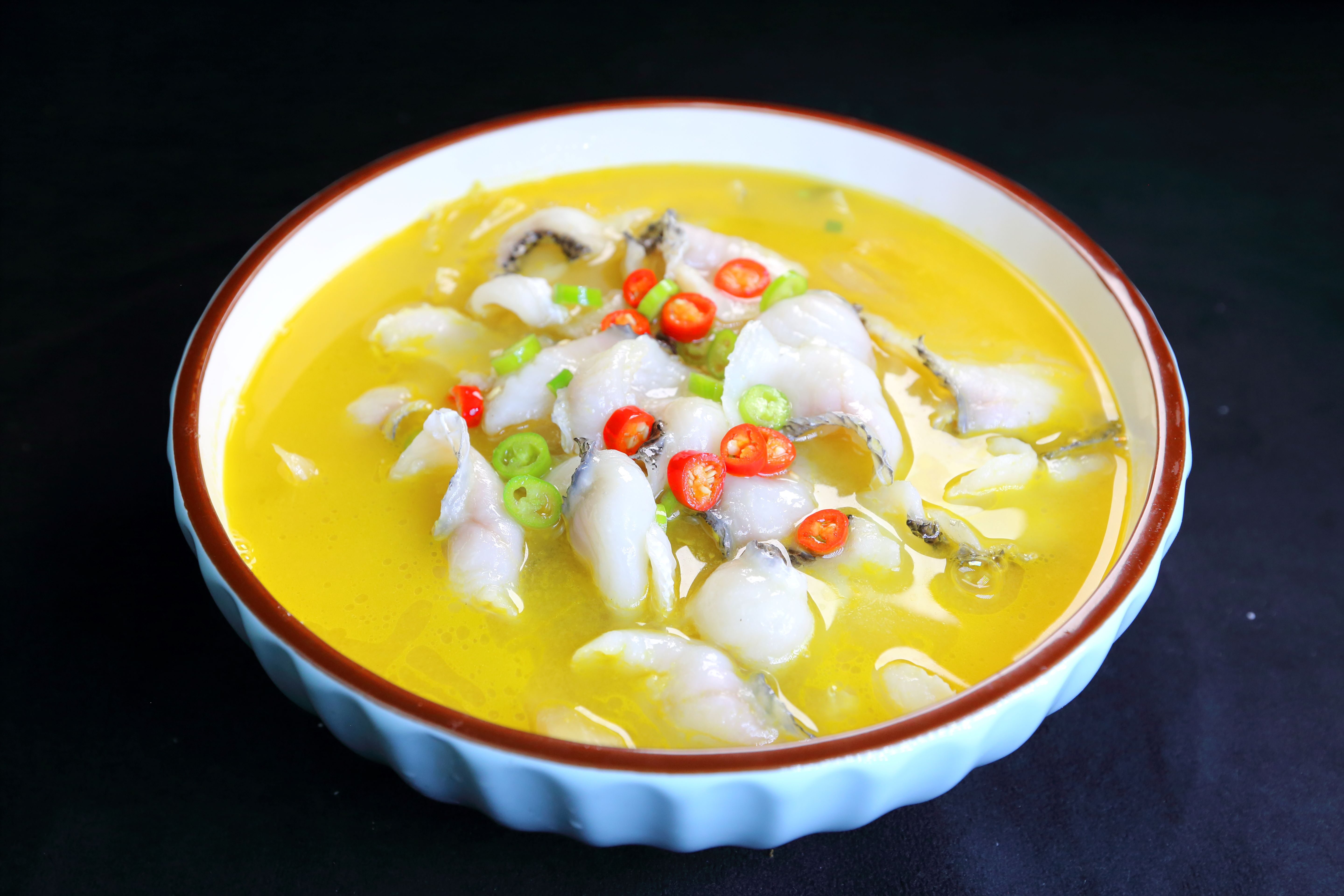 | 川府金汤酸菜鱼 | 盒 | 575g/1盒 | 产品冷藏解冻,锅中加400ml水,加入酸菜包和酸菜鱼汁包搅拌均匀烧开备用,鱼片倒入5000g烧开的清水中,搅拌均匀煮制70-90秒,撇去浮沫,捞出鱼片倒入汤汁中,锅中倒入油,下适量干辣椒,红花椒,蒜泥,葱花,小火炒香,将炒香的料头淋在酸菜鱼上,即可食用 |