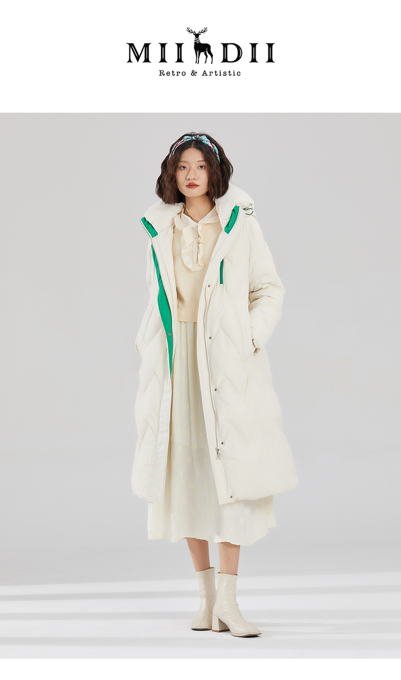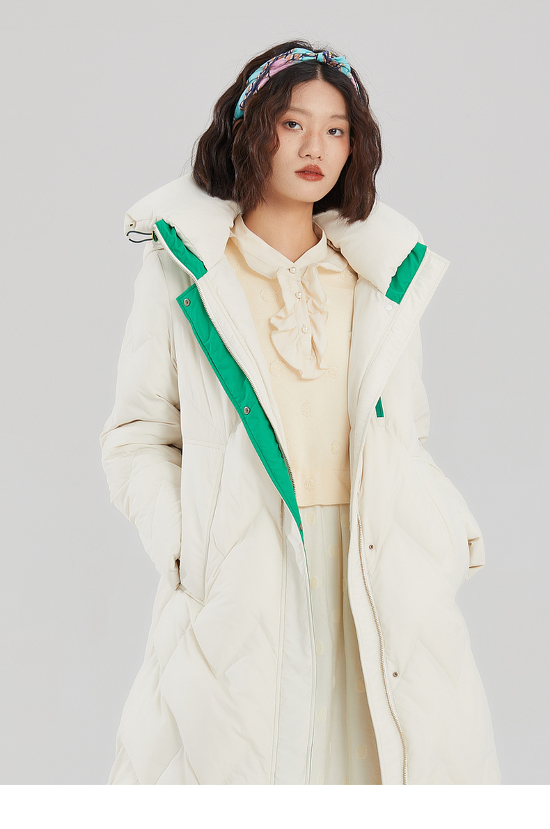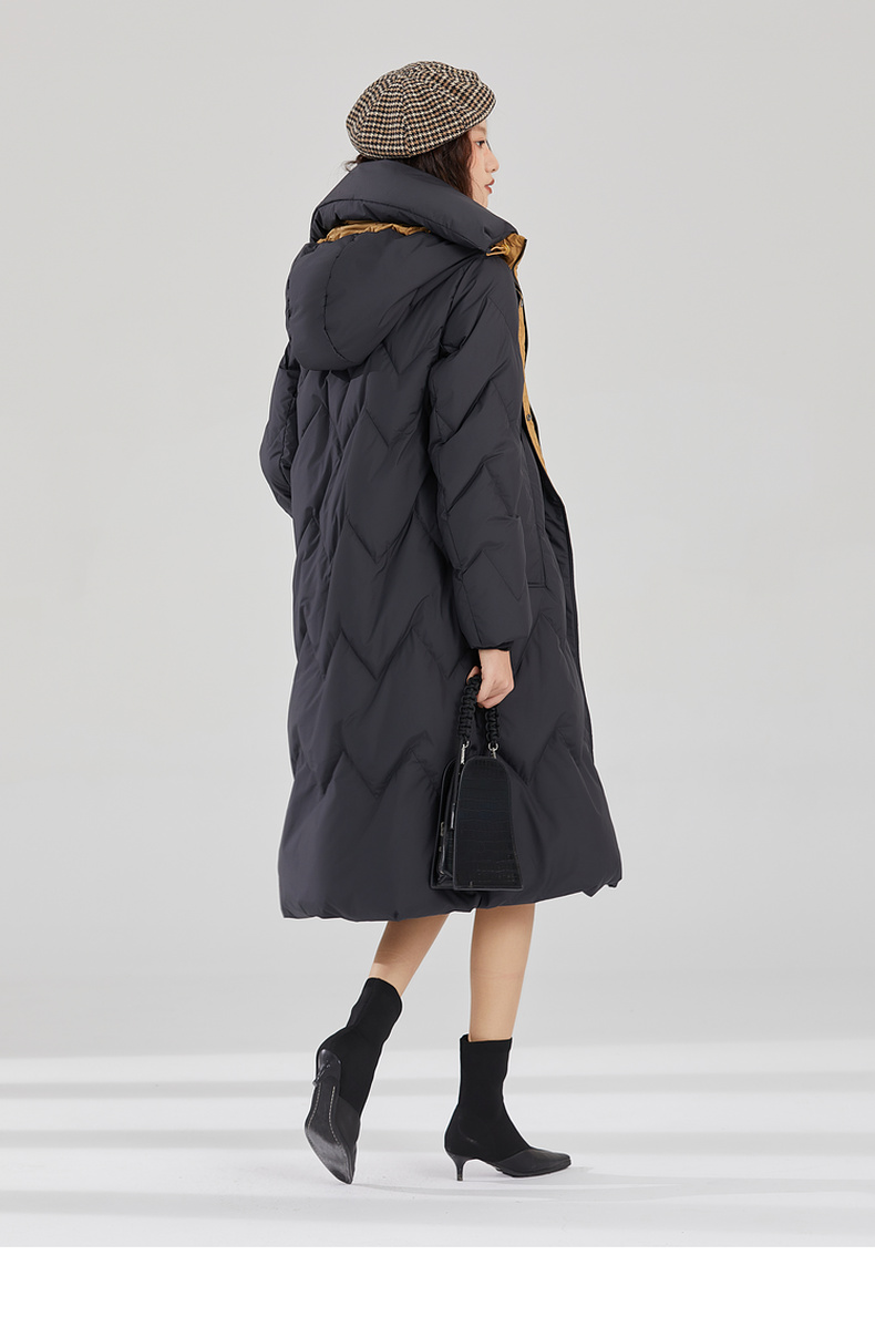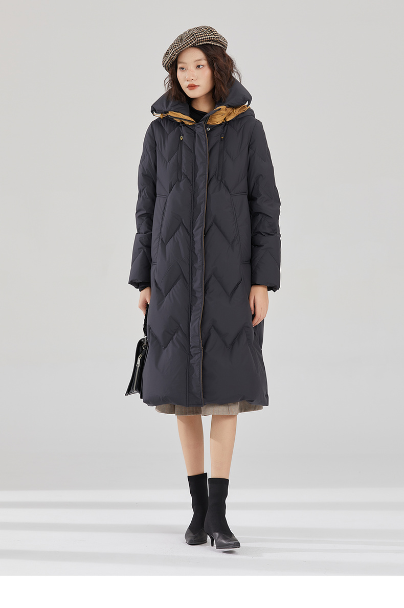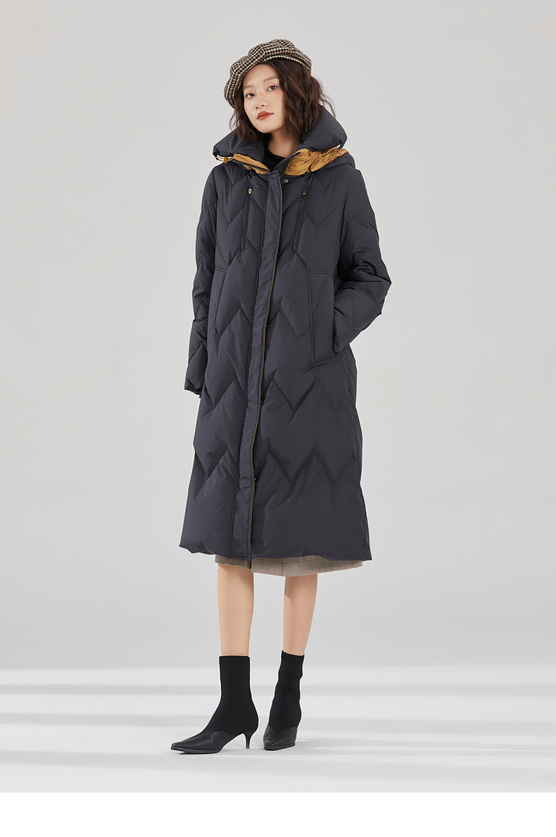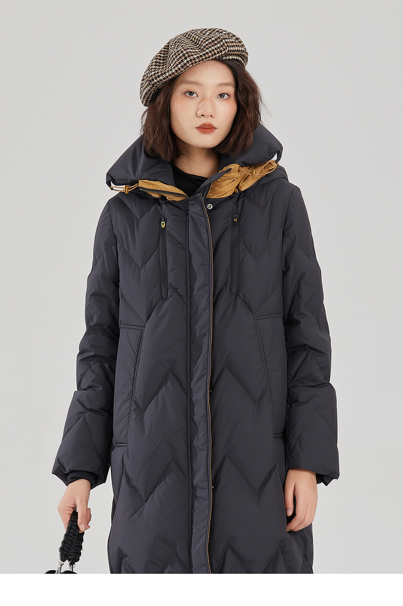 谜底长款加厚羽绒服女2023冬款设计感连帽修身鸭绒保暖239MY7306