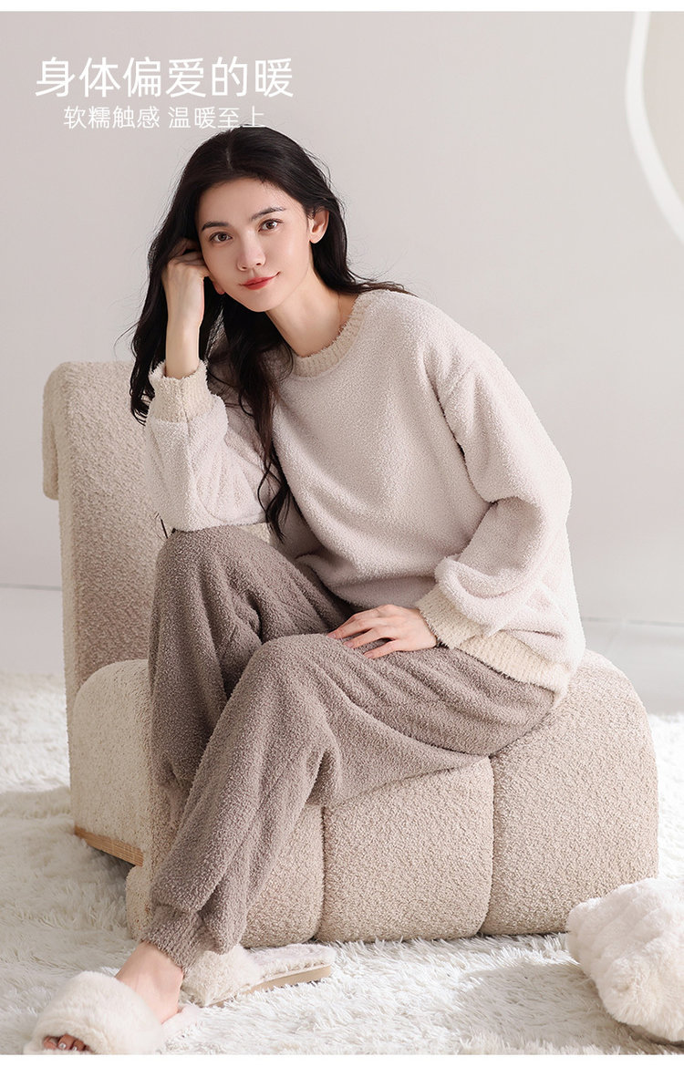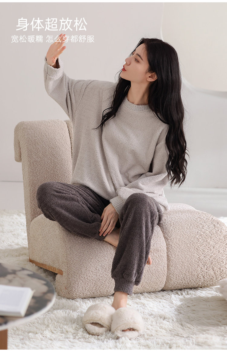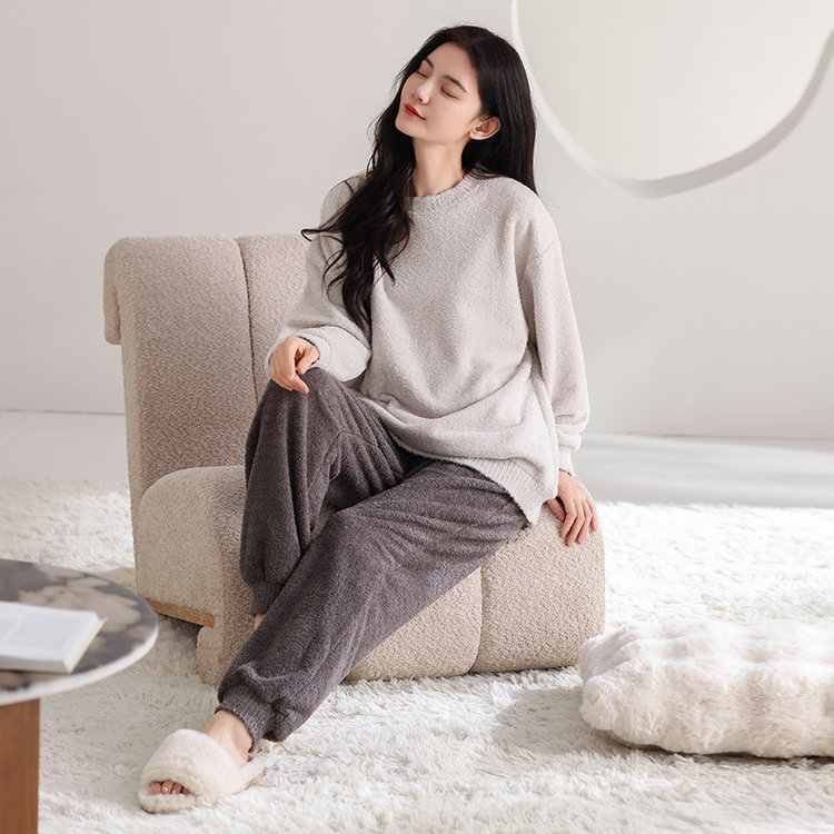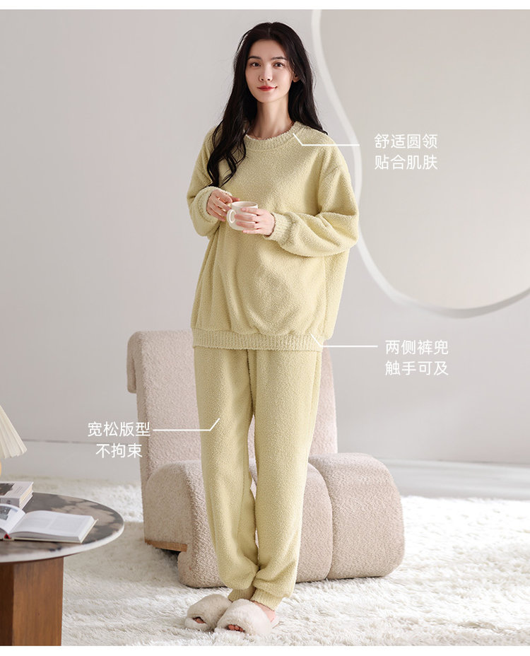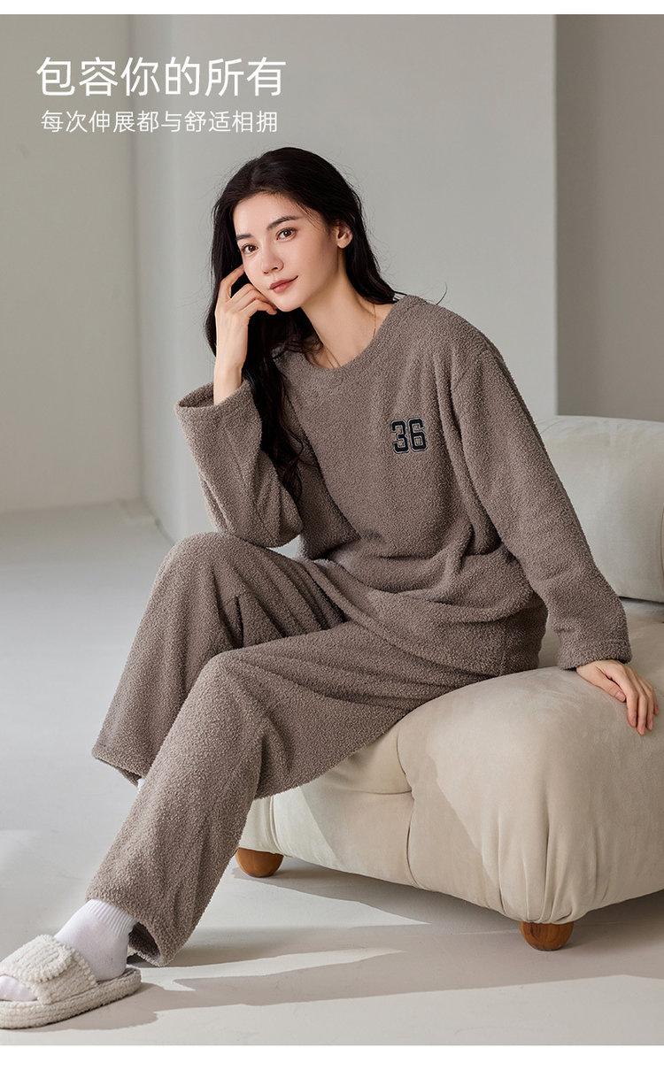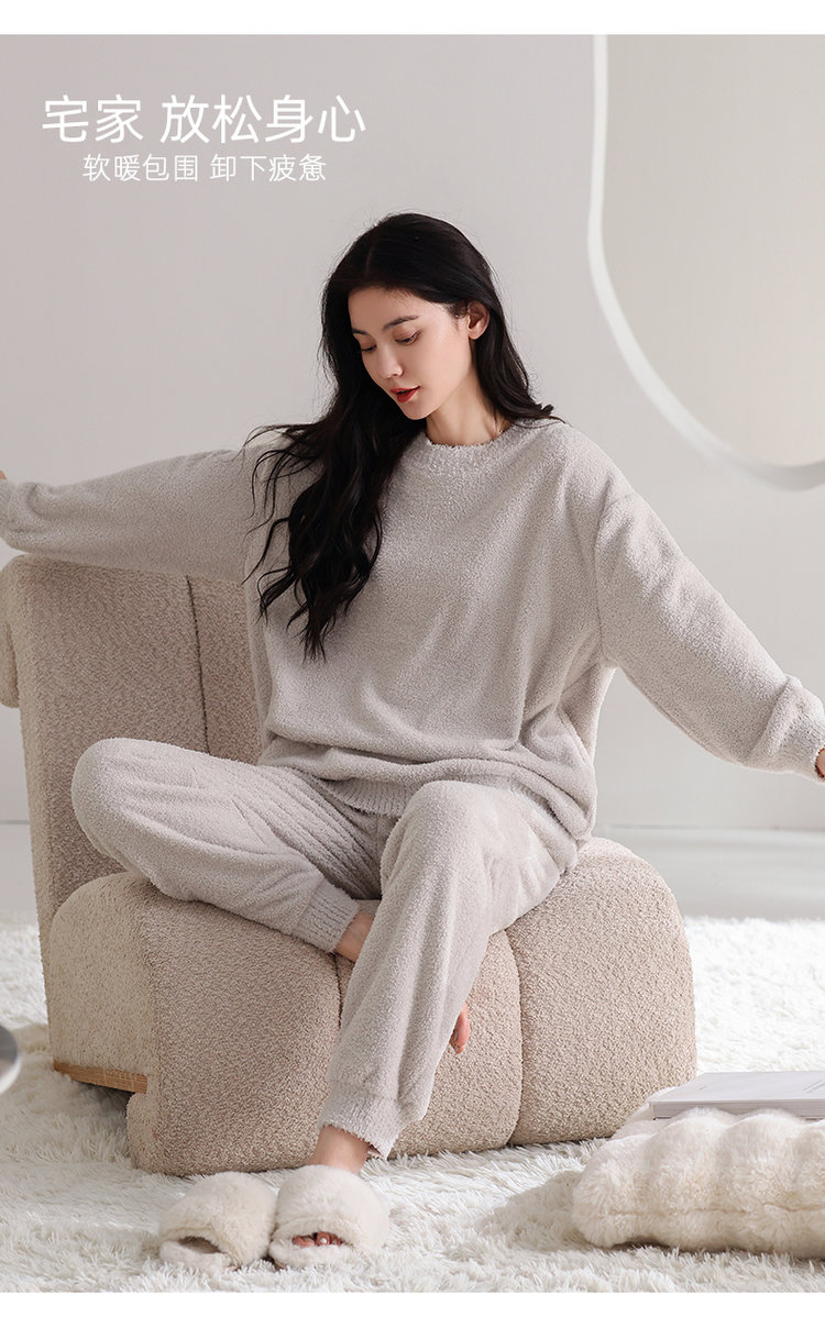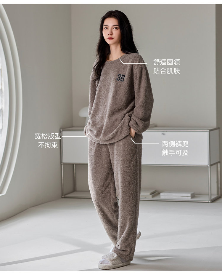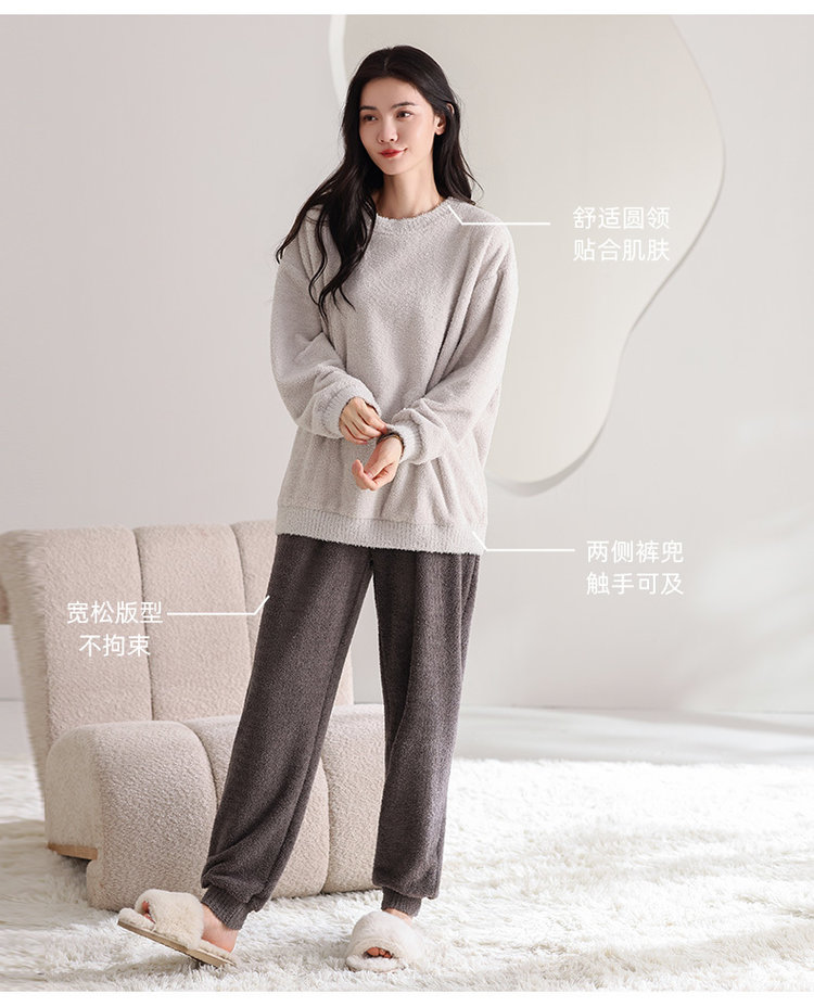 【宅家半边绒女款家居服套装】毛绒面料细腻绵柔云朵包裹感!显瘦版型冬日不臃肿,这一定是你买过的秋冬睡衣!-XJC