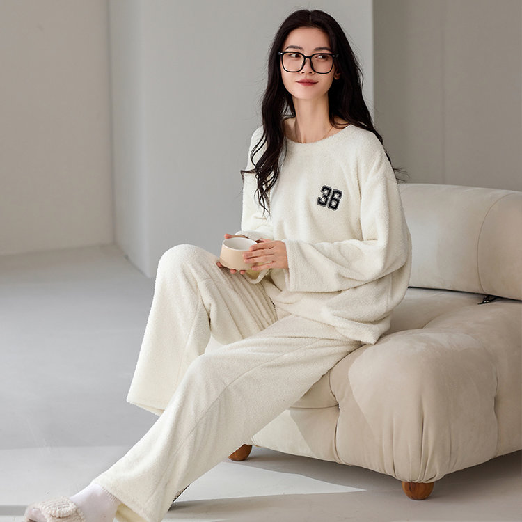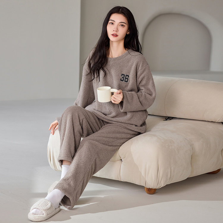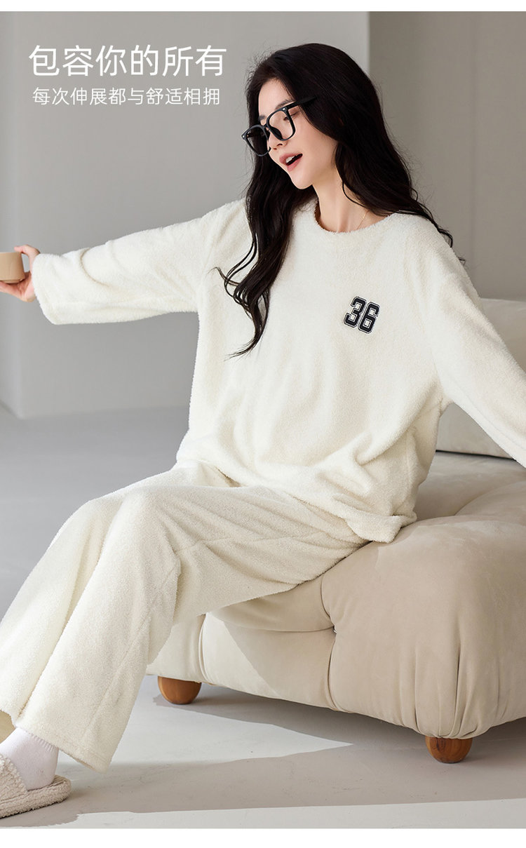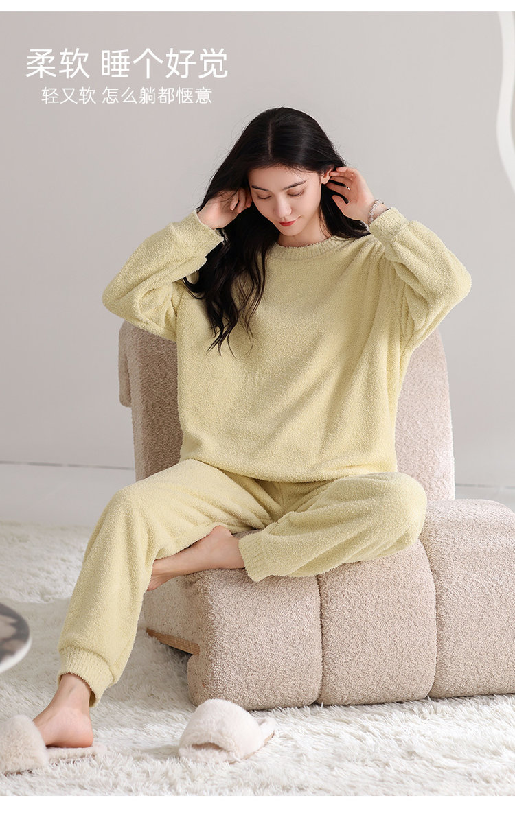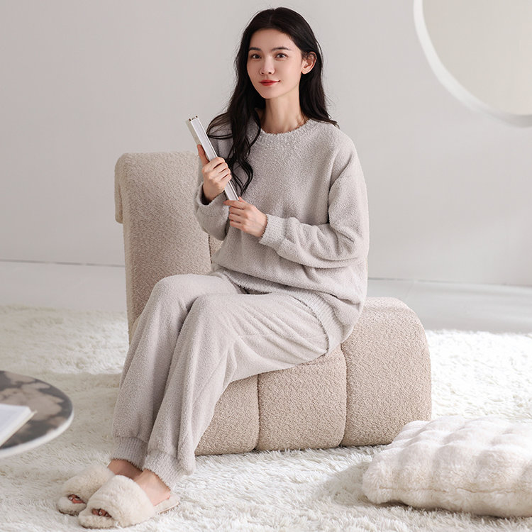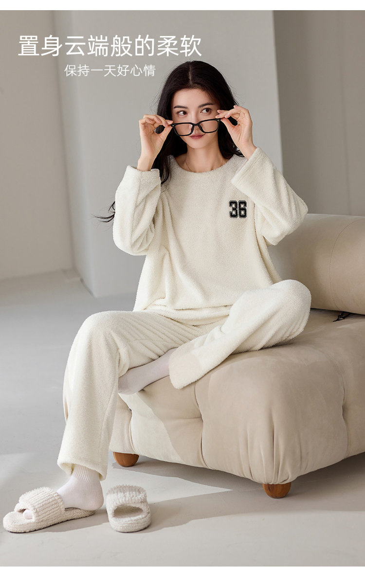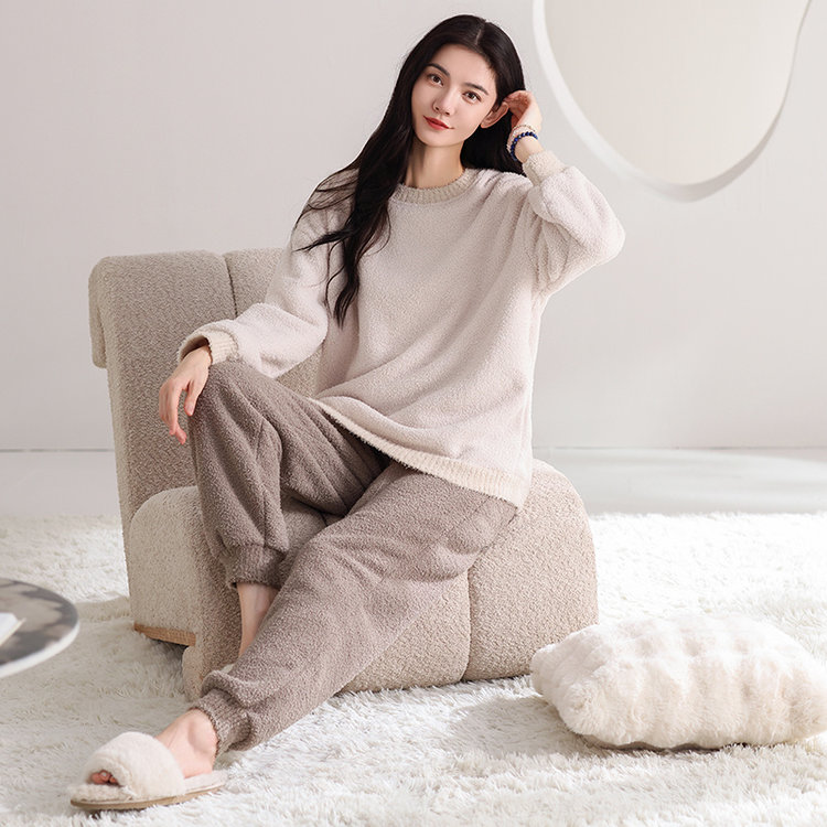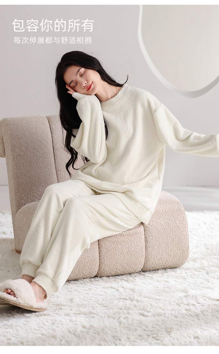 【宅家半边绒女款家居服套装】毛绒面料细腻绵柔云朵包裹感!显瘦版型冬日不臃肿,这一定是你买过的秋冬睡衣!-XJC