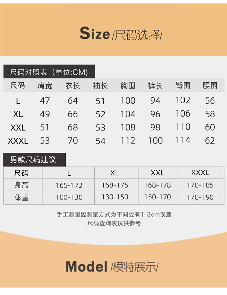 【尺码】M(85-100斤),L(100-120斤),XL(120-140斤),XXL(140-160斤)