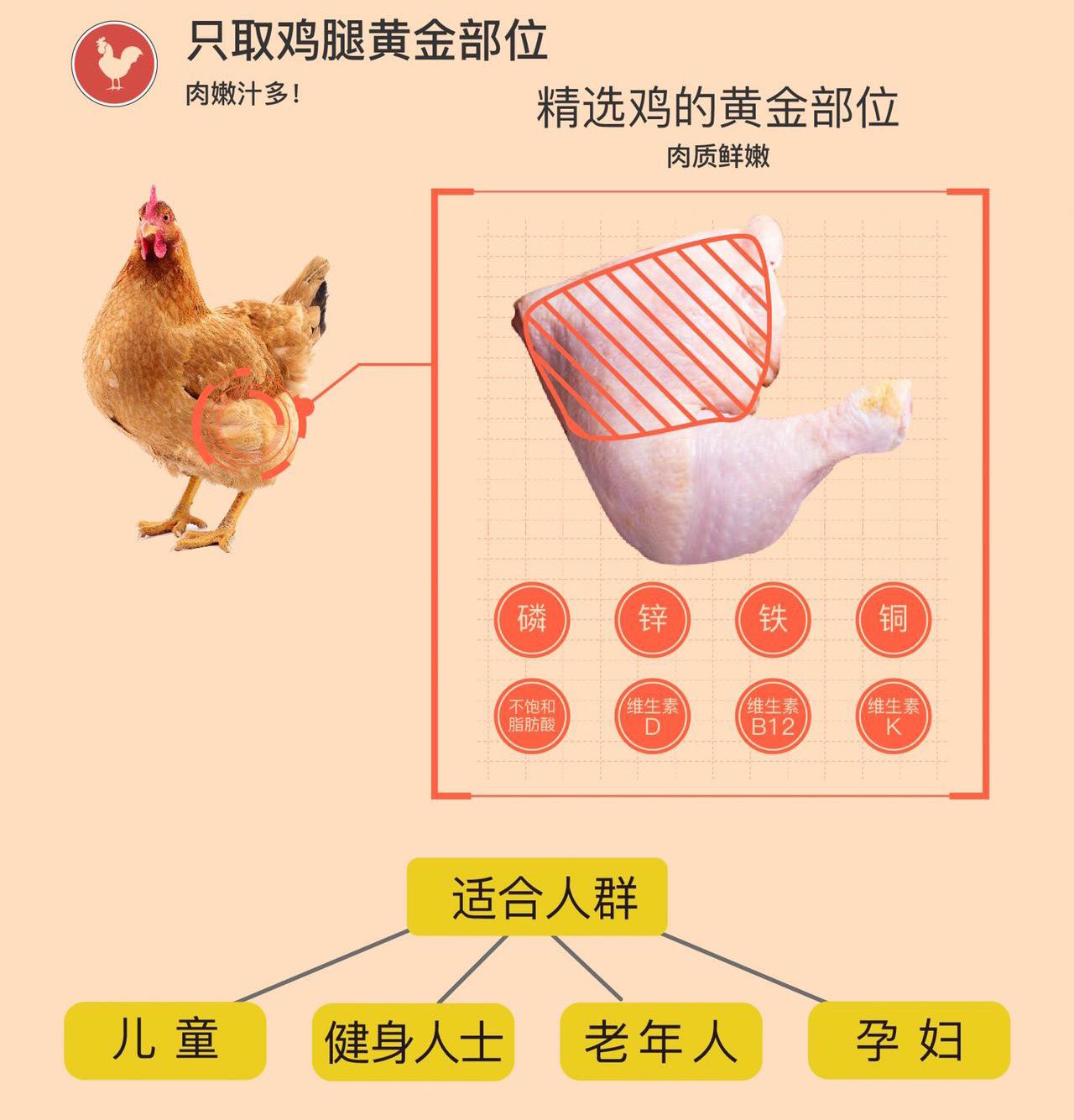 2.只取鸡腿黄金部位的肉,肉嫩汁多!