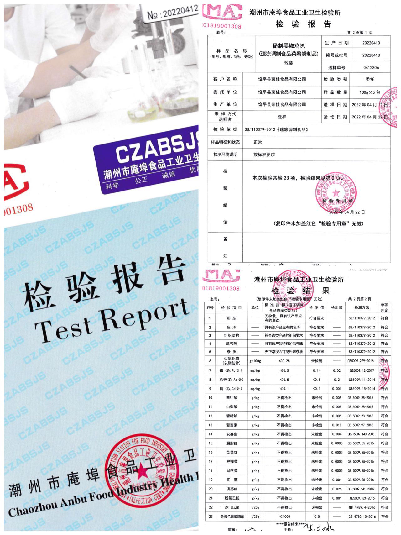 秘制黑椒鸡腿扒,带上合格检验报告,只为让你买的放心,吃的安心!